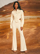 بنطال واسع الساق بخصر مرتفع