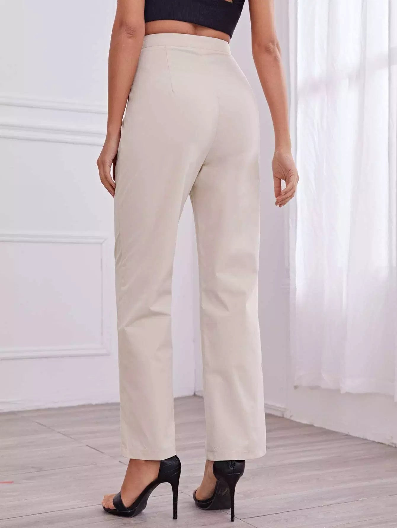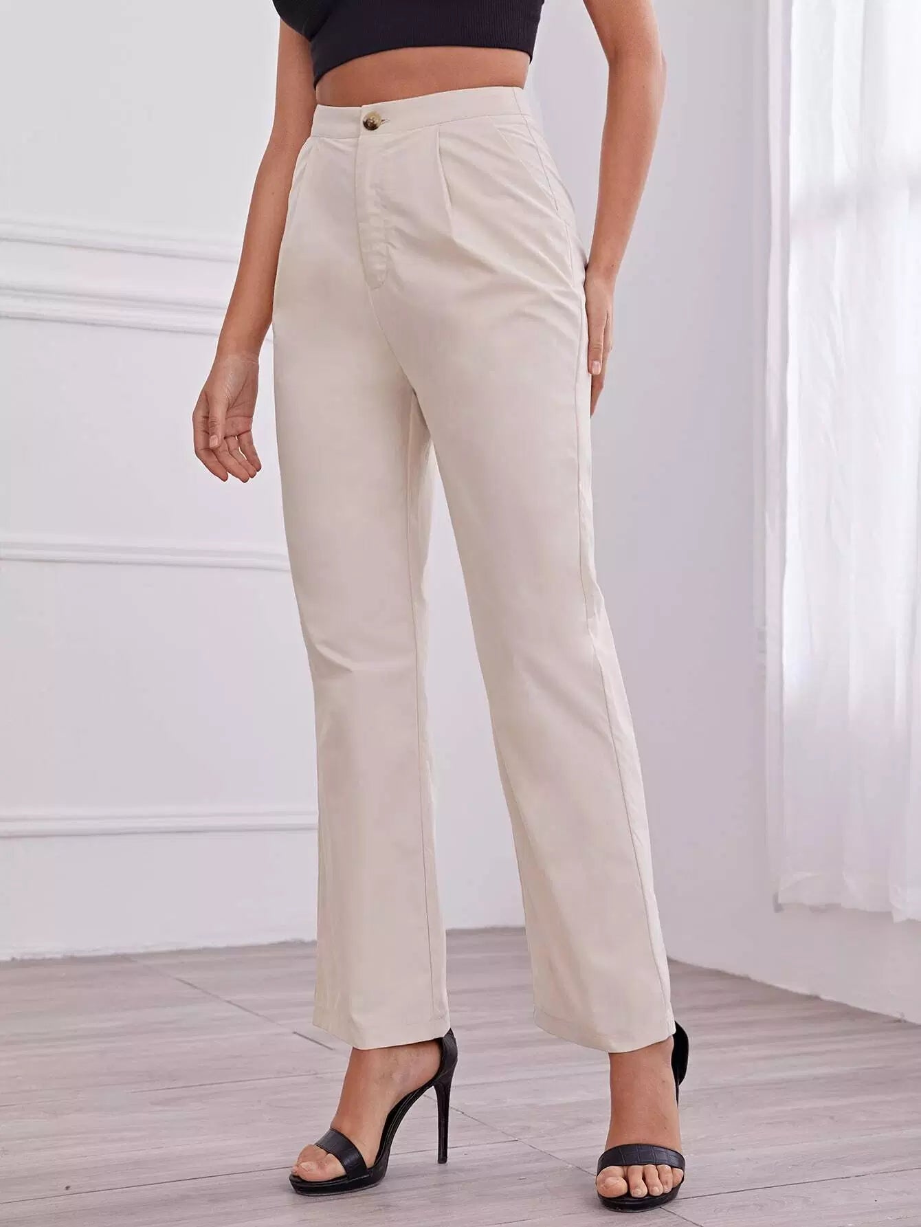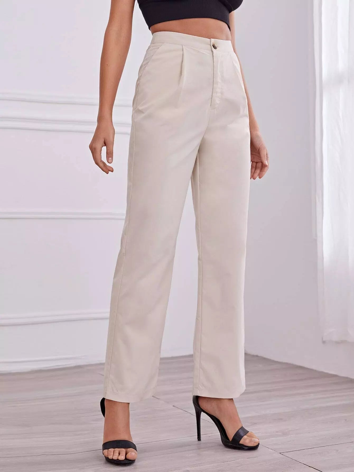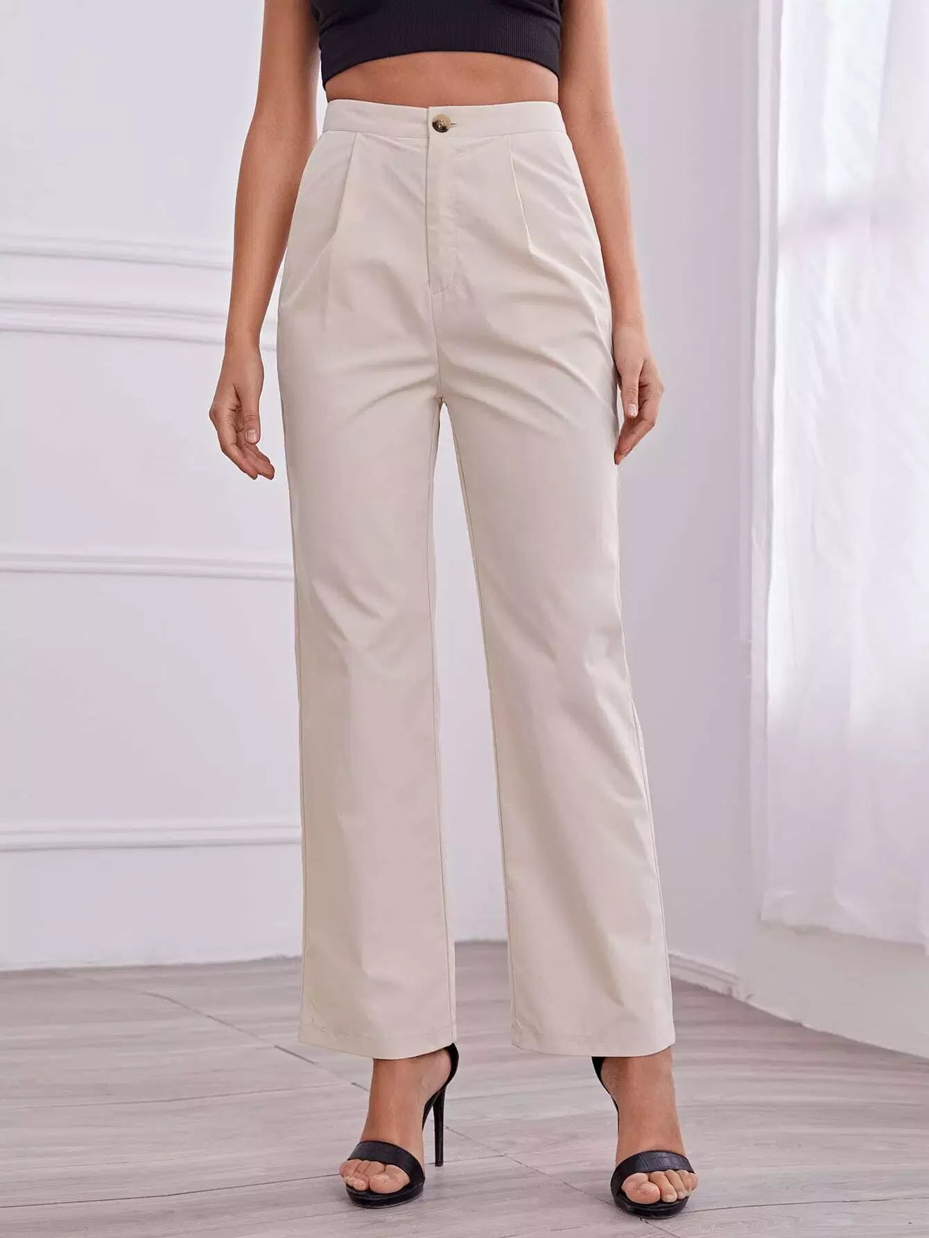 بنطال ذو خصر عالٍ مطوي بطيات مستقيمة الساقين