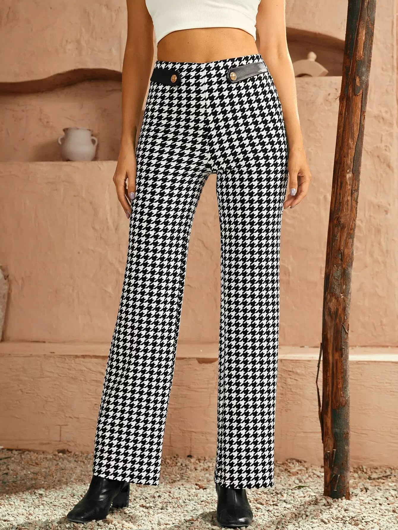 بنطلون مستقيم بخصر عالٍ ذو خصر مرتفع