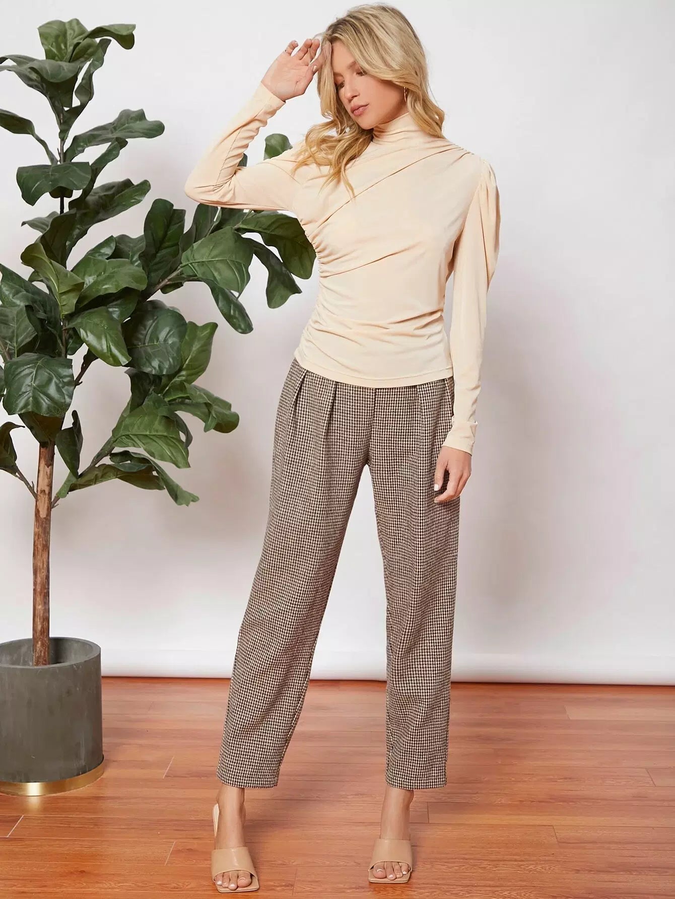بنطال تويد عالي الخصر ذو خصر عالٍ من التويد