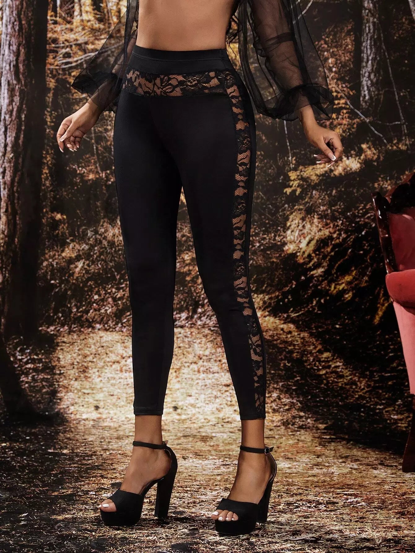 بنطلون سكيني بخصر عالٍ من الدانتيل المداخل من الدانتيل