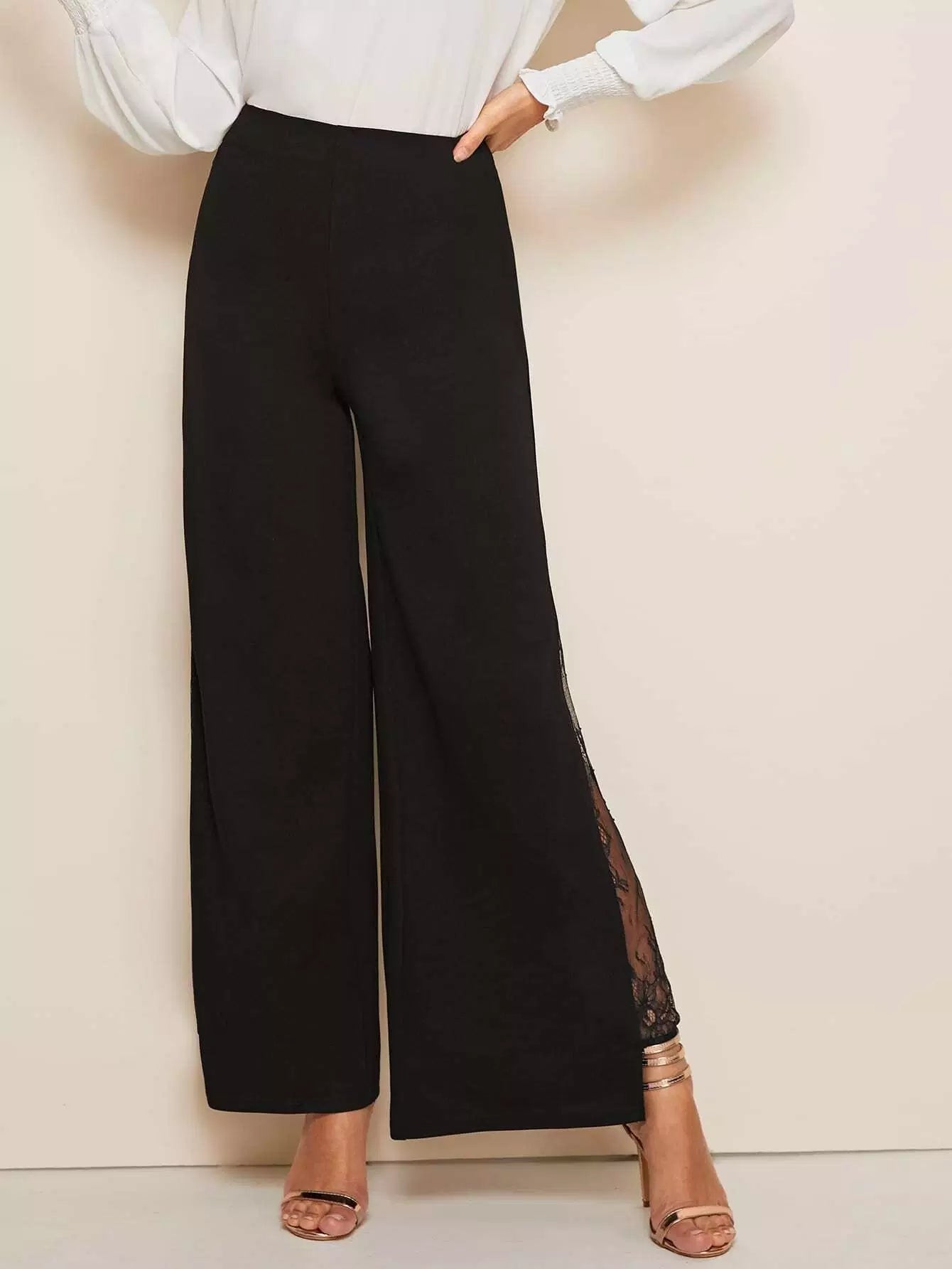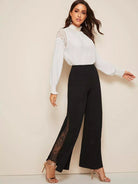بنطلون بحاشية دانتيل عالية الخصر بحواف متدرجة