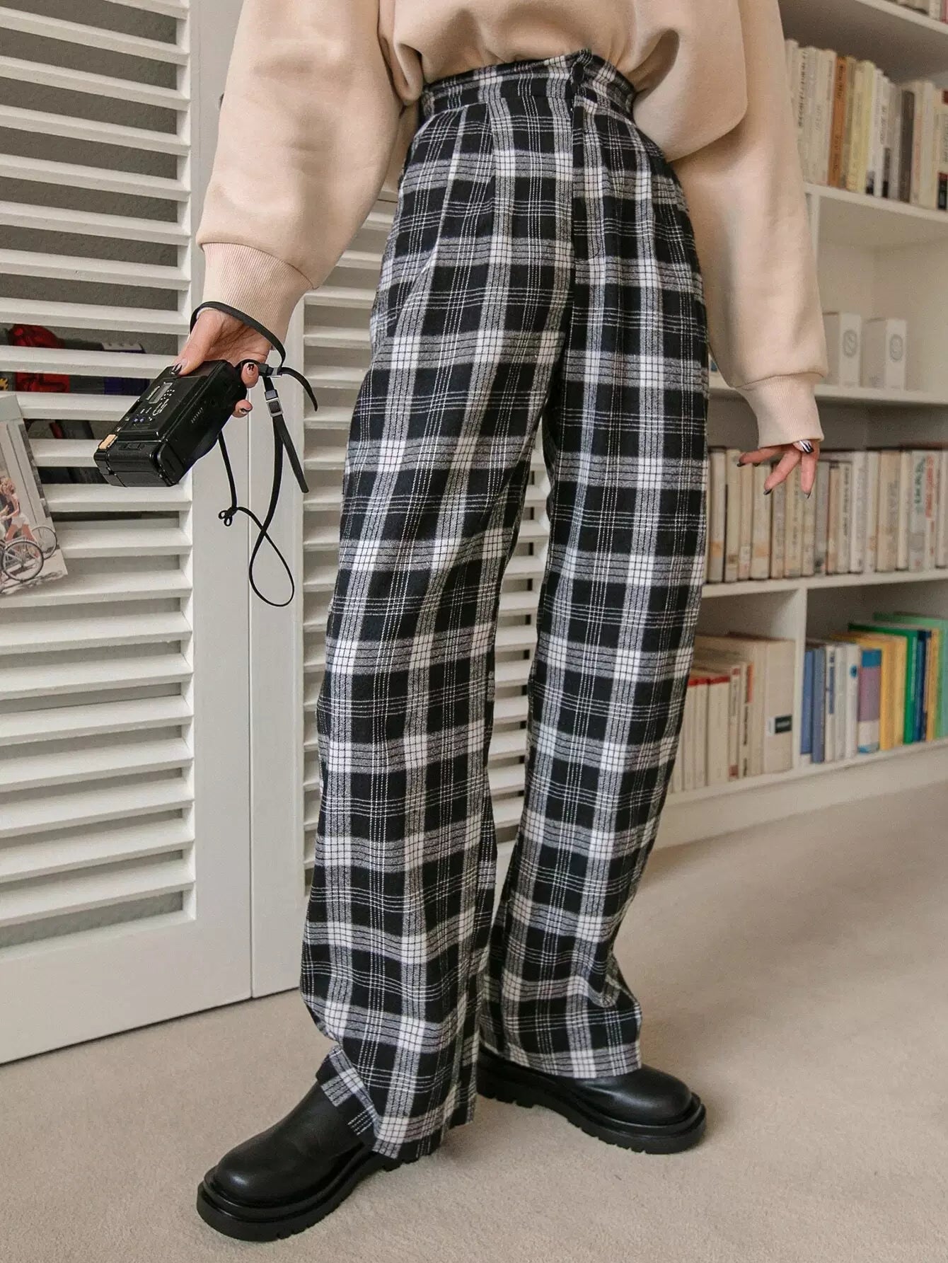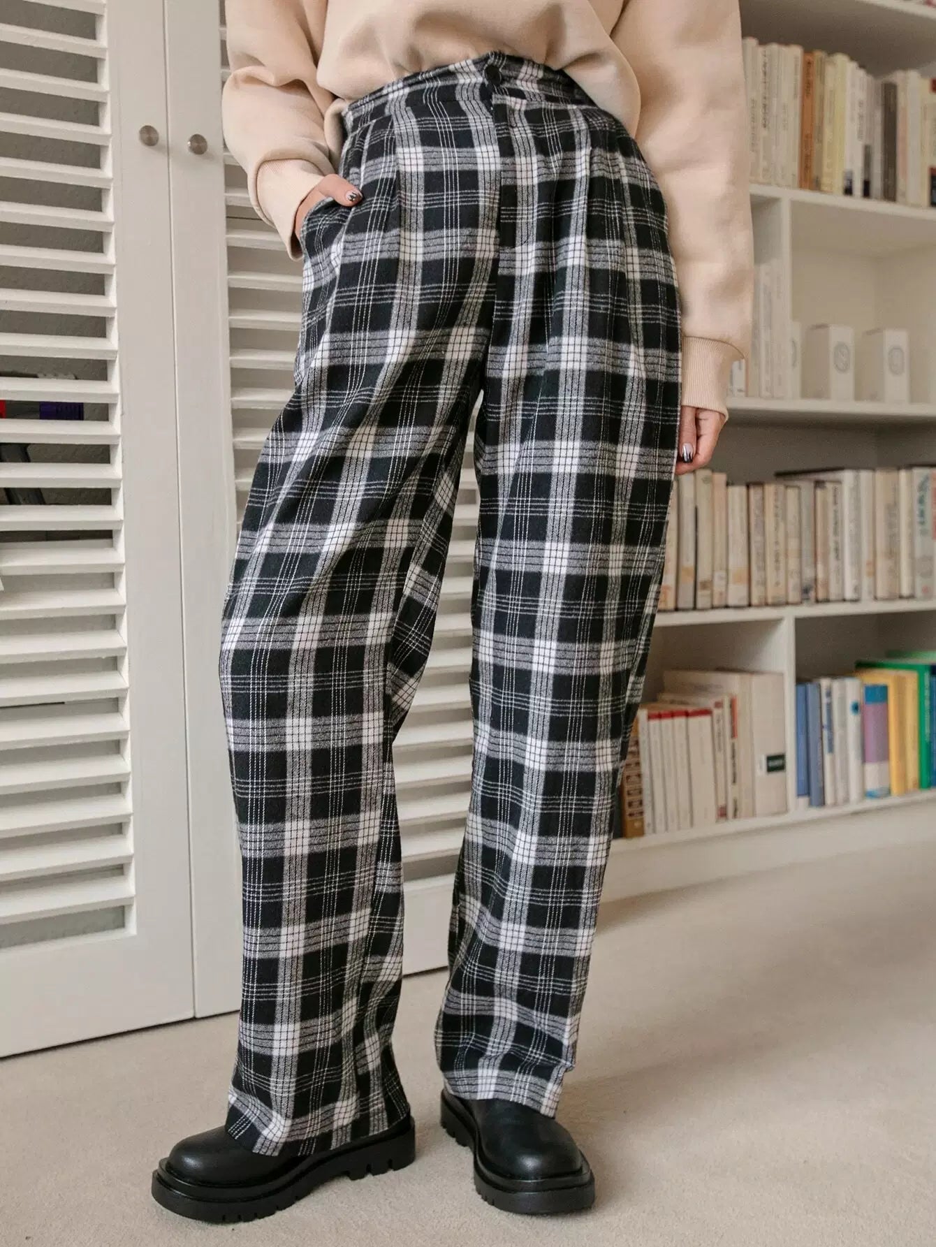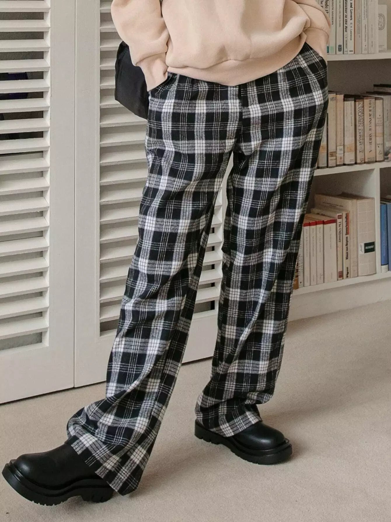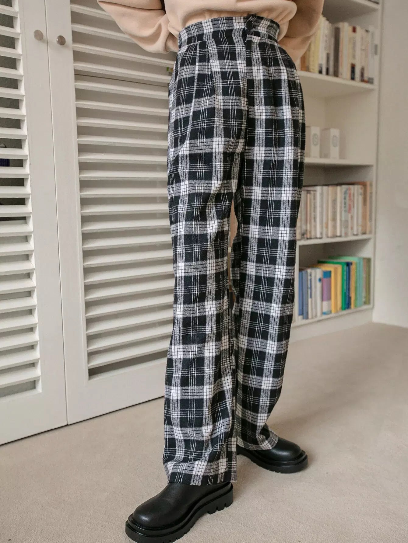 بنطال منقوش بخصر مرتفع وساق مستقيمة
