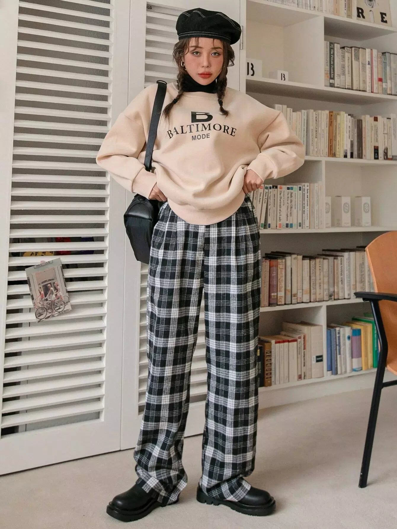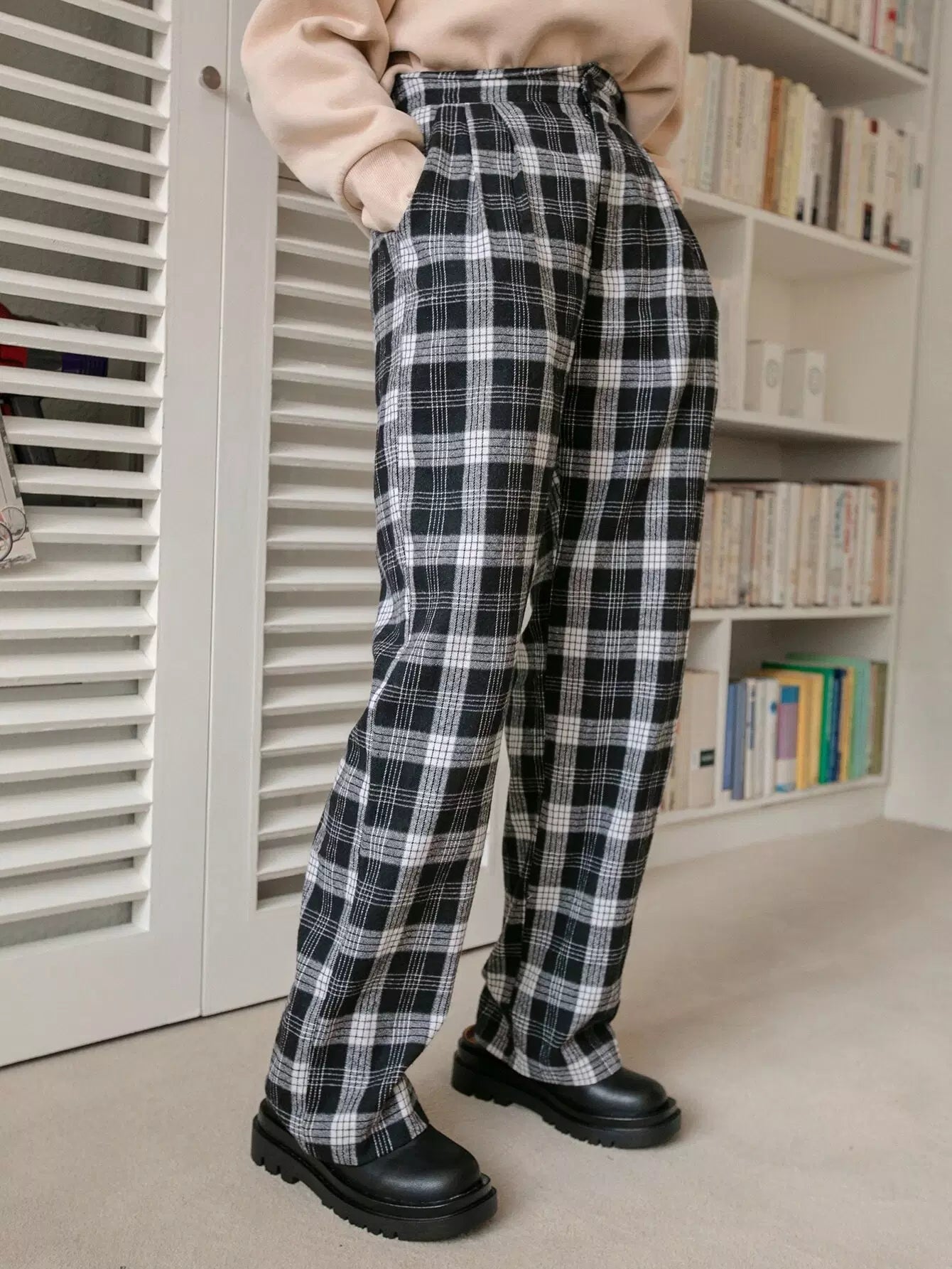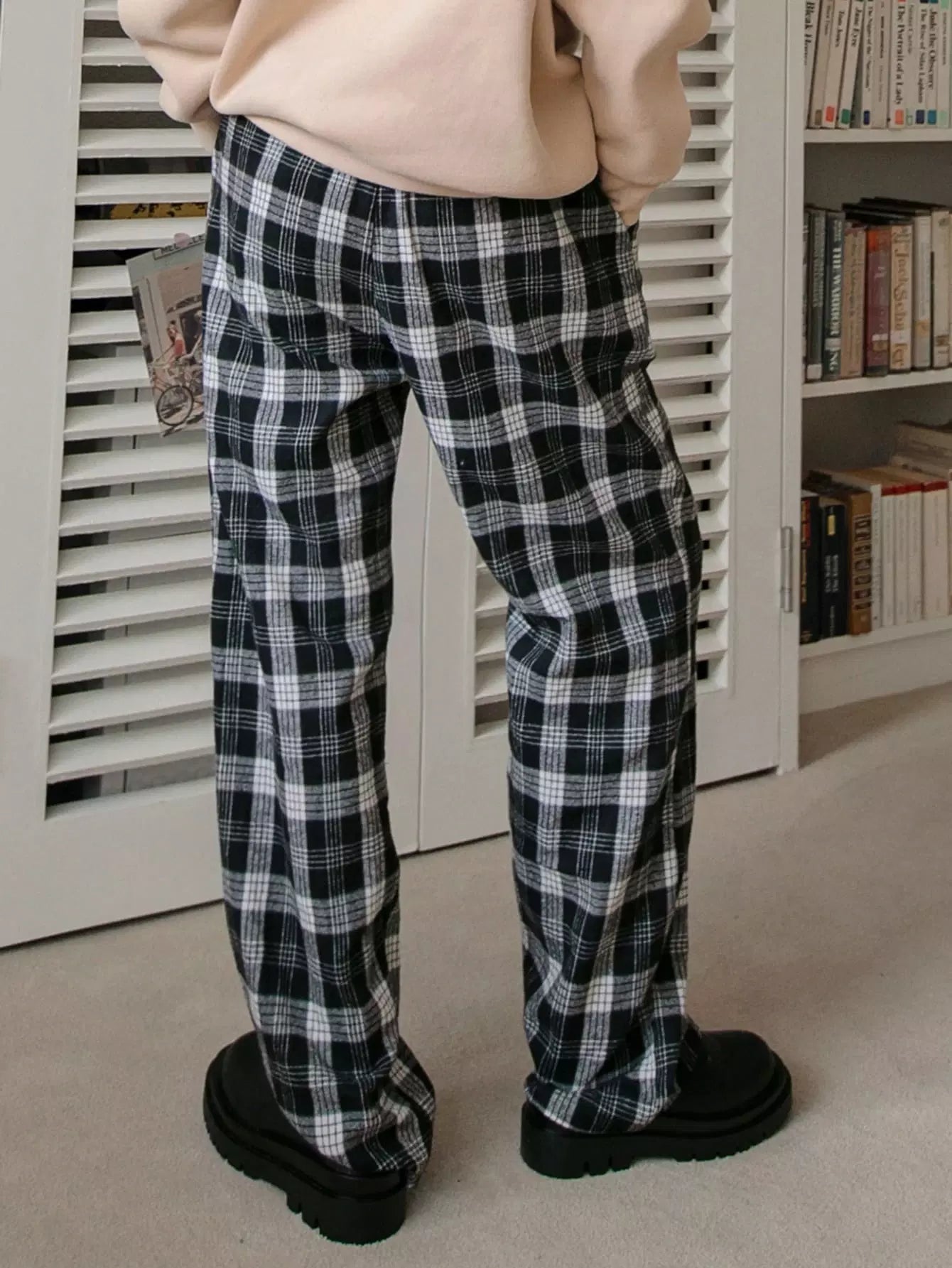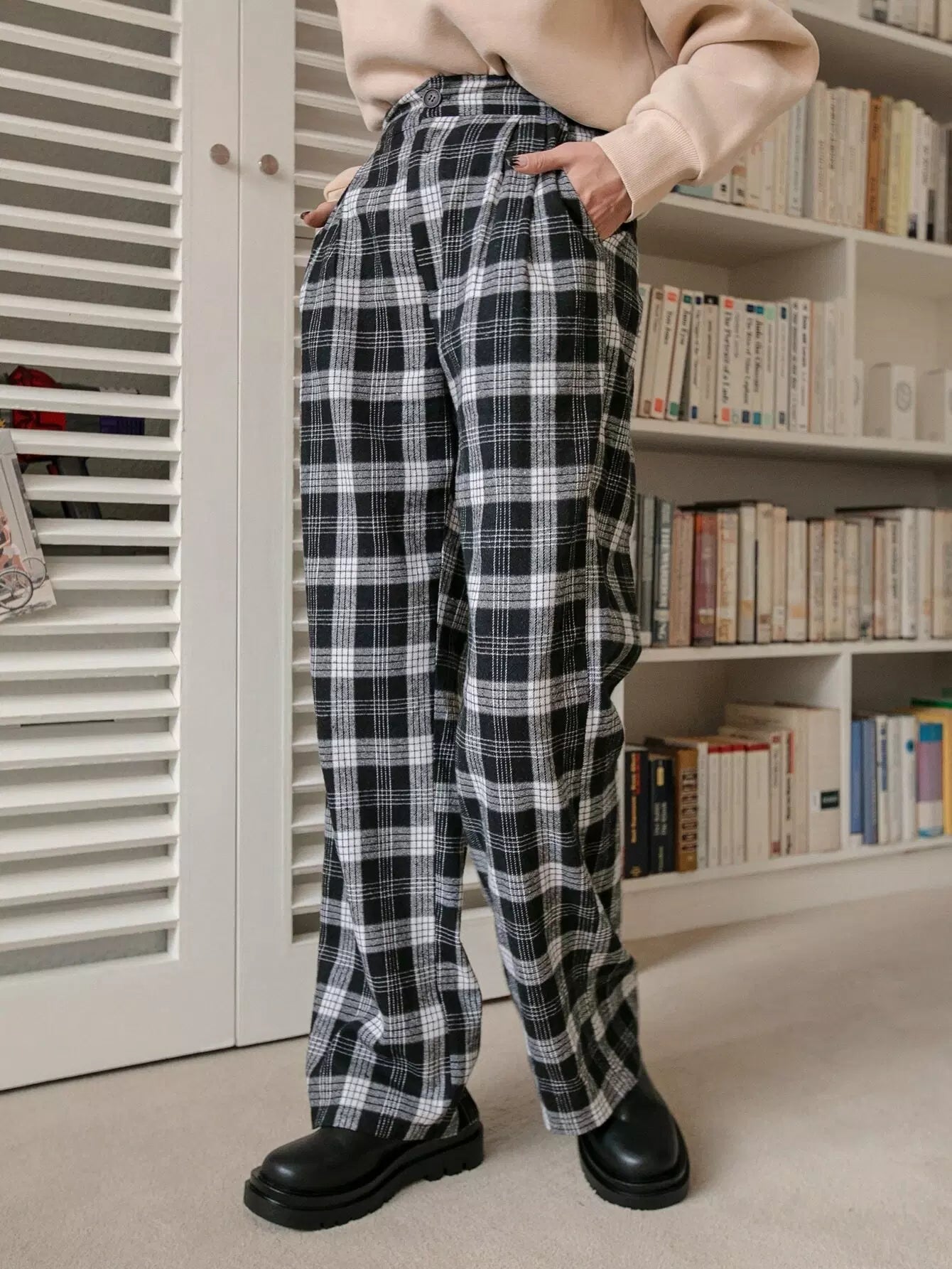 بنطال منقوش بخصر مرتفع وساق مستقيمة