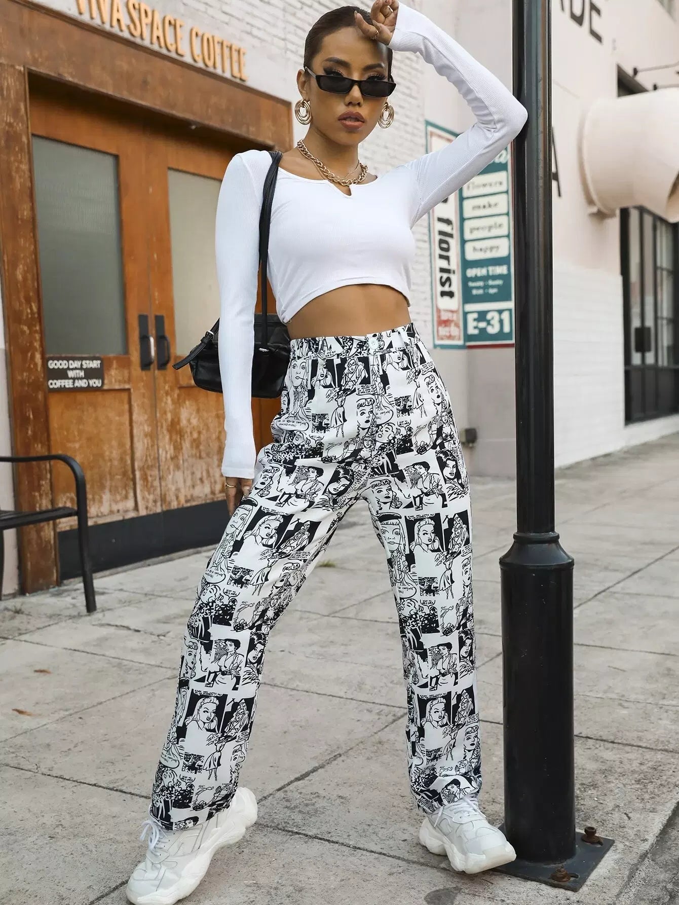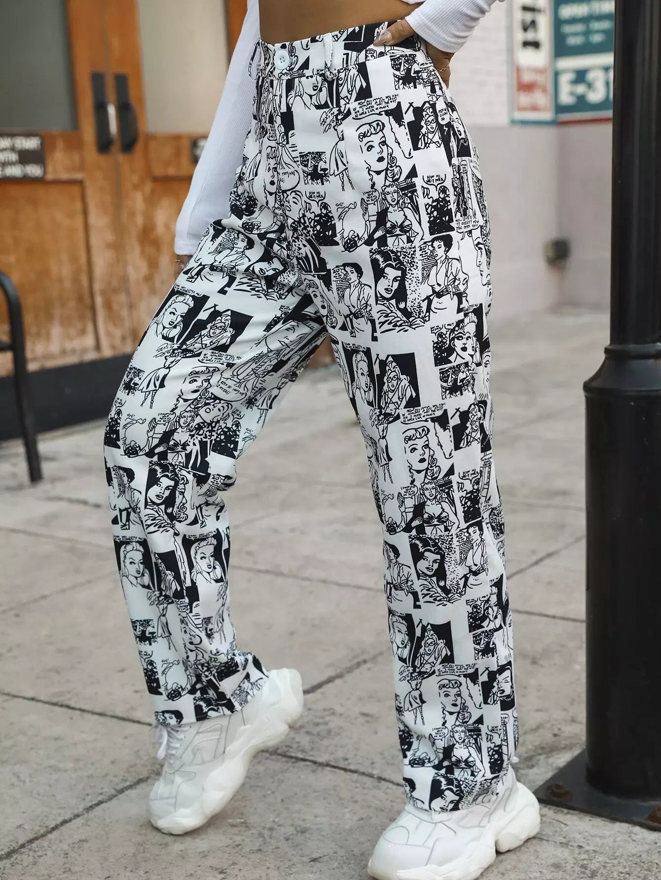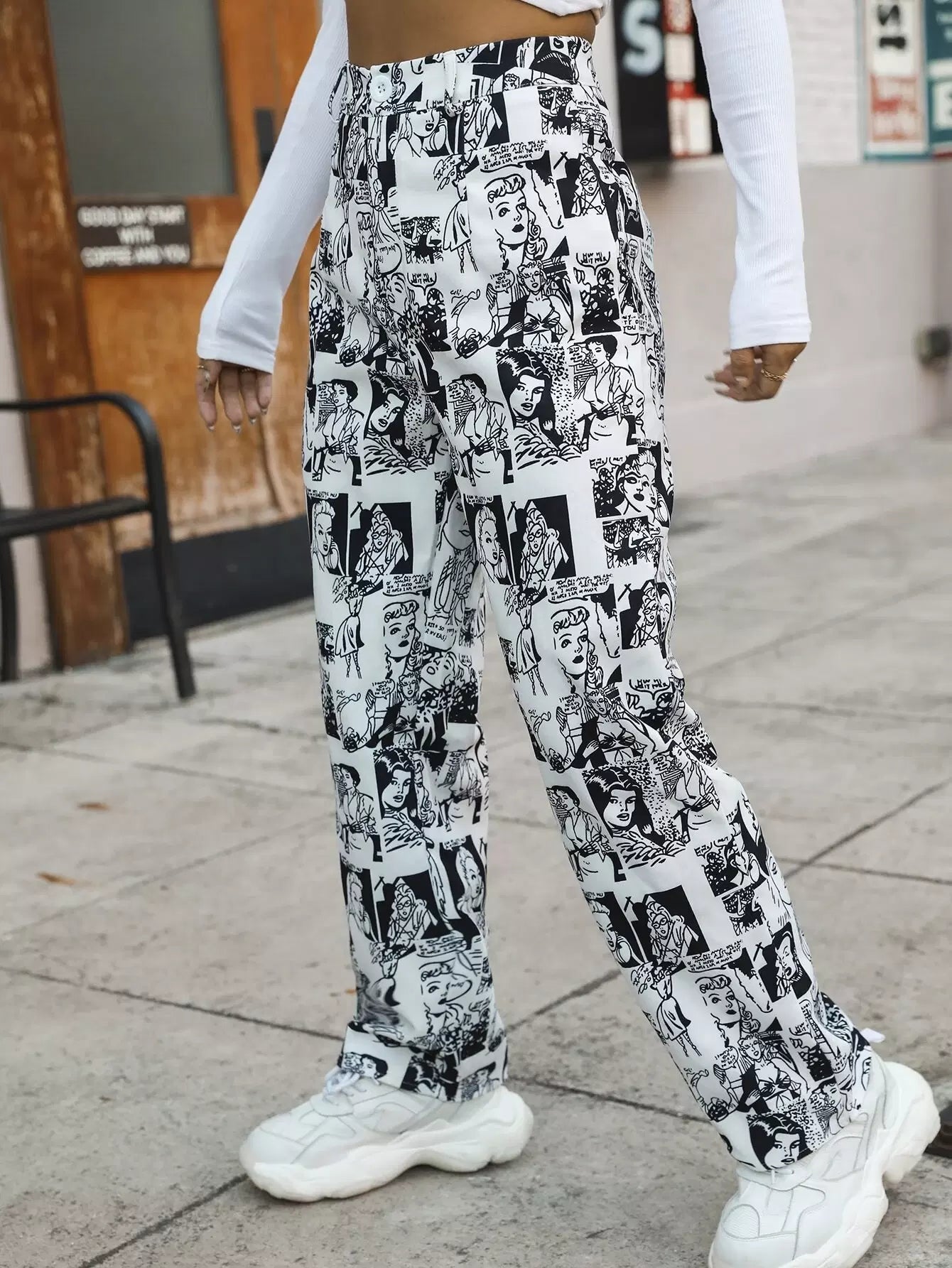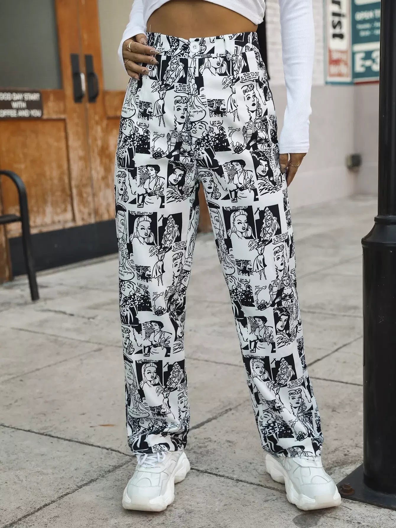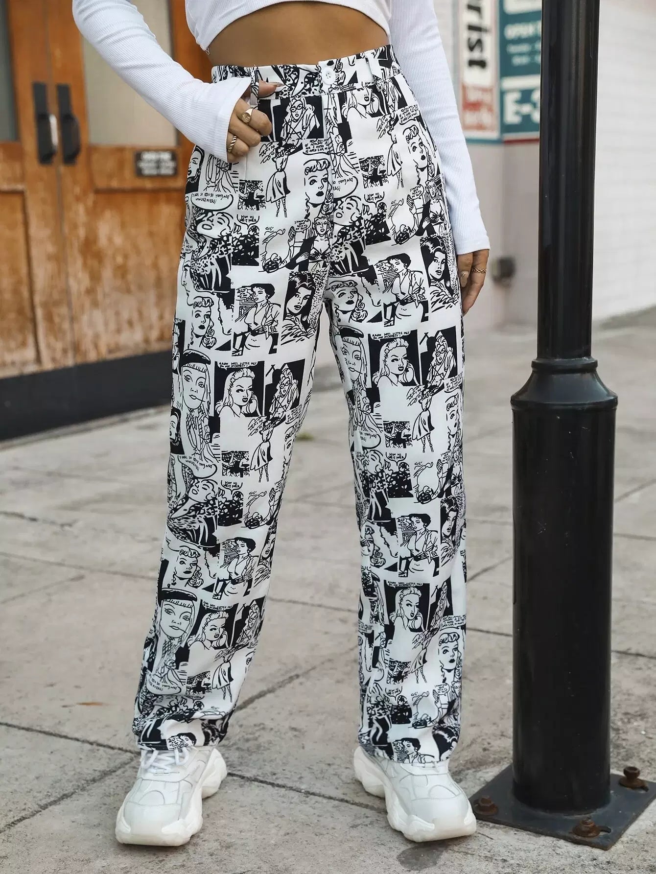 بنطال بطبعة فن البوب آرت عالي الخصر