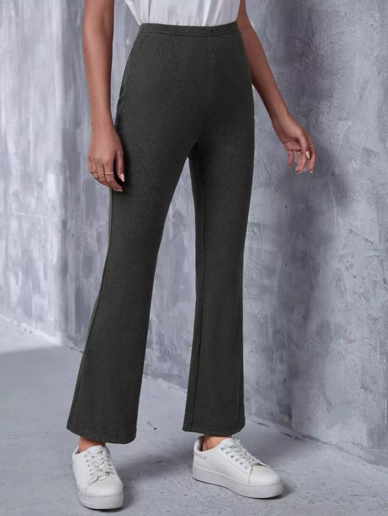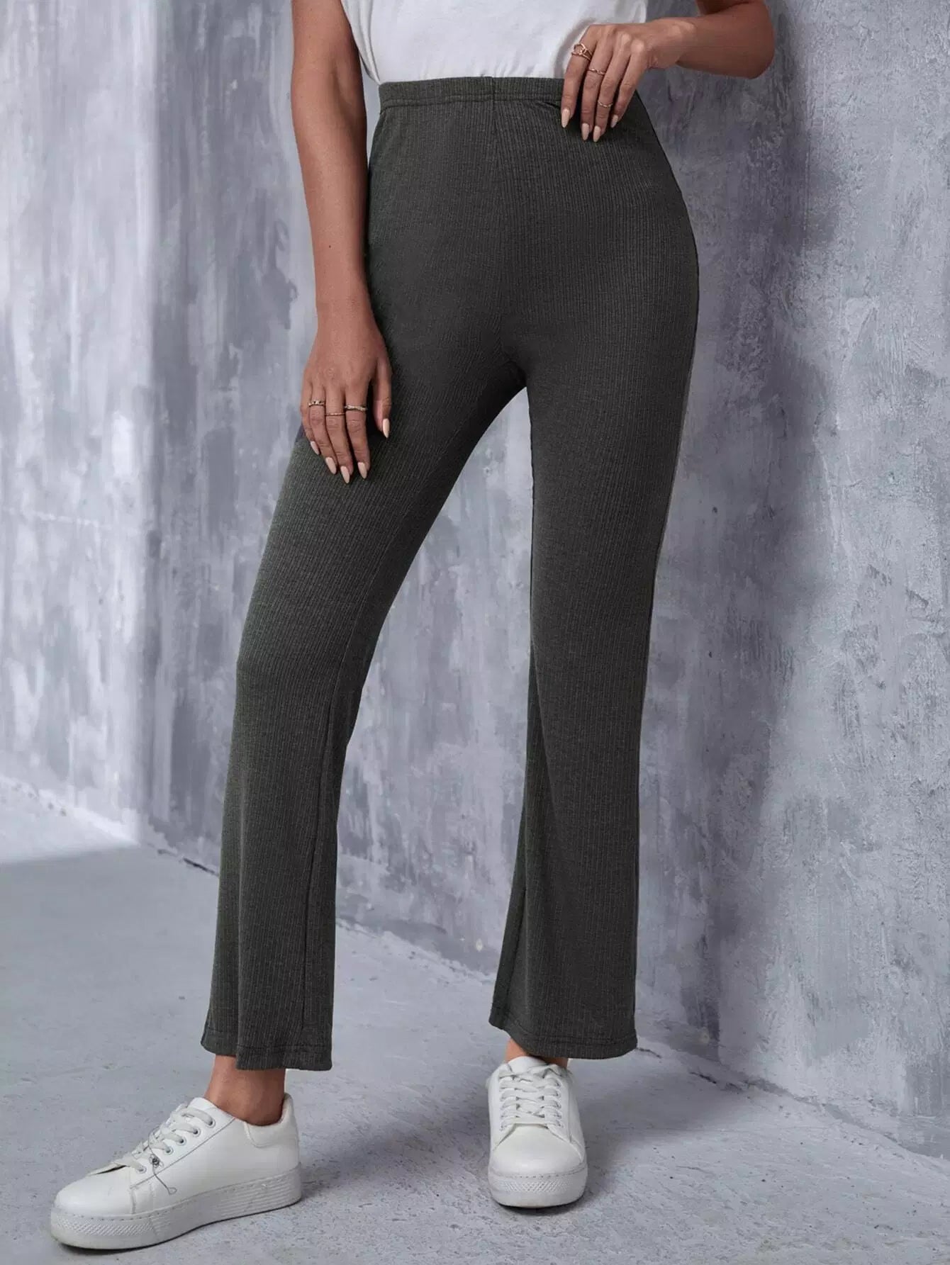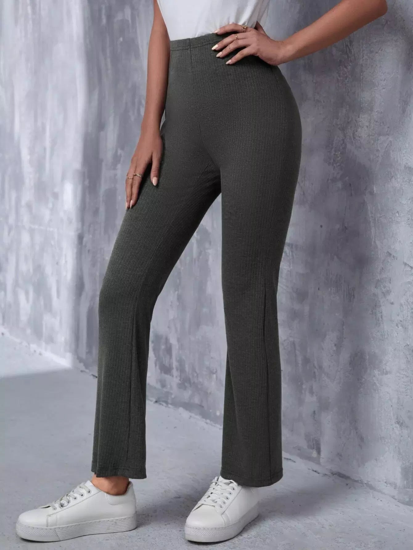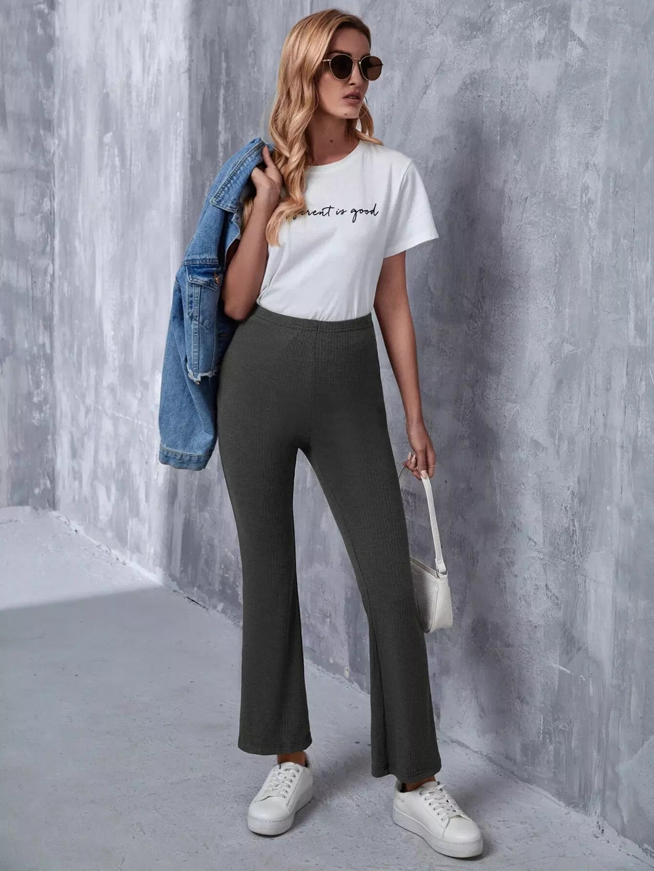 بنطلون بخصر عالٍ مضلع ومضلع ومضلع الساقين الفضفاضة