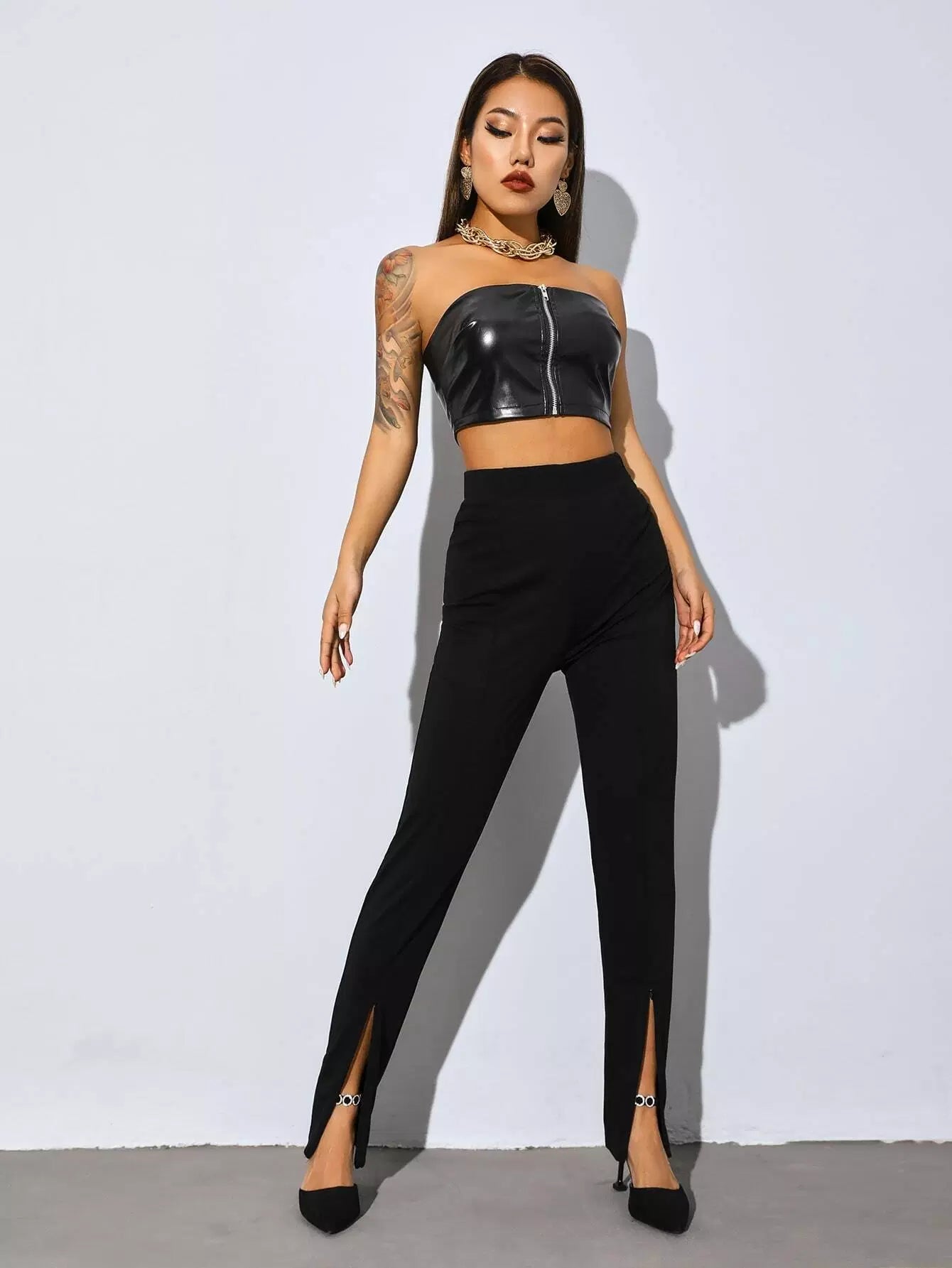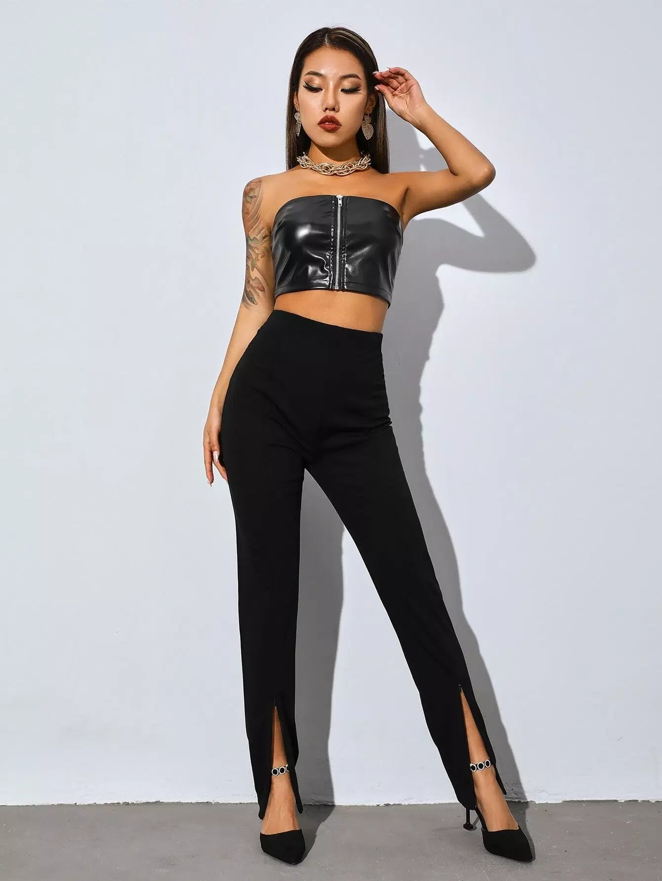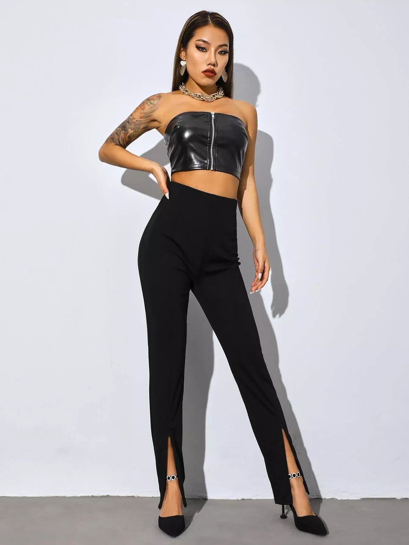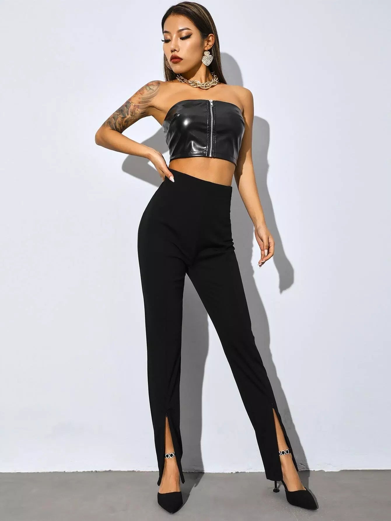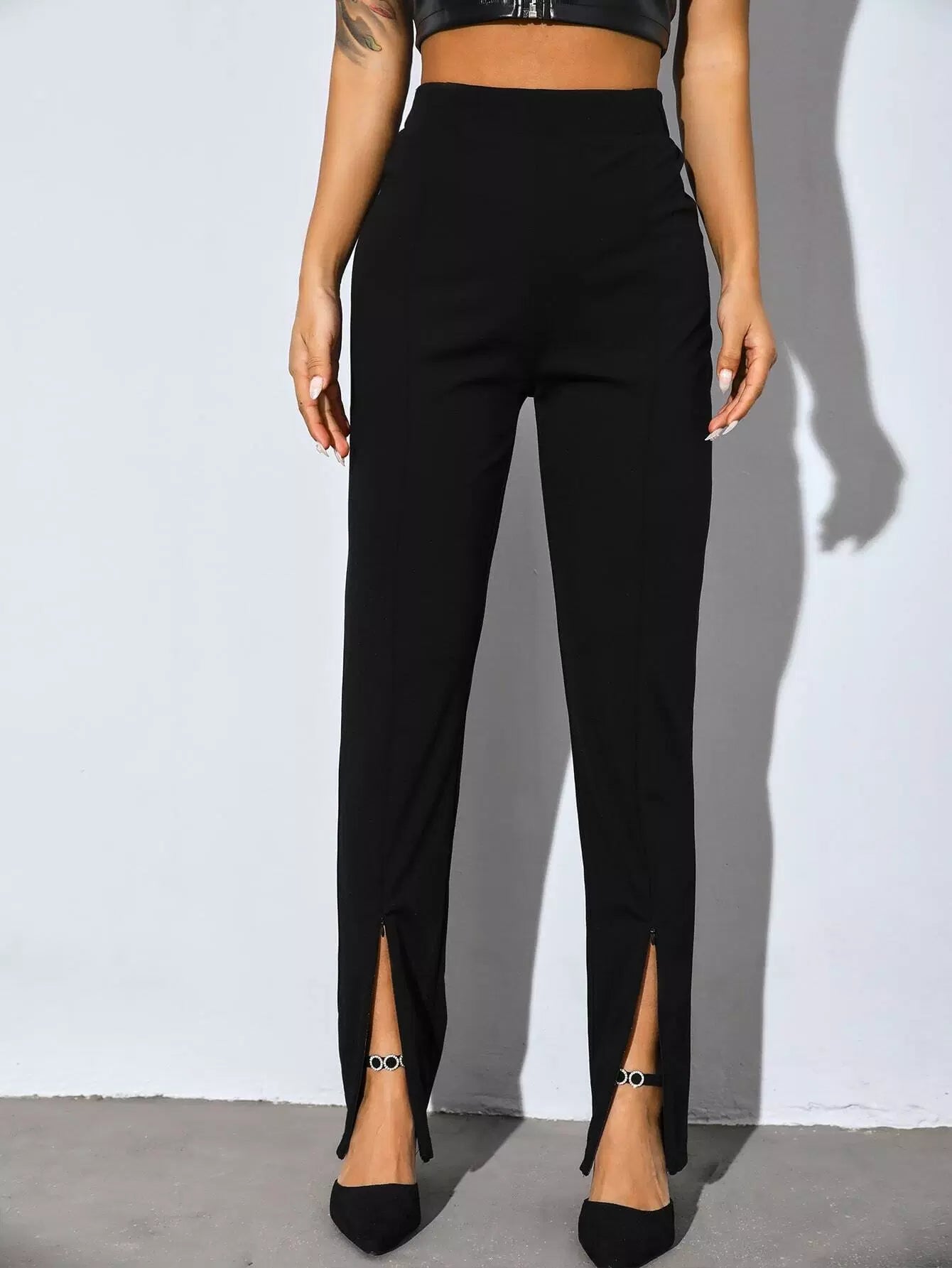 بنطلون بخصر عالي الخصر مشقوق الحاشية