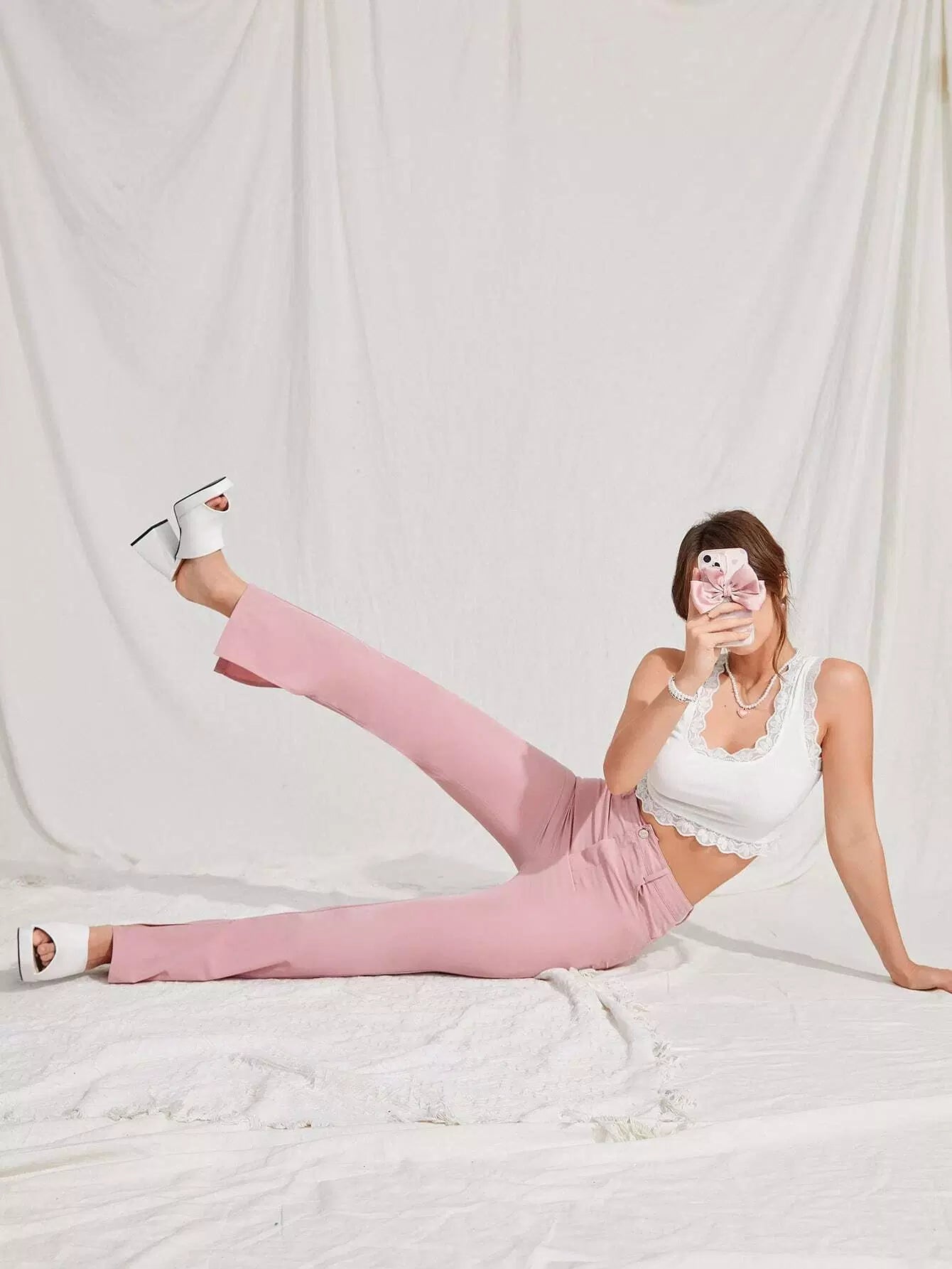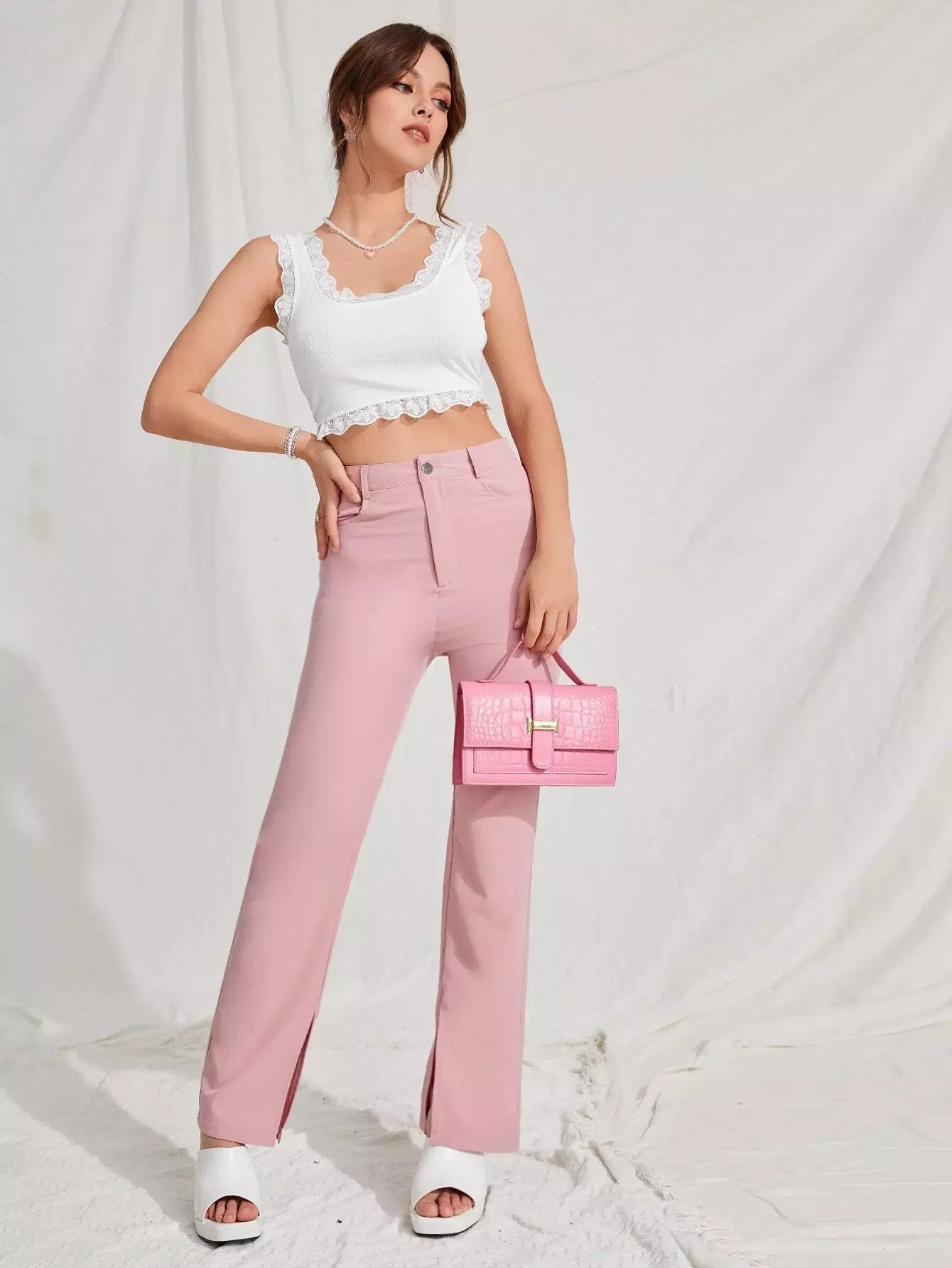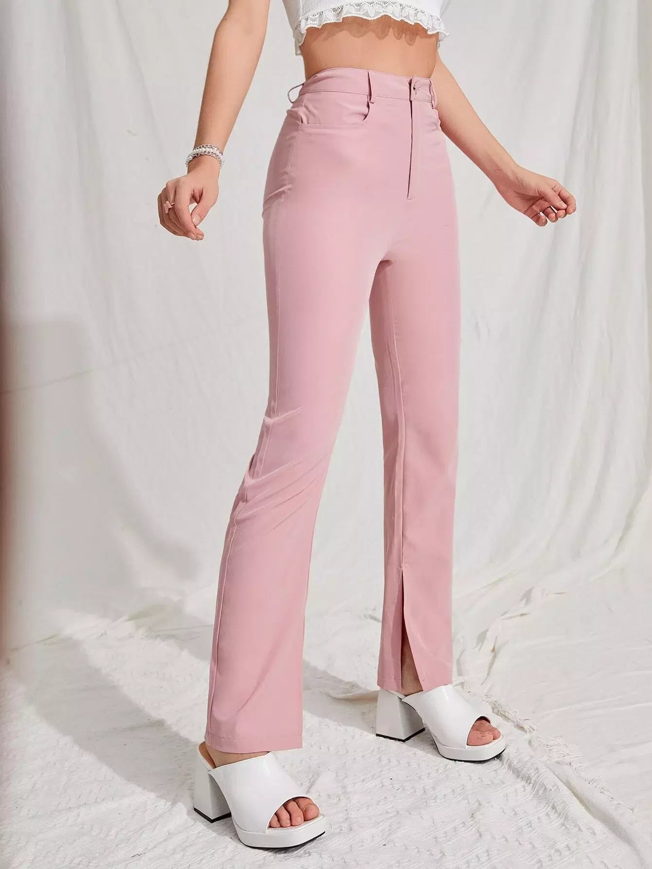 بنطلون بخصر عالي الخصر مشقوق الحاشية