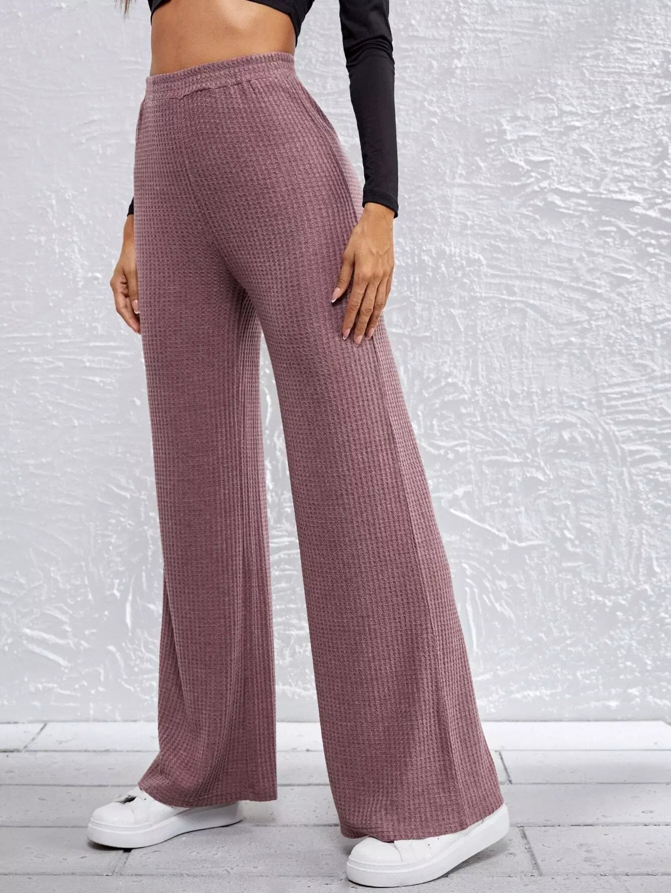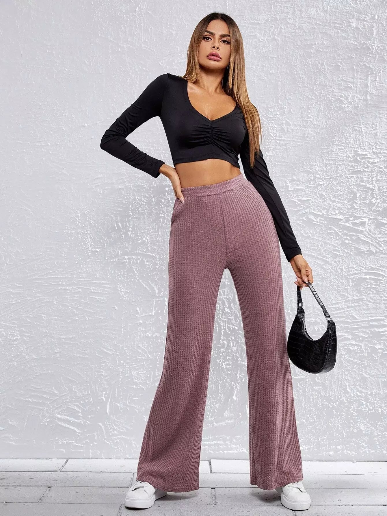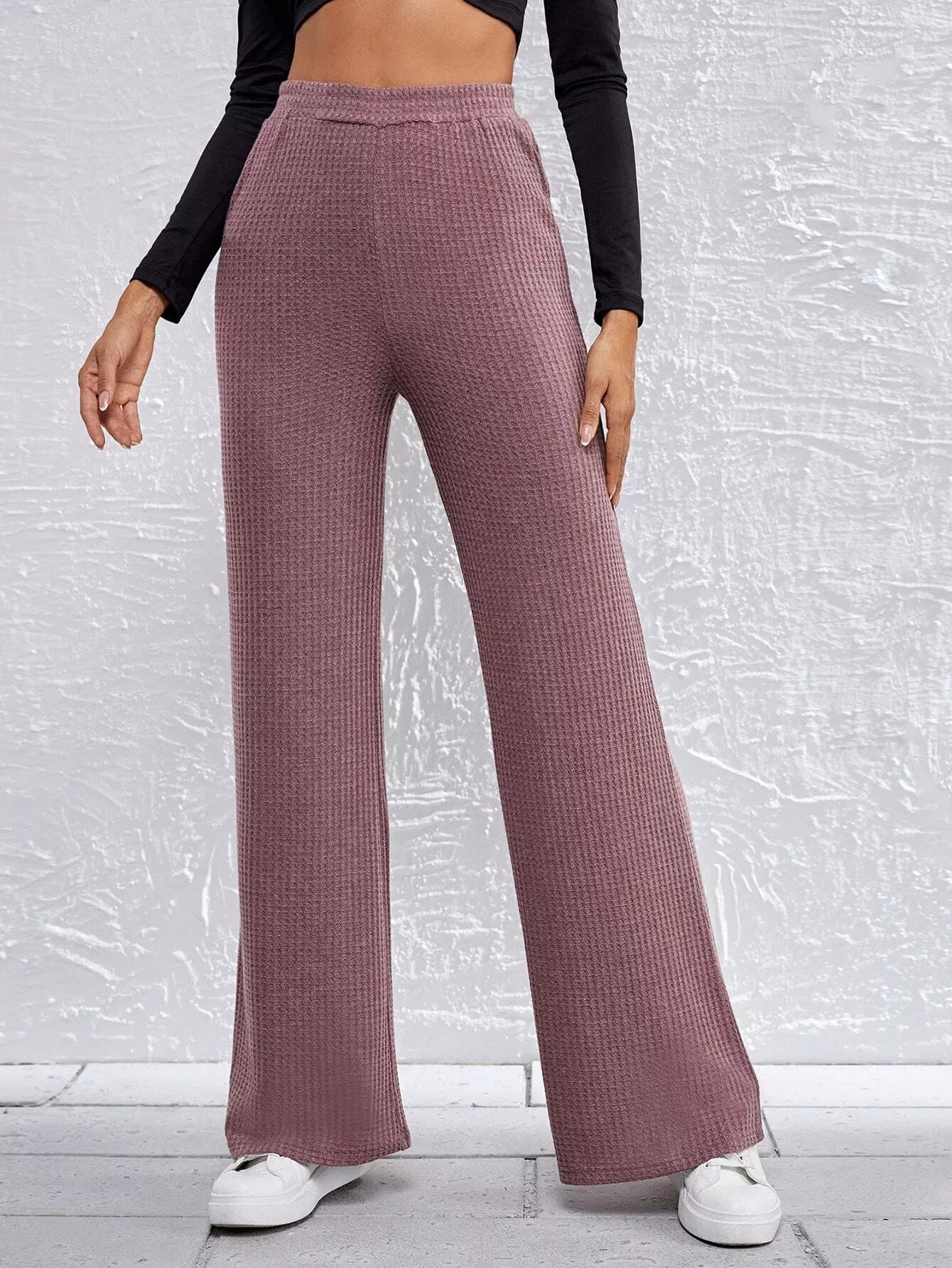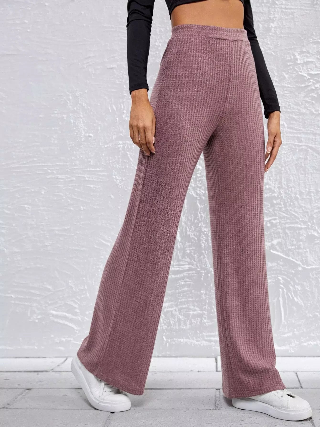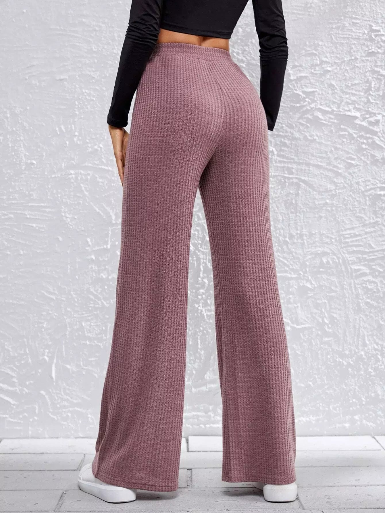 بنطلون واسع الخصر عالي الخصر وواسع الساقين محبوك من الوافل
