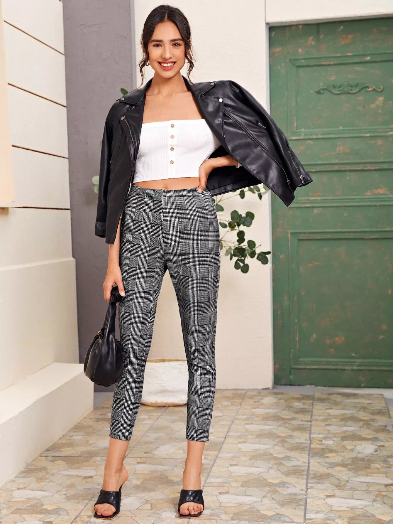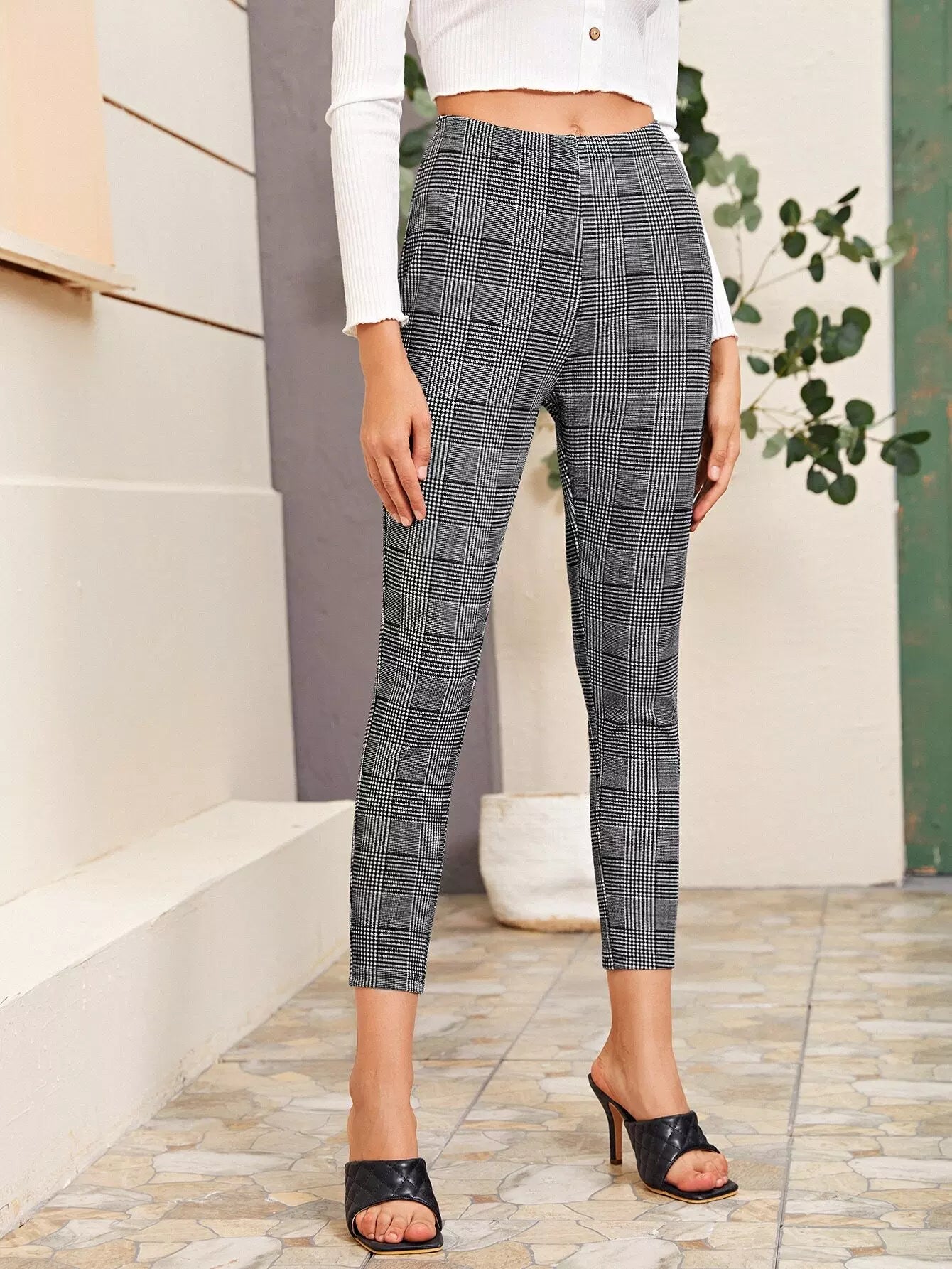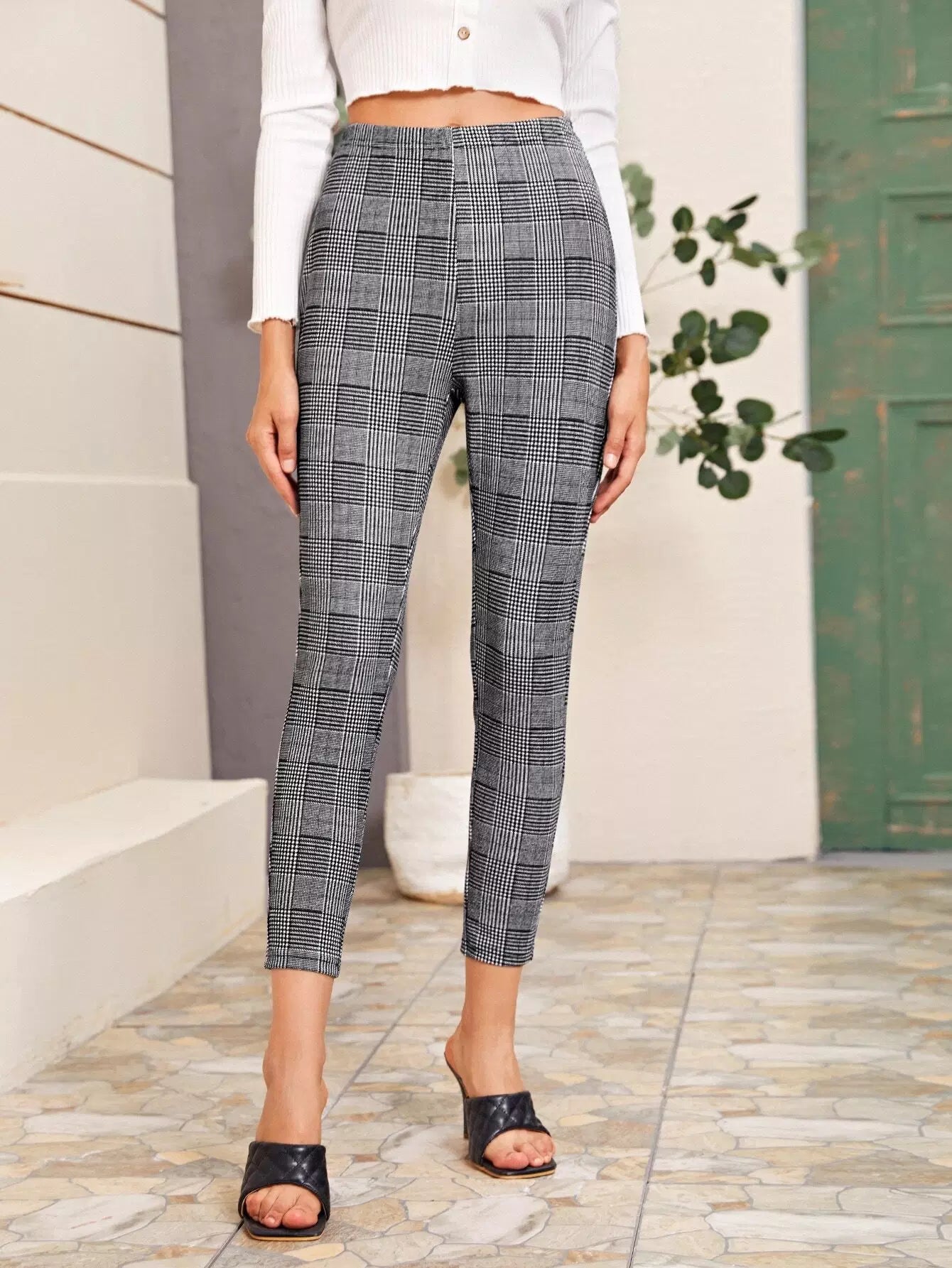 النساء - السراويل الضيقة ذات المربعات والمربعات