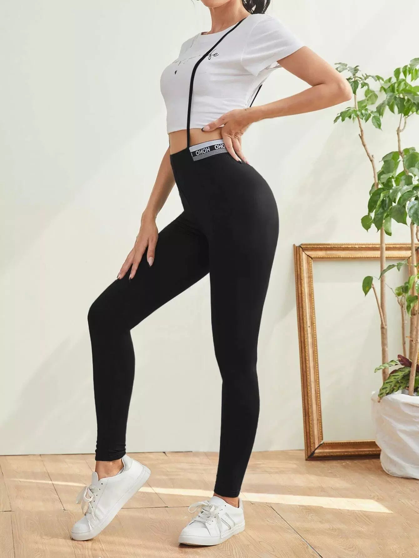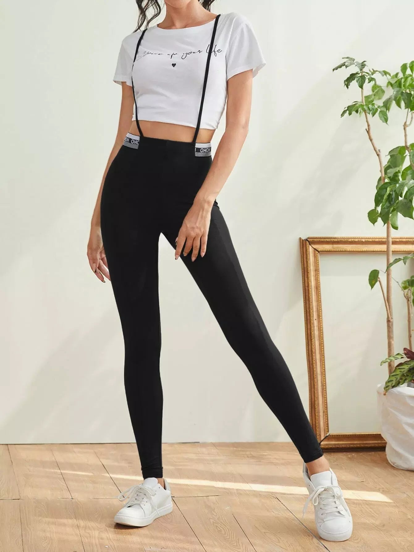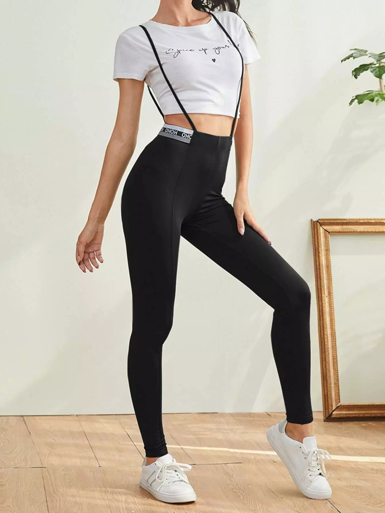 بنطلون بحمالات ضيقة ذات رسومات حروف على شكل حرف