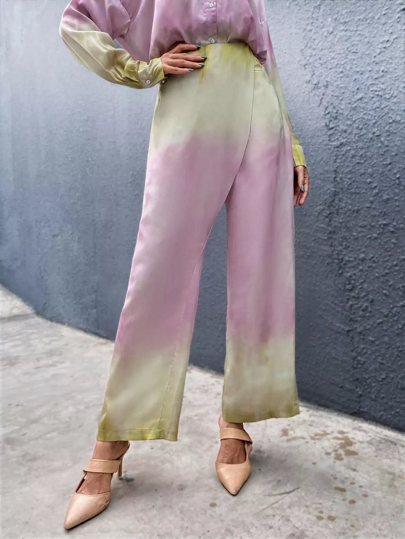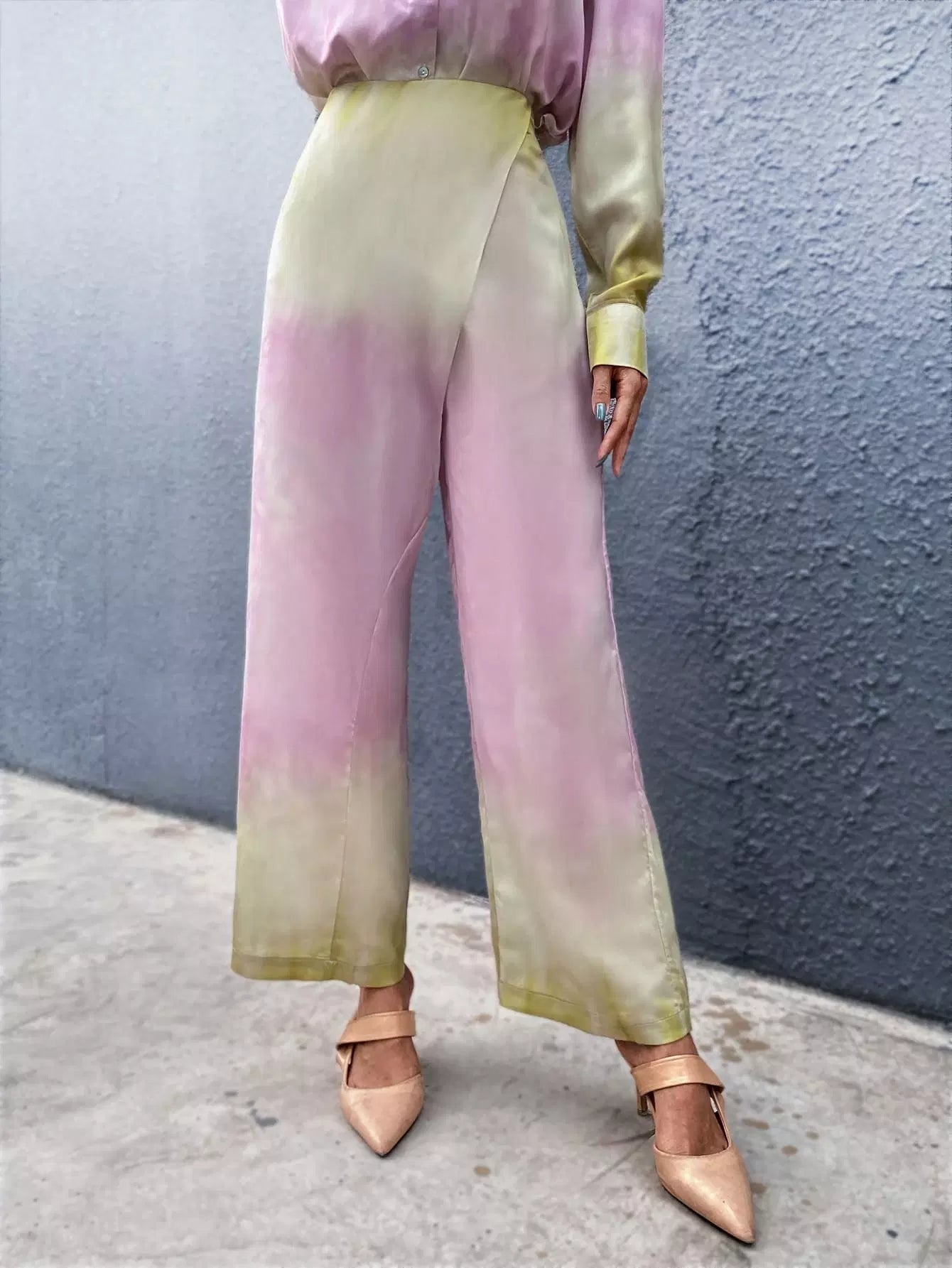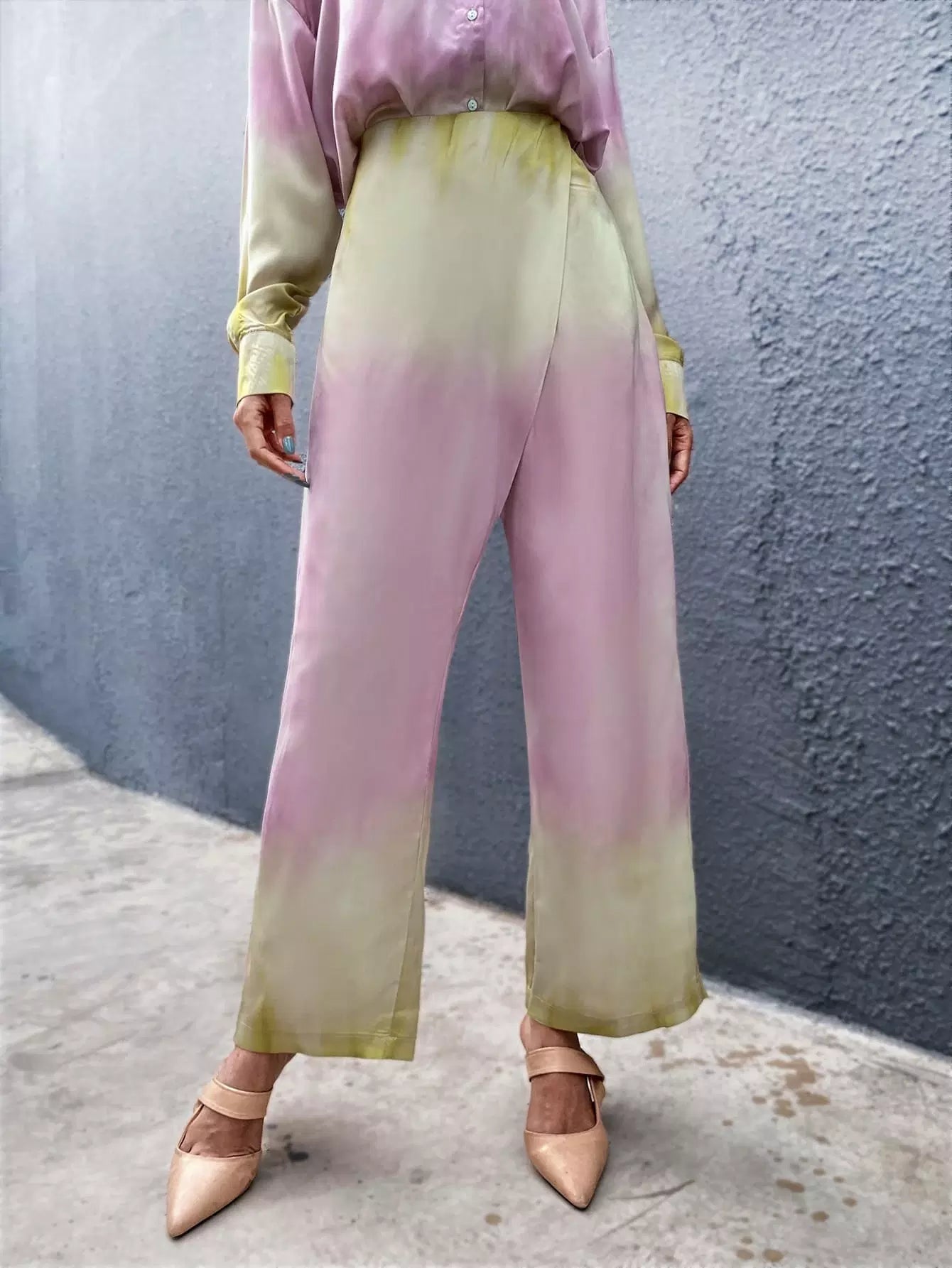 للنساء - بنطال واسع الساق بتفاصيل ملفوفة متدرجة الألوان