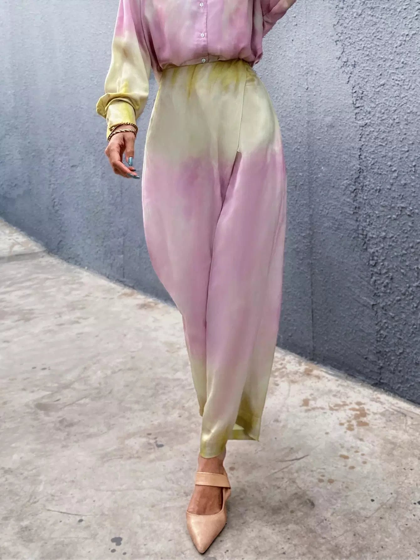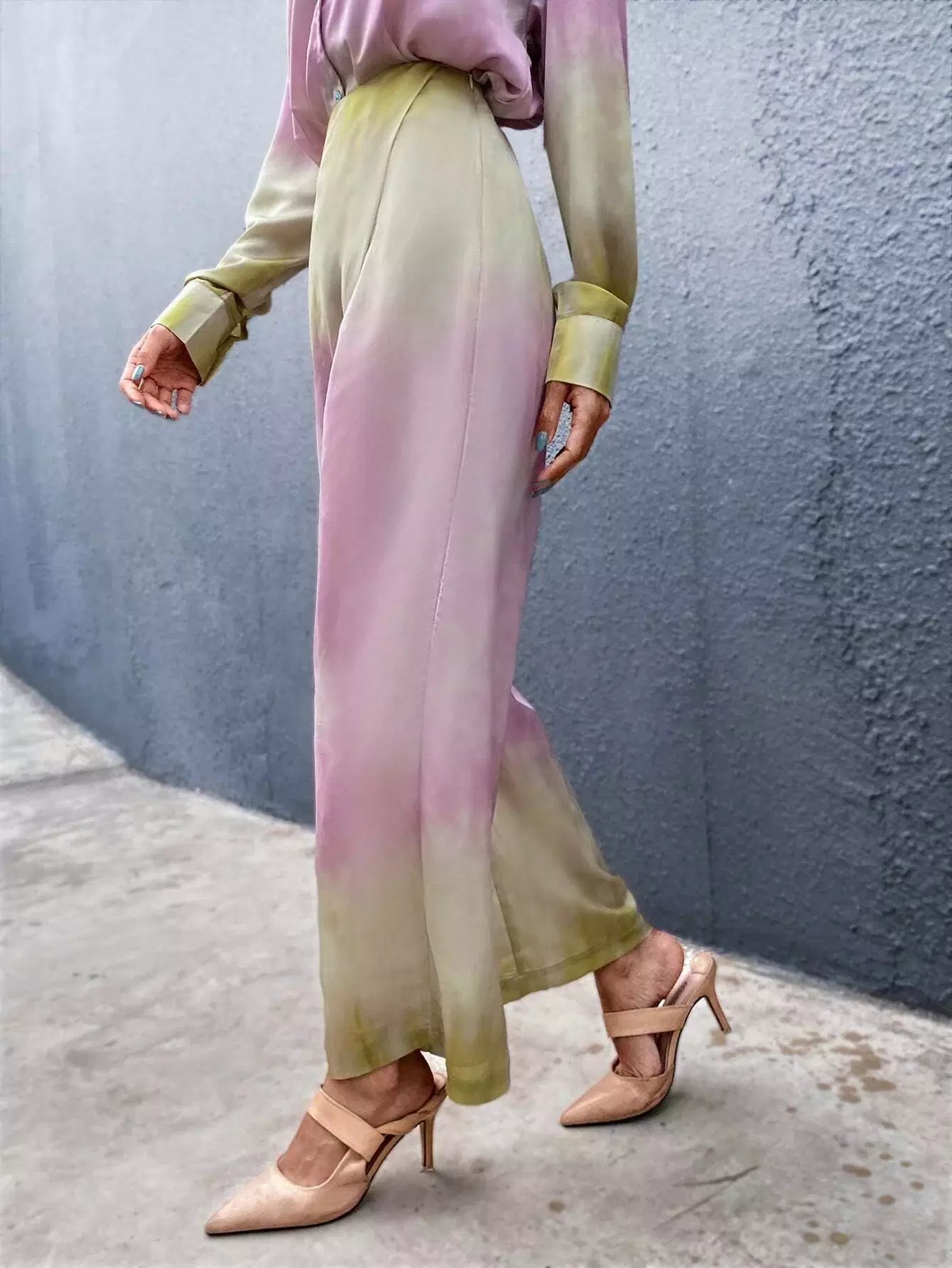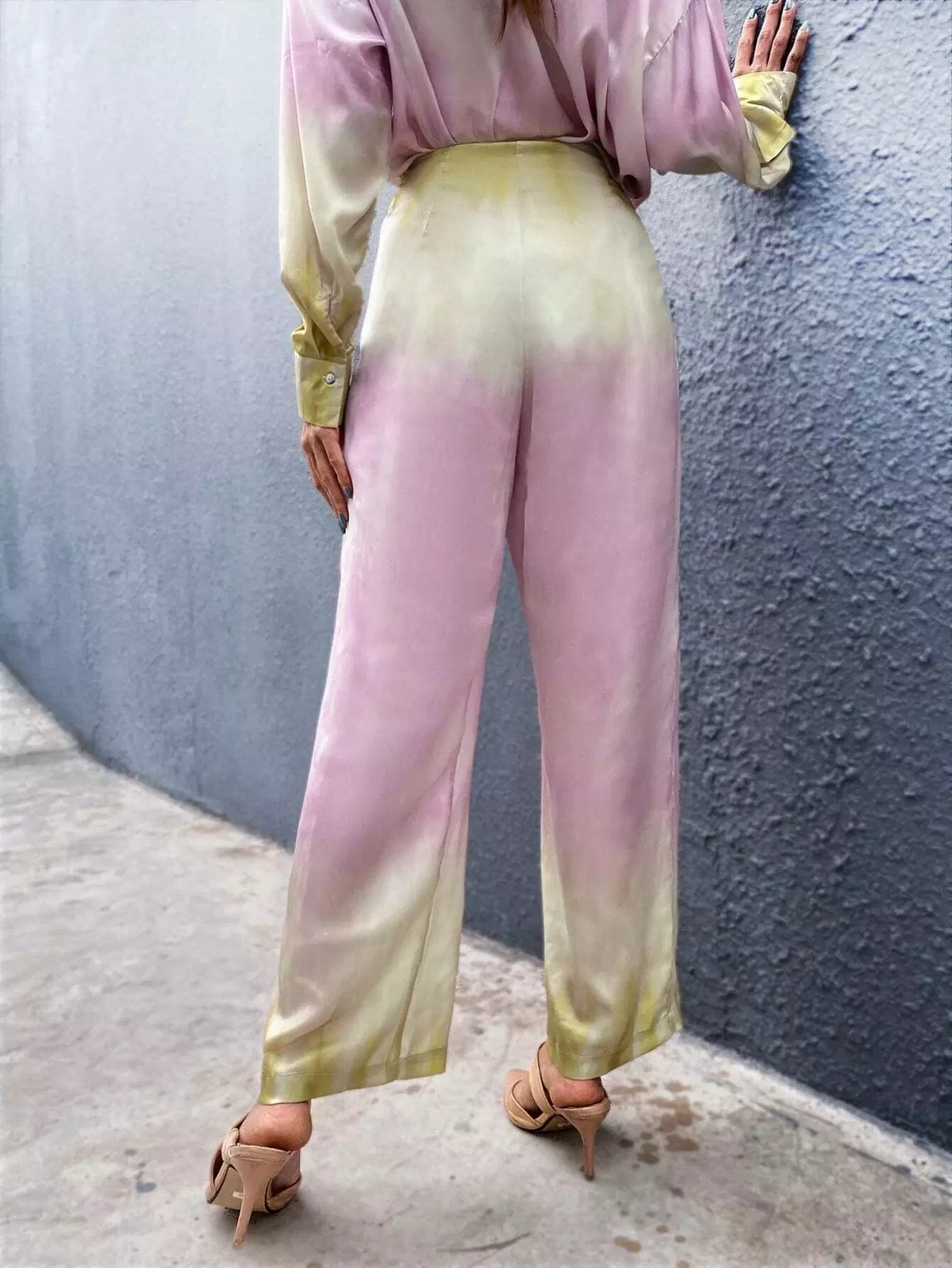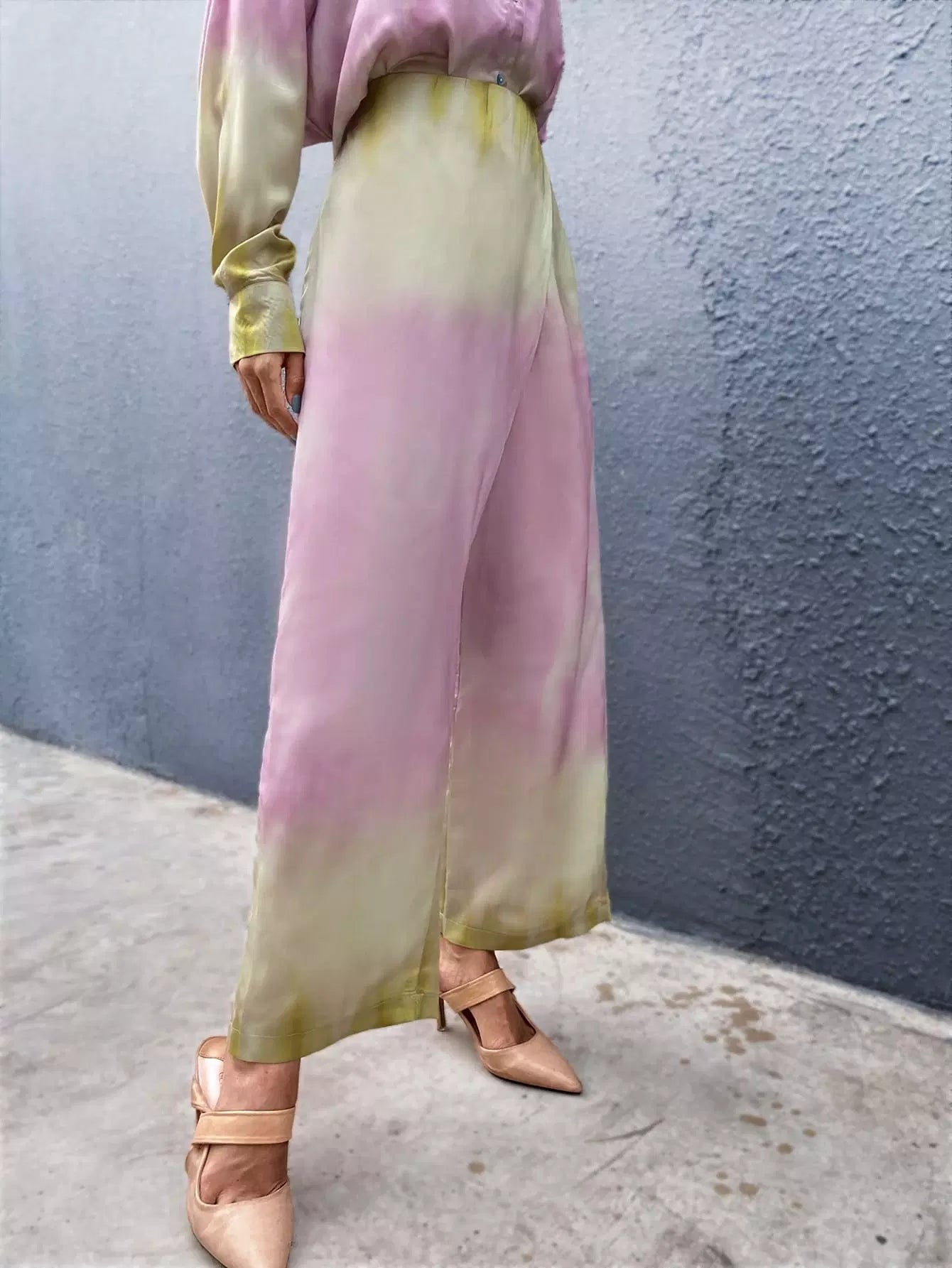 للنساء - بنطال واسع الساق بتفاصيل ملفوفة متدرجة الألوان