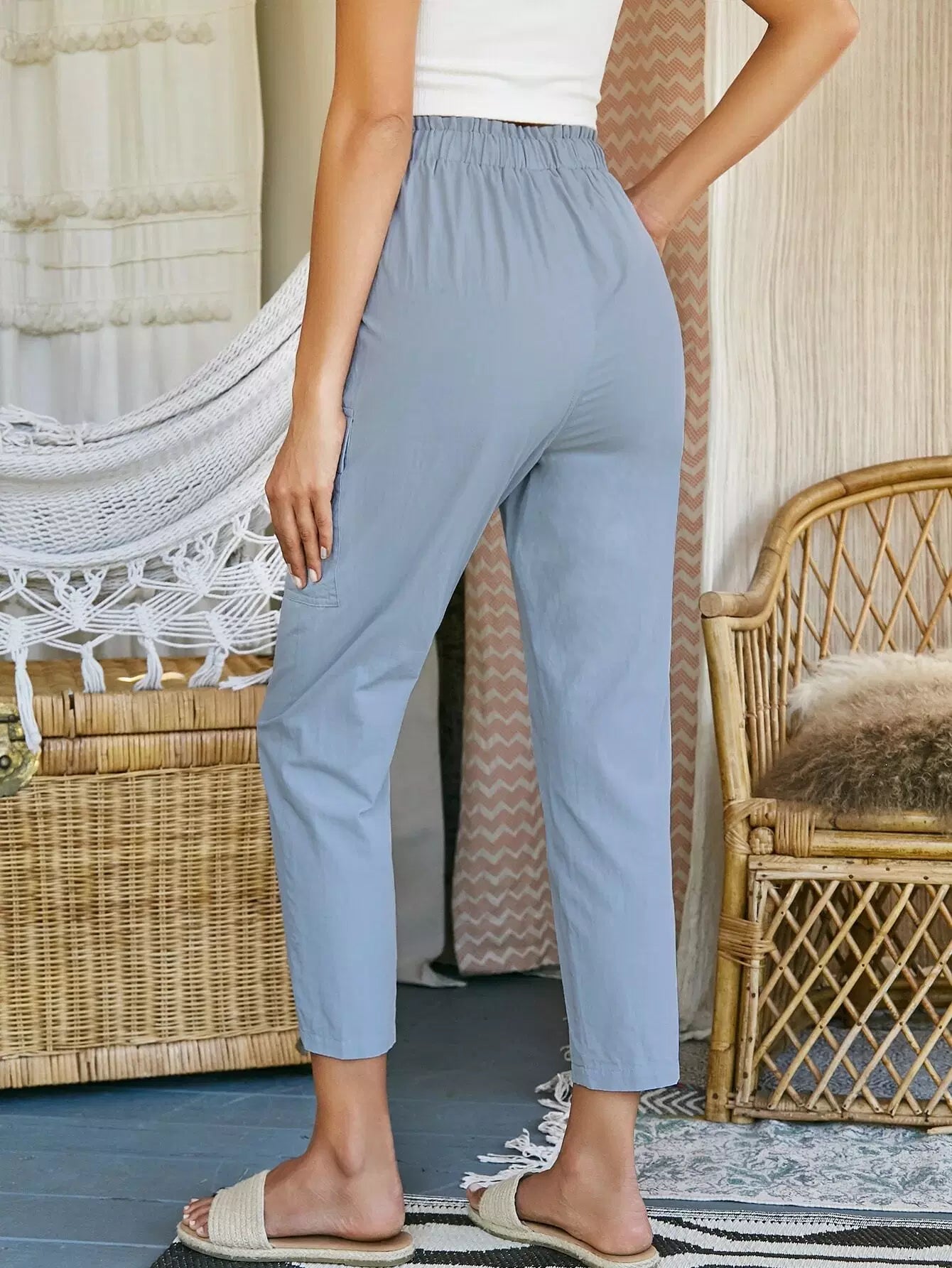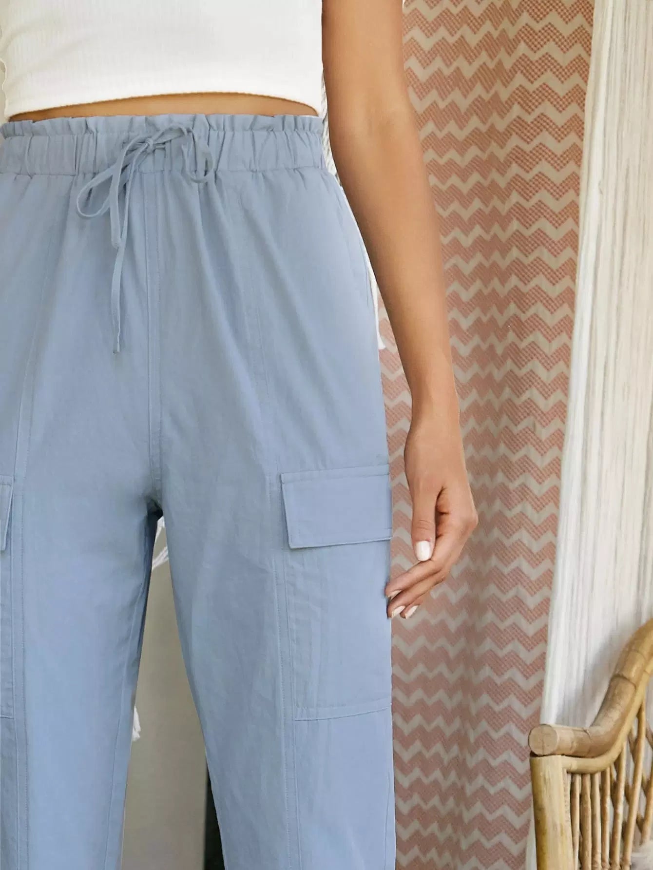 بنطلون مرقع بجيب مرقع بكيس ورقي على الخصر