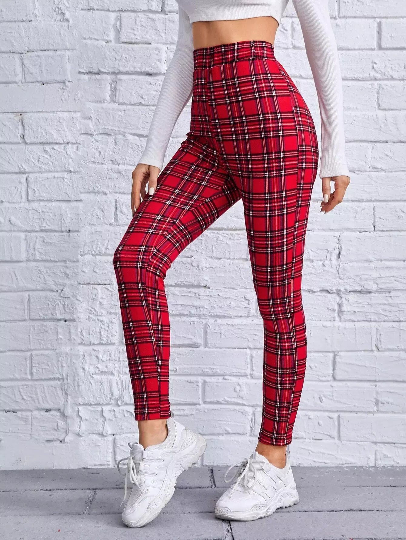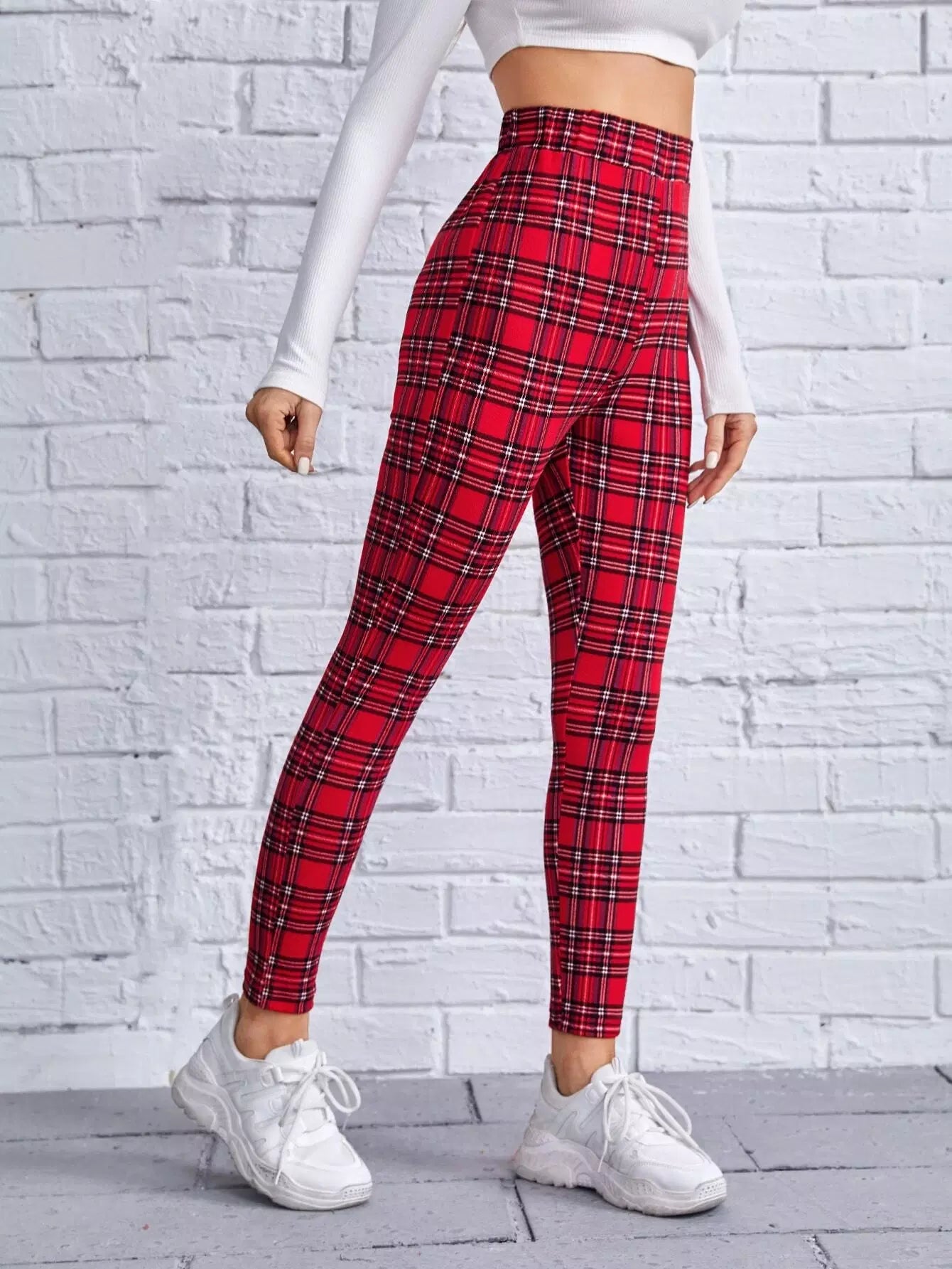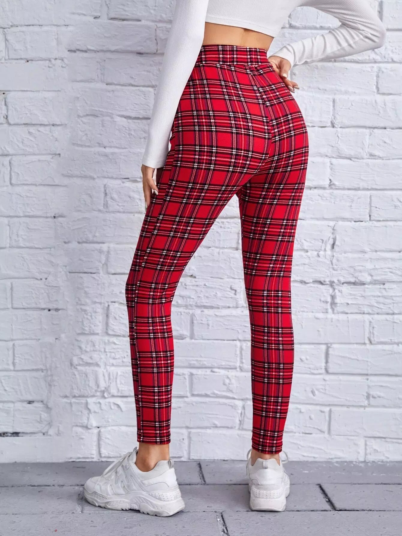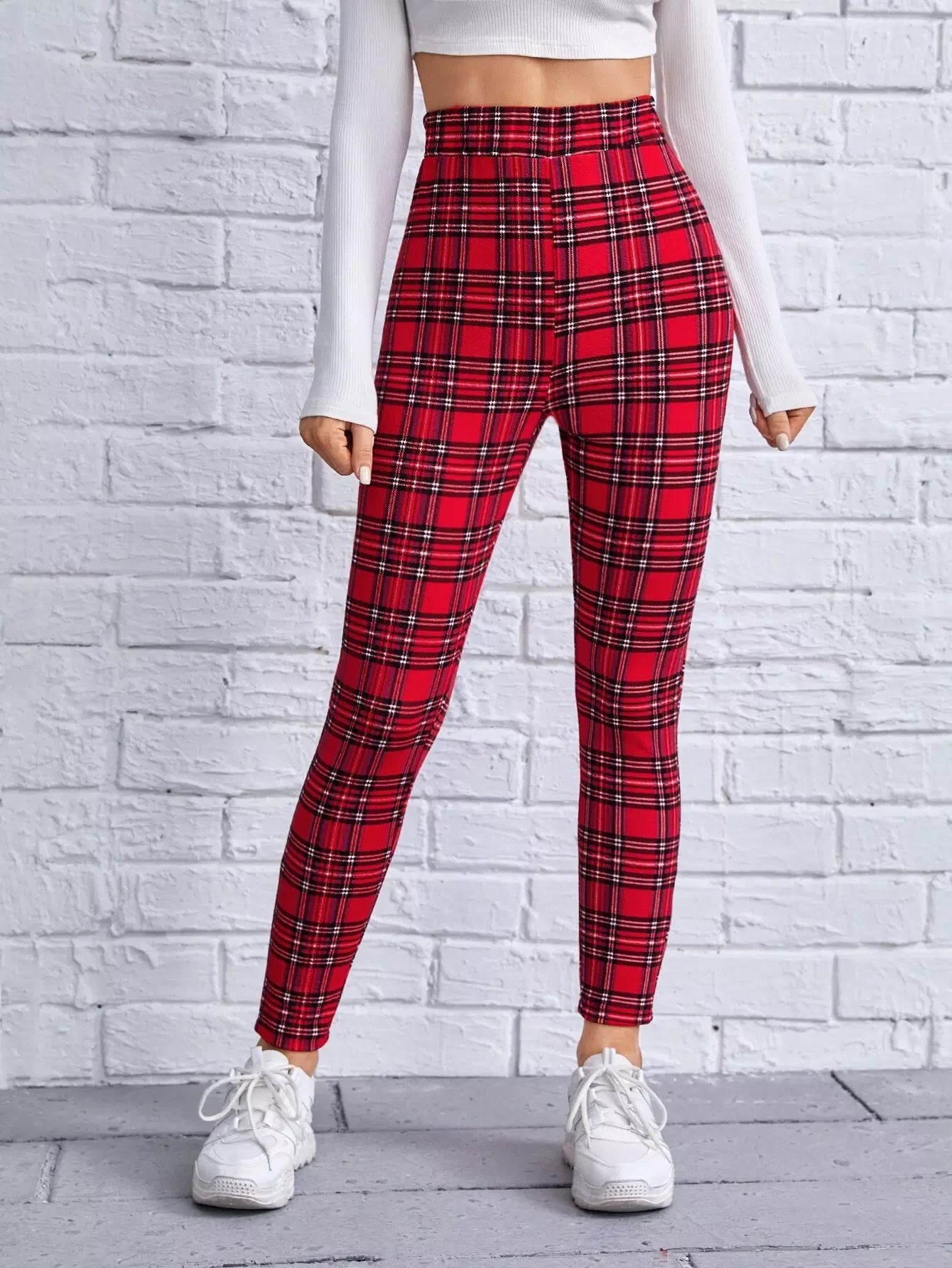 بنطلون ضيق بخصر مطاطي منقوش ومرن