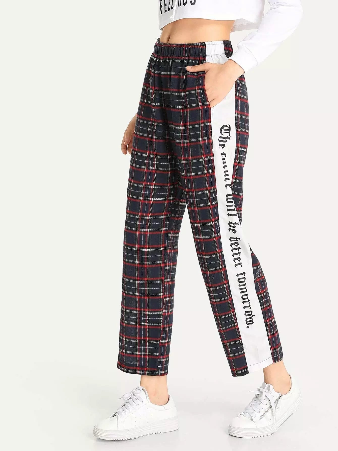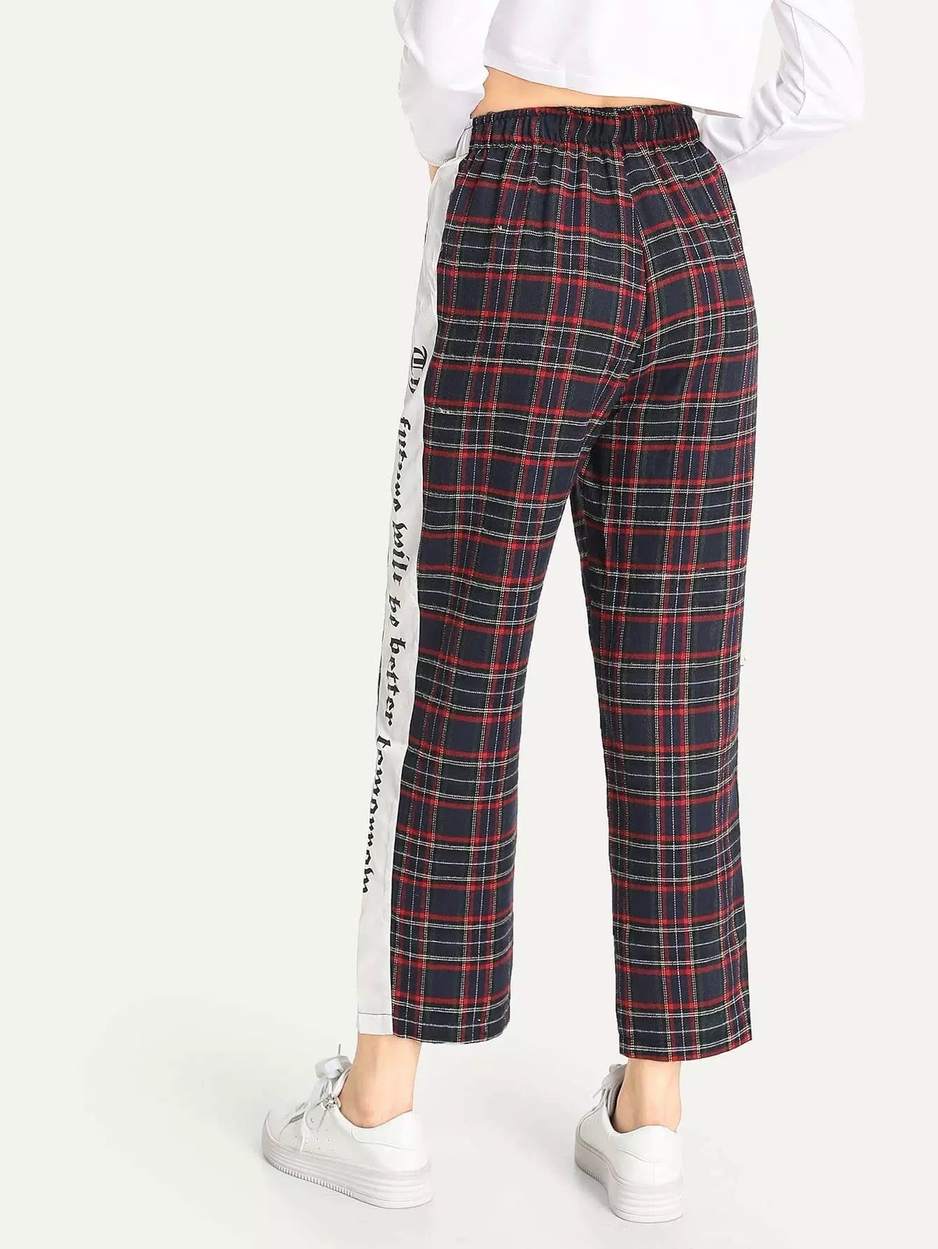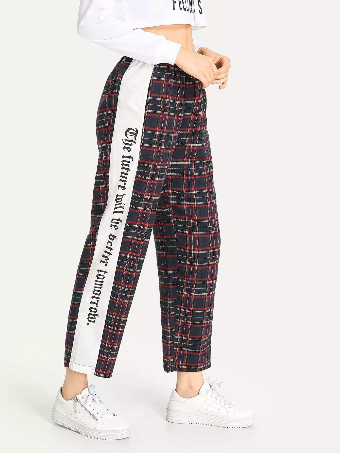 بنطلون منقوش بطبعة حروف منقوشة على الجانب