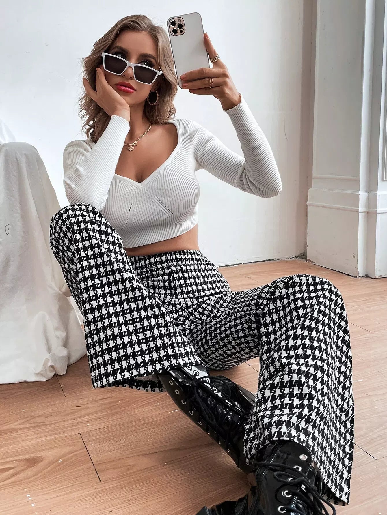 بنطلون بطبعة منقوشة بنطلون واسع الساقين