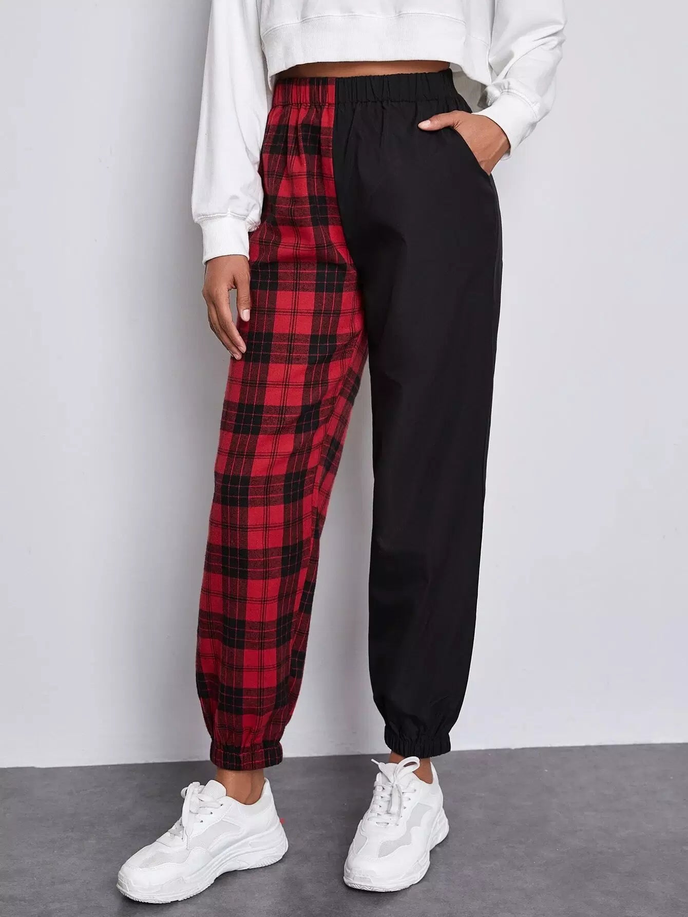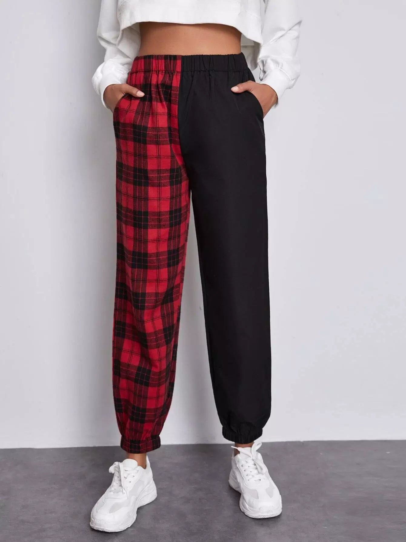 النساء - بنطال رياضي منقوش بخصر مطاطي