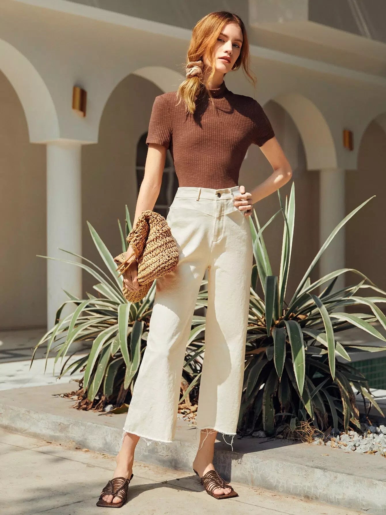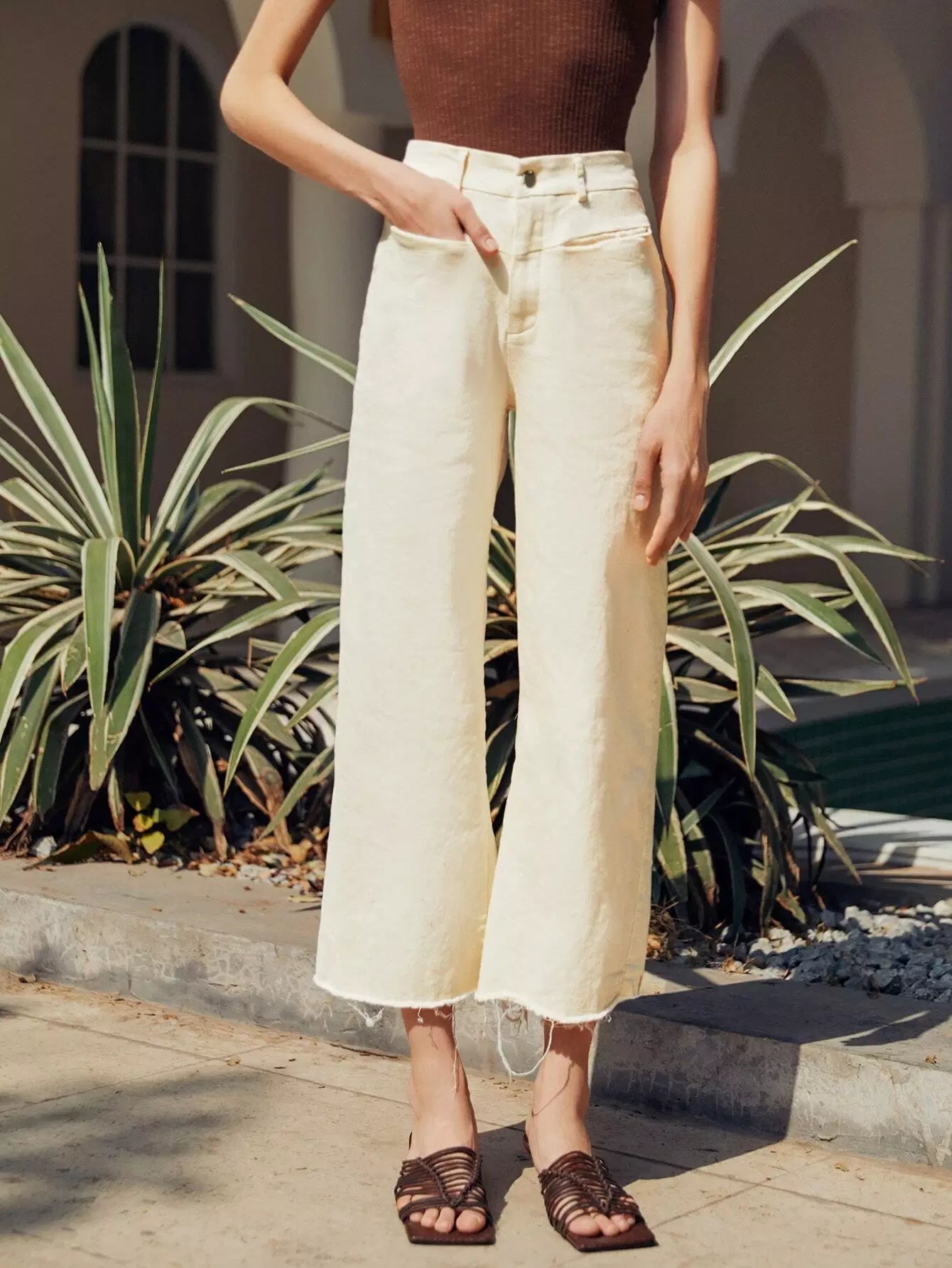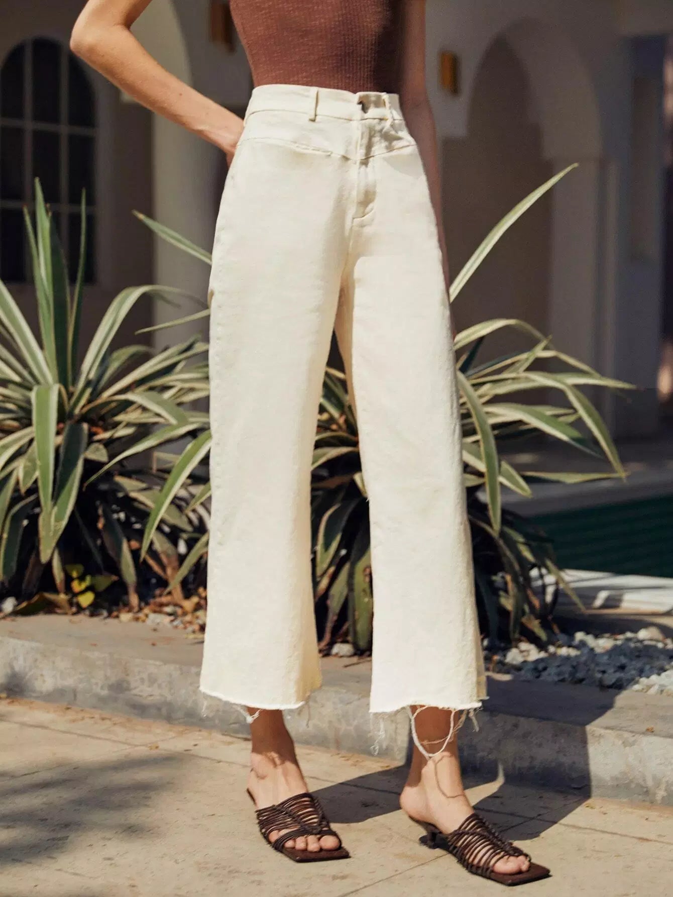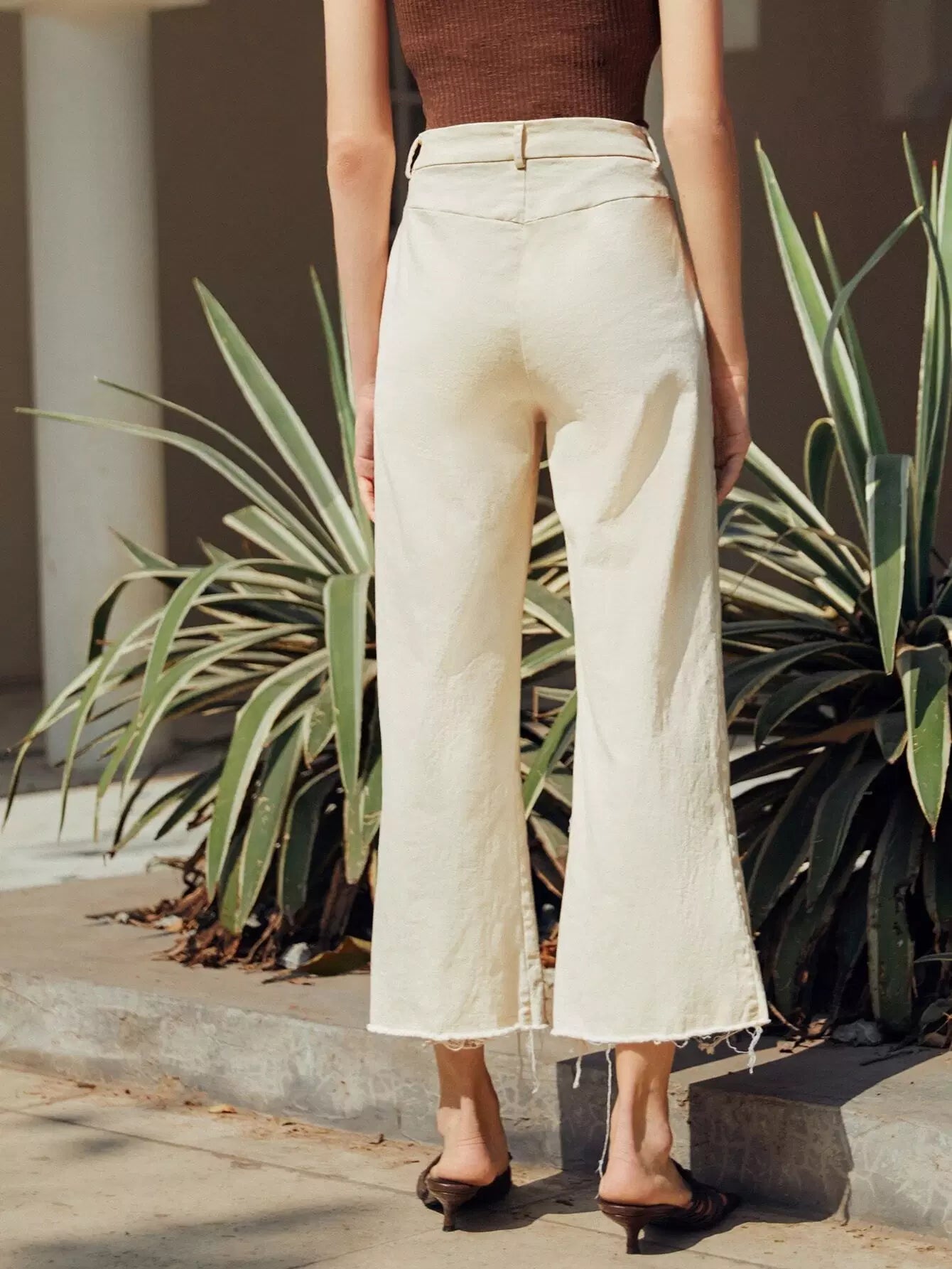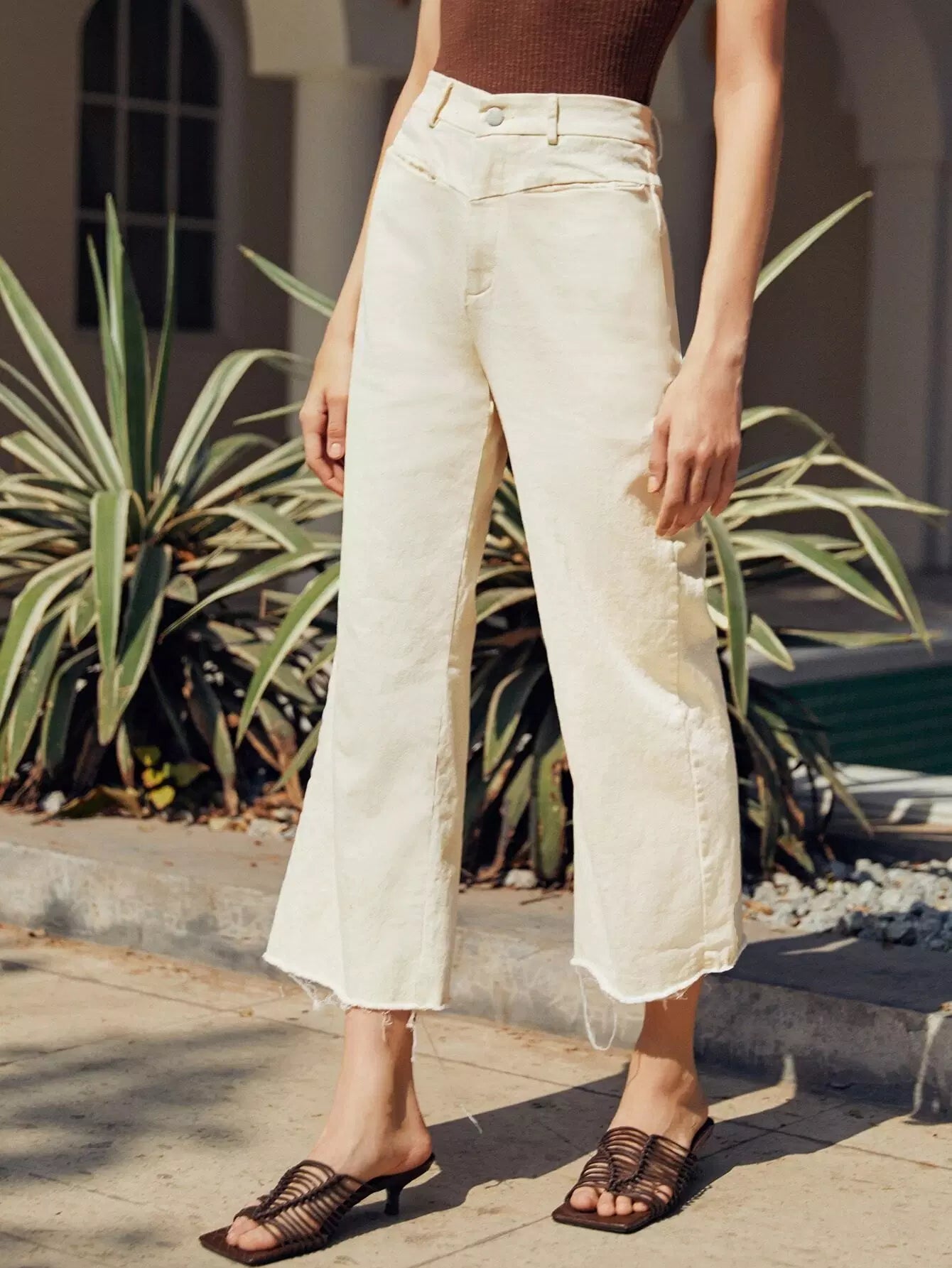 بنطلون بحاشية خفيف بحزام سحاب بحافة خام