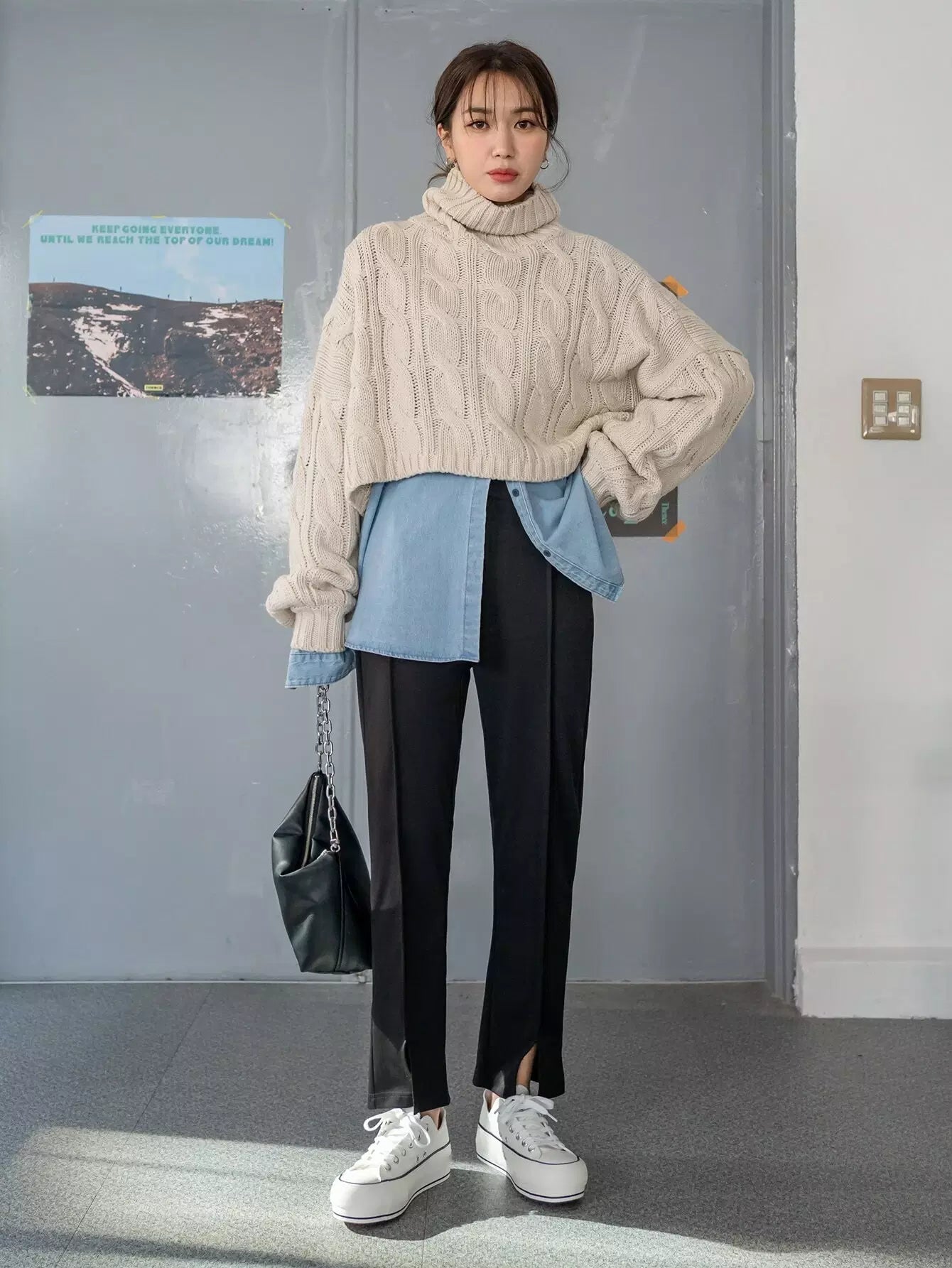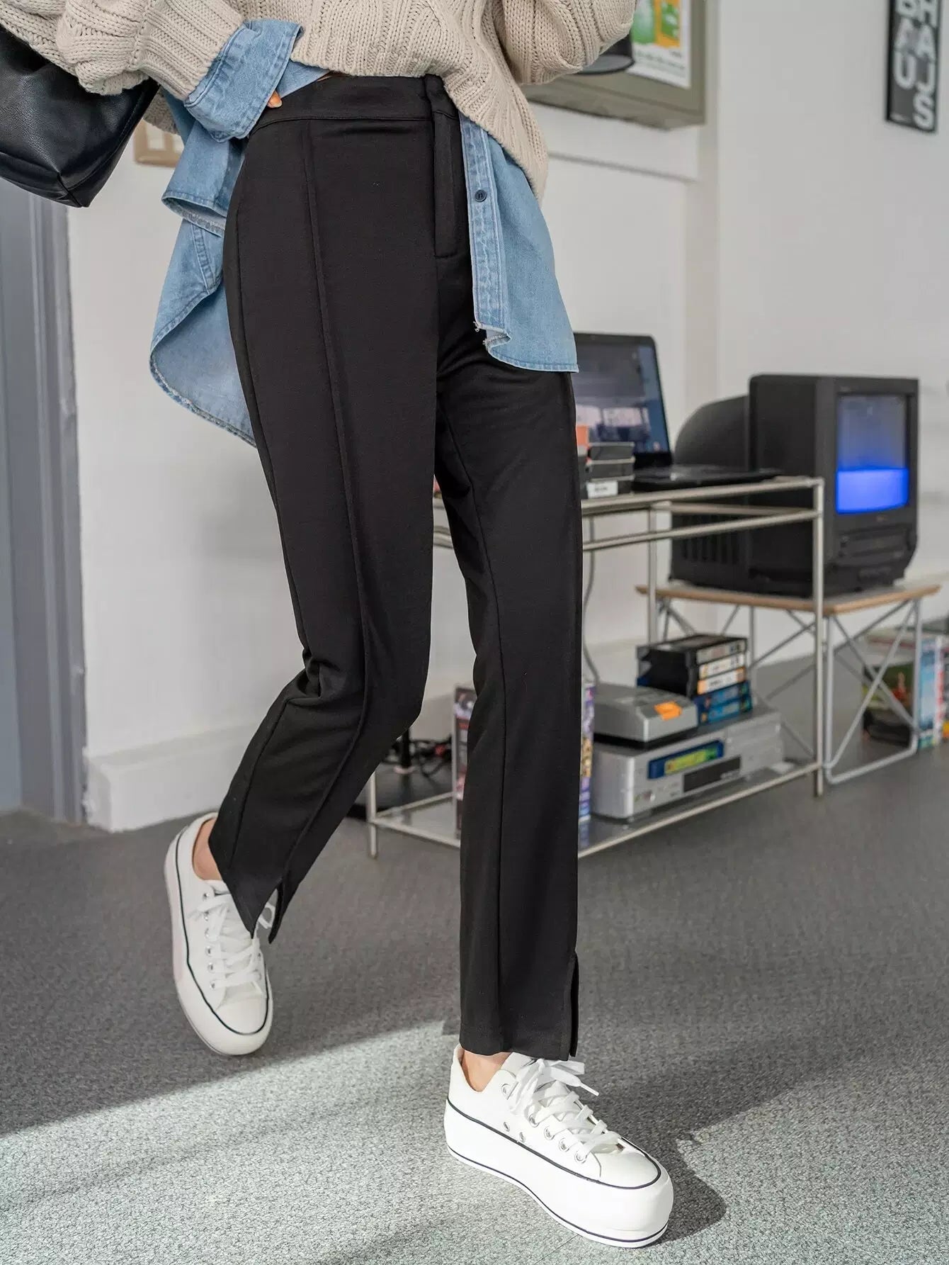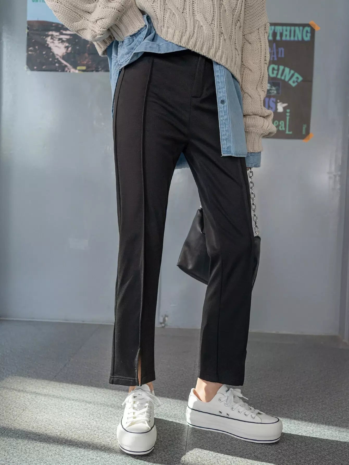بنطلون بحاشية منقسمة بتفاصيل درزات