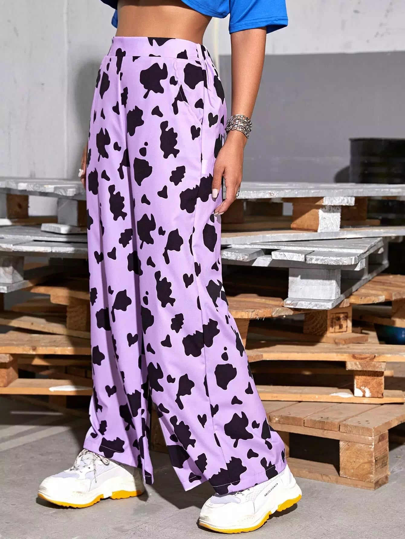 بنطلون مطبوع عليه طبعة بقرة بجيب مائل