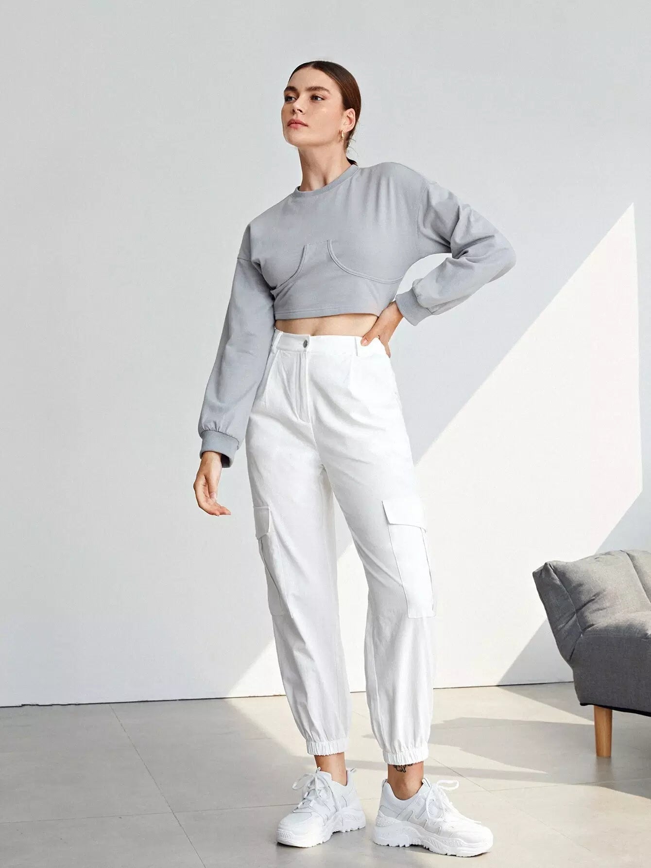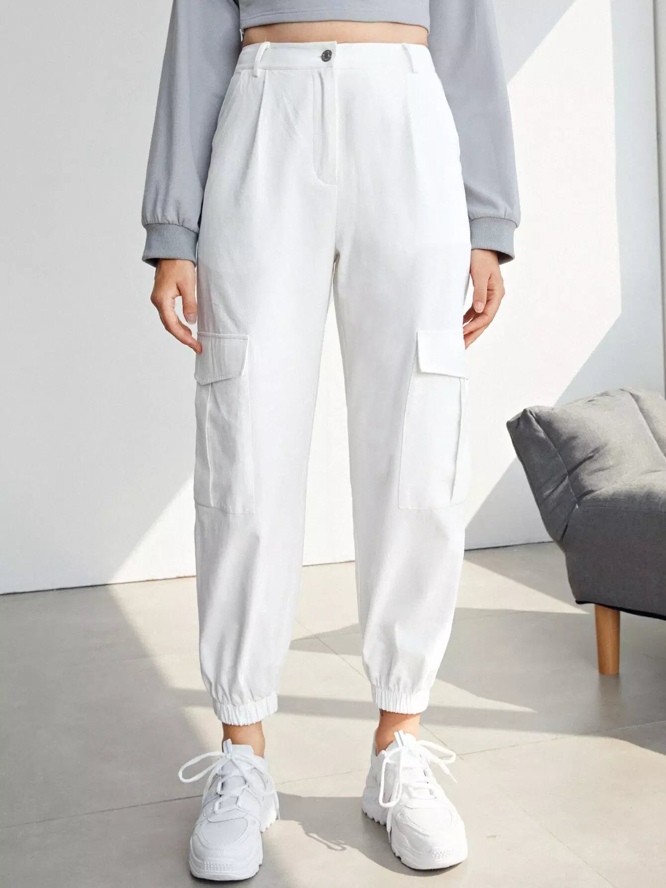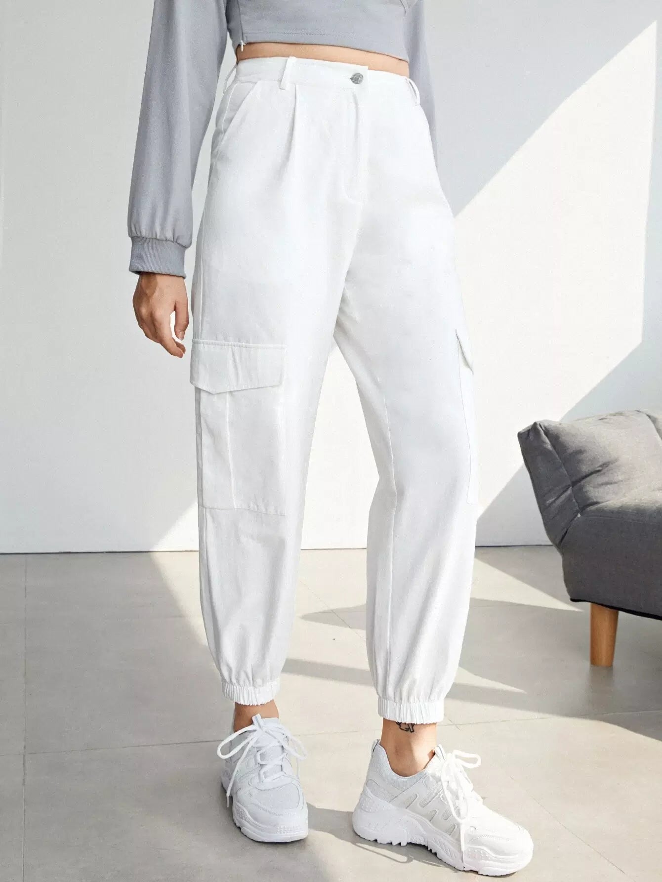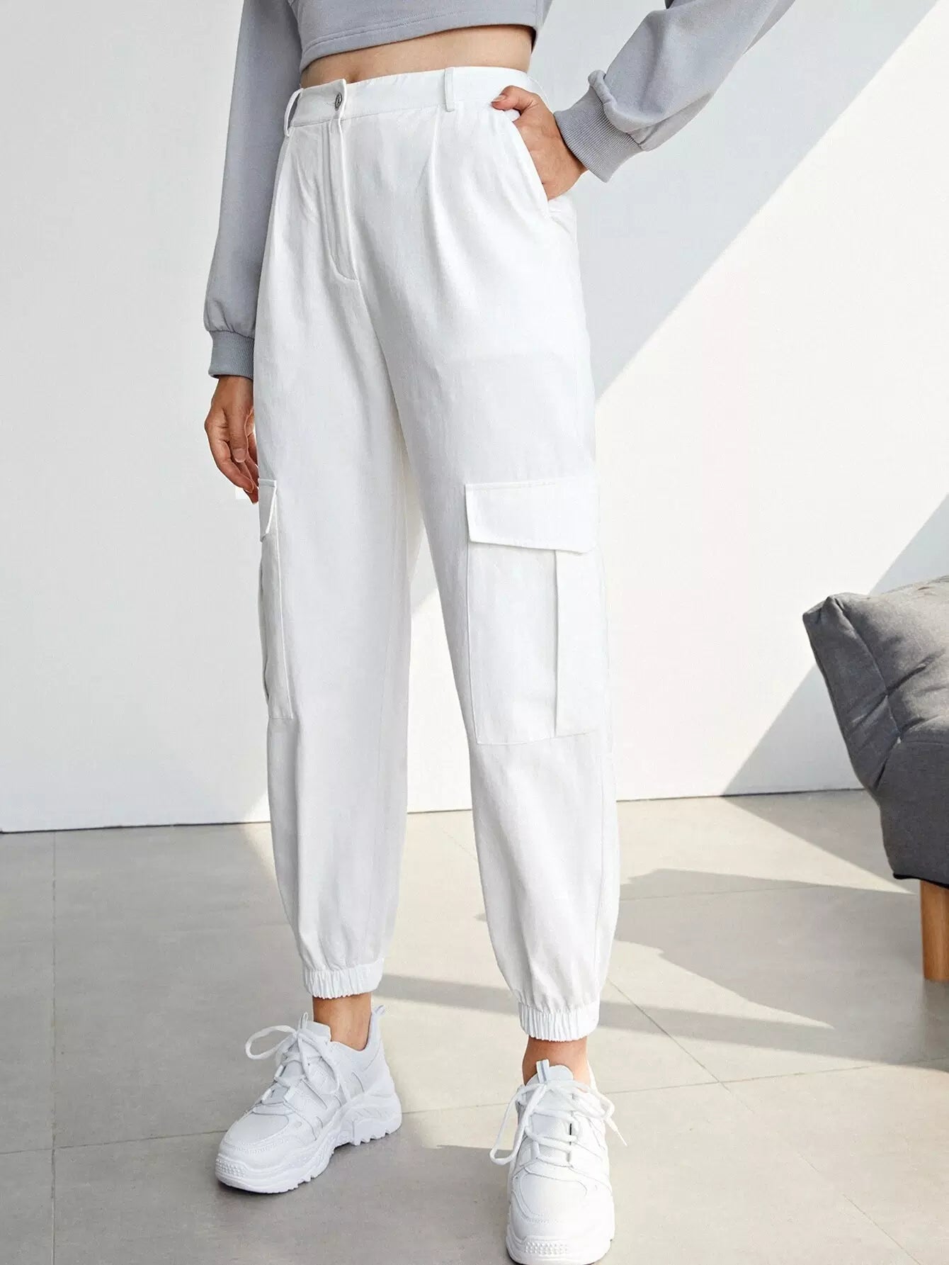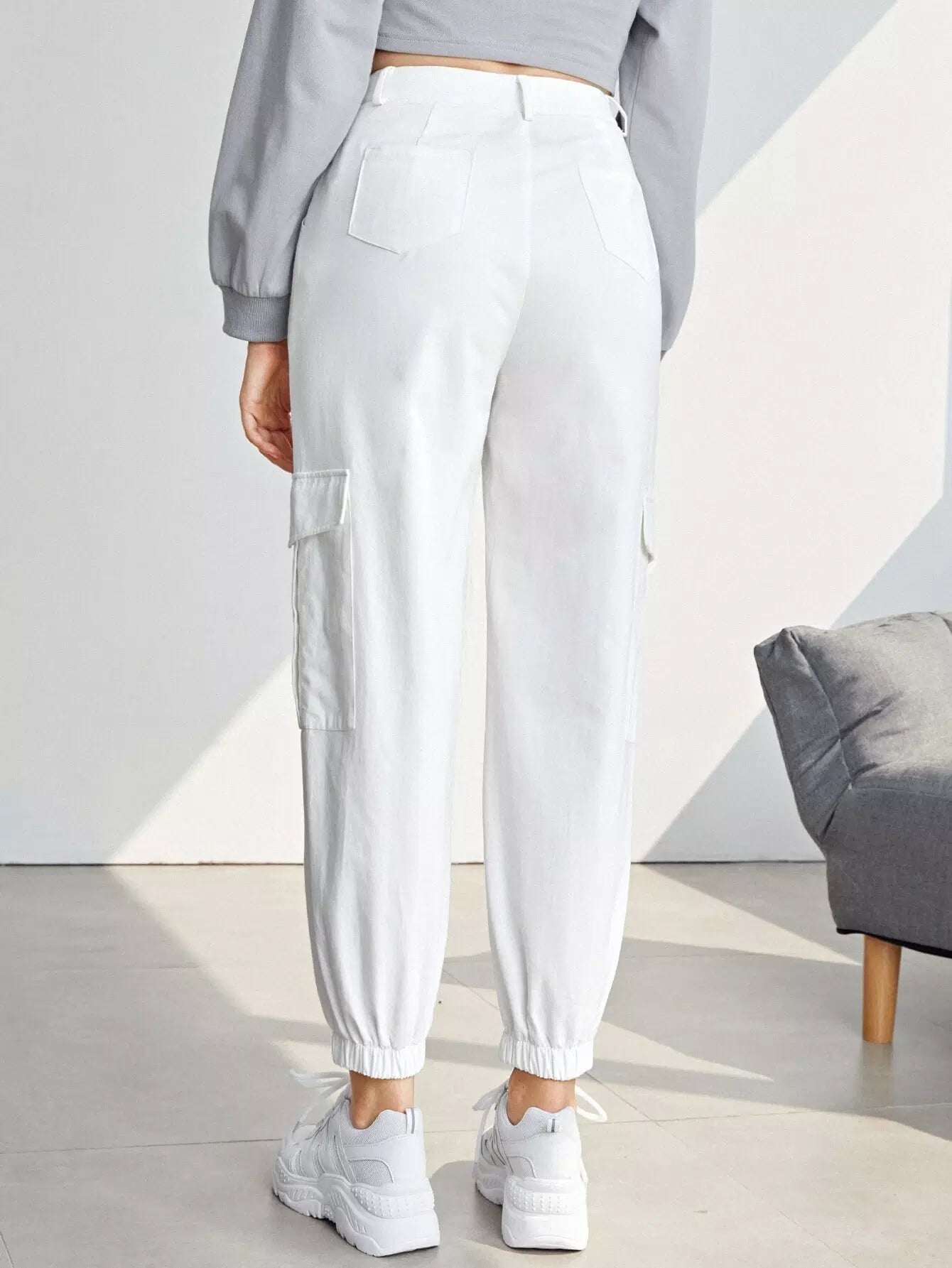 للنساء - بنطال كارجو بجيب مائل وجيب قلاب