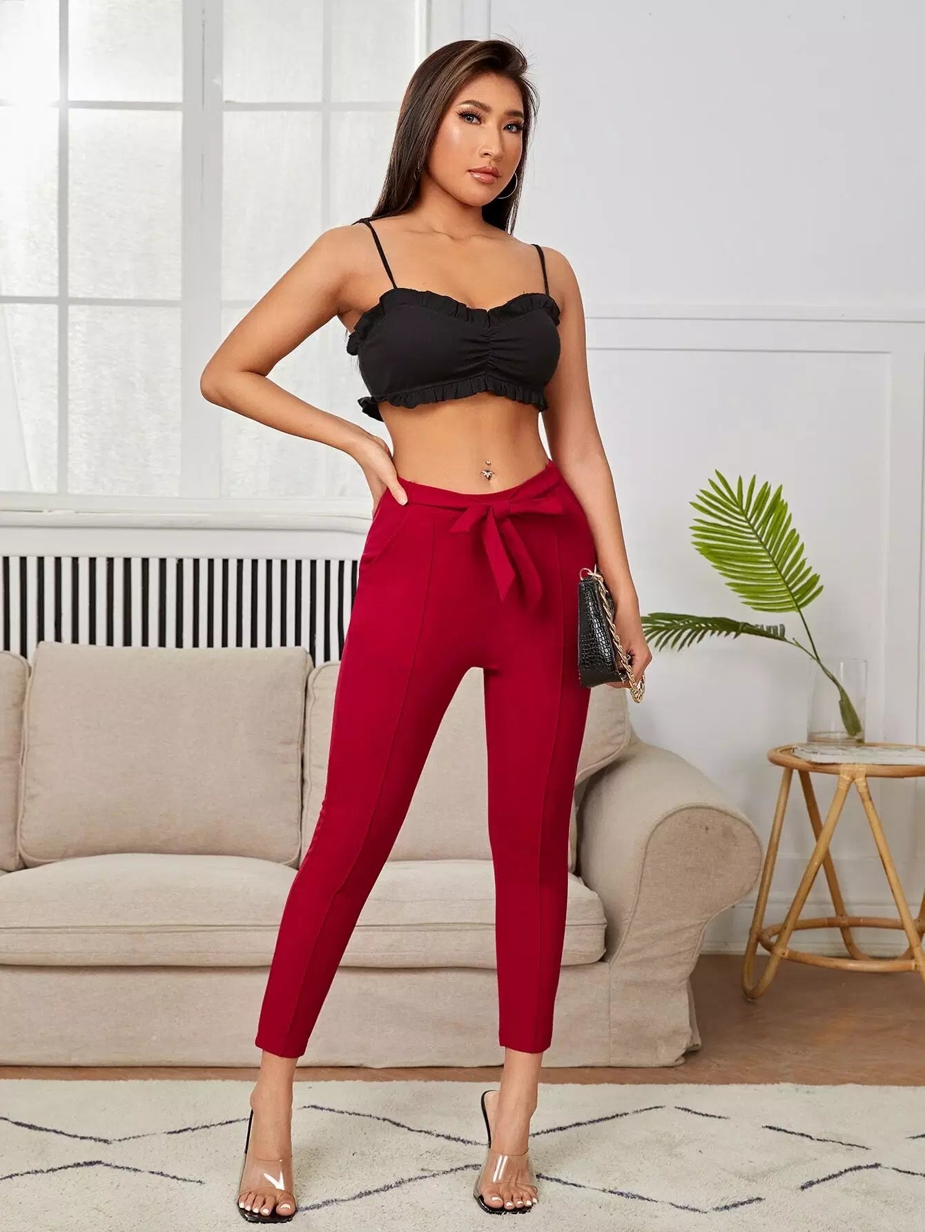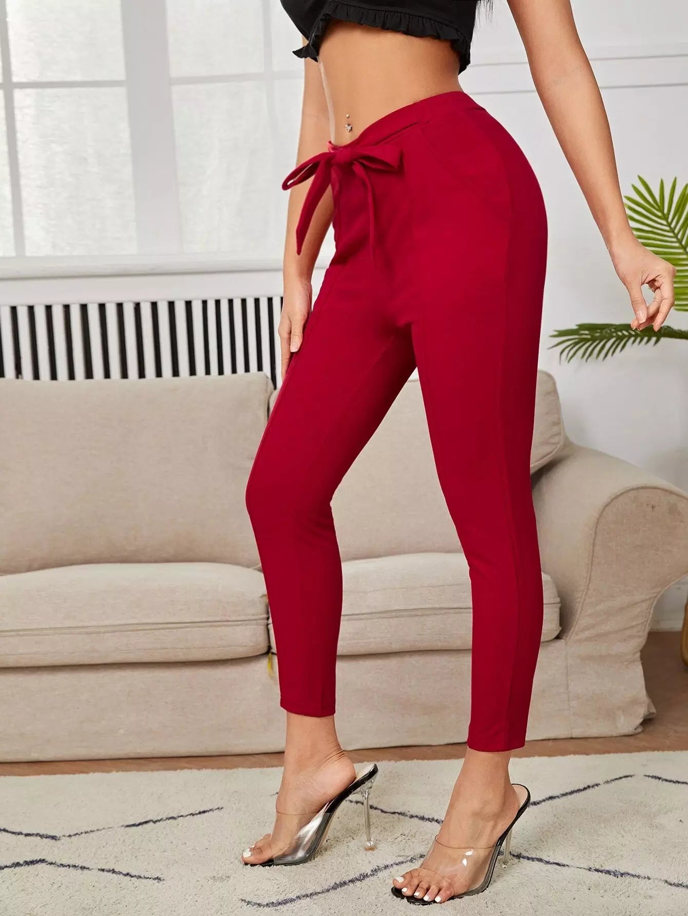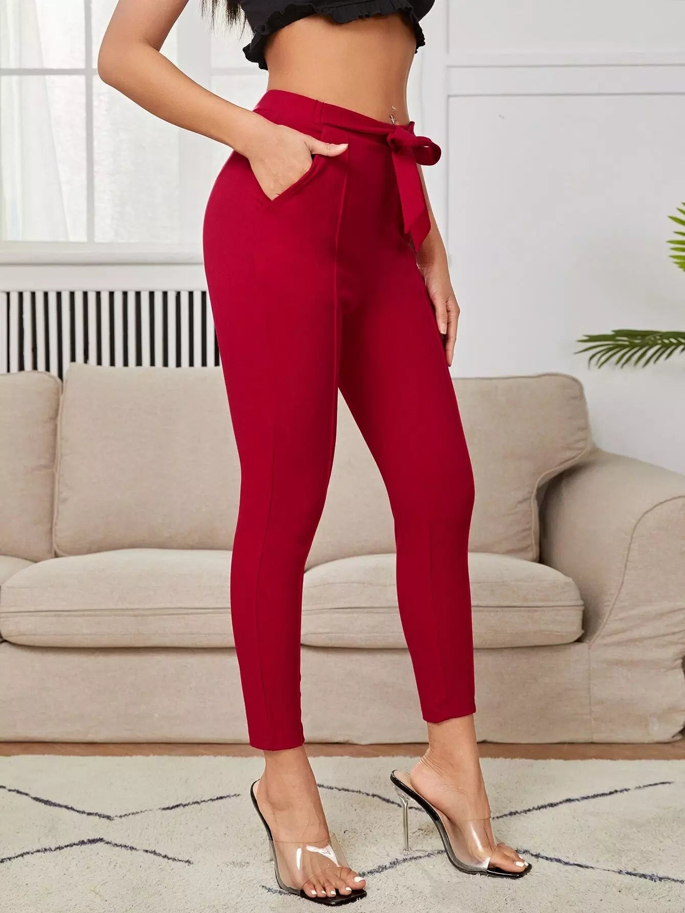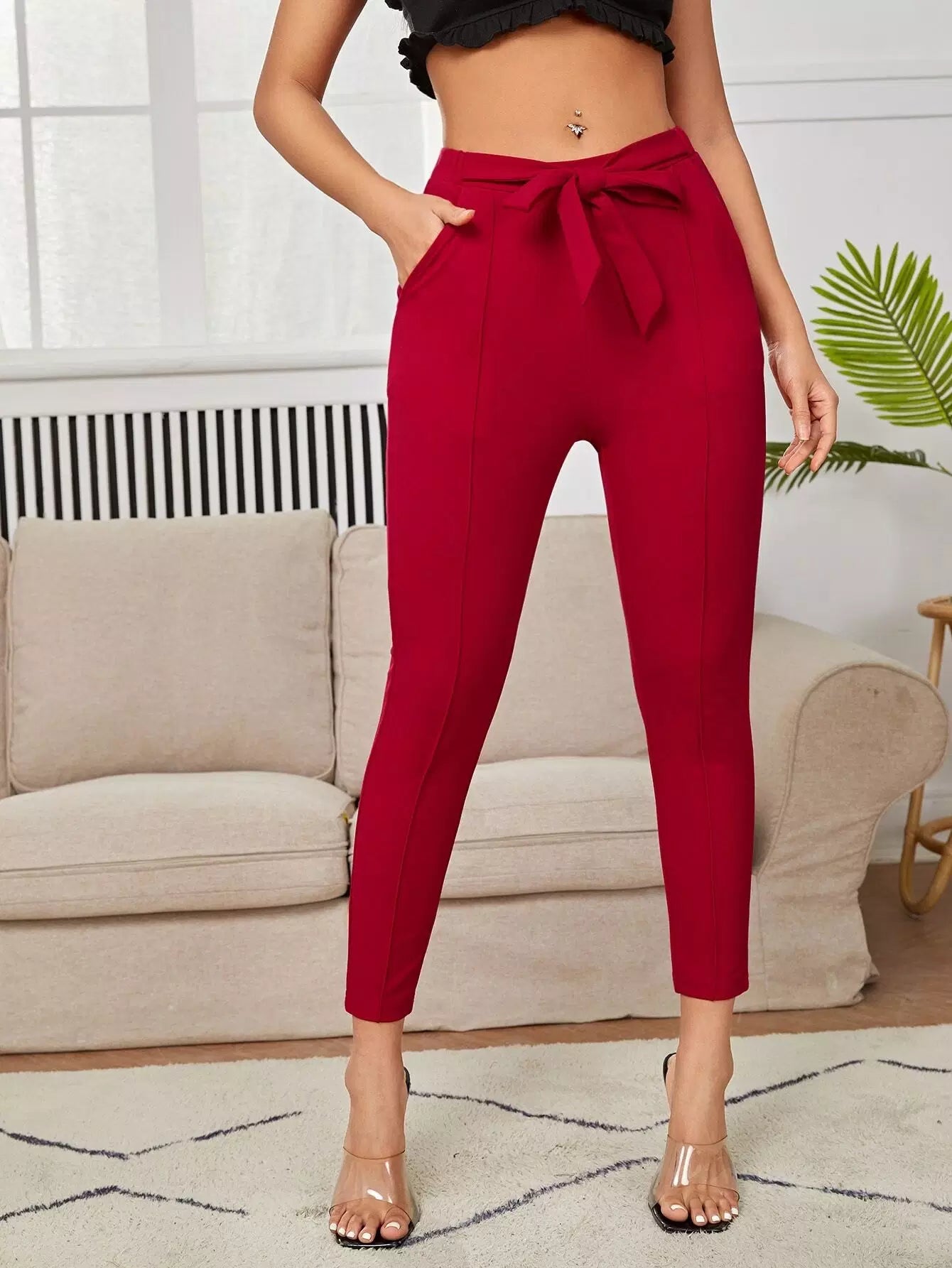 سروال جزرة سادة بدون حزام
