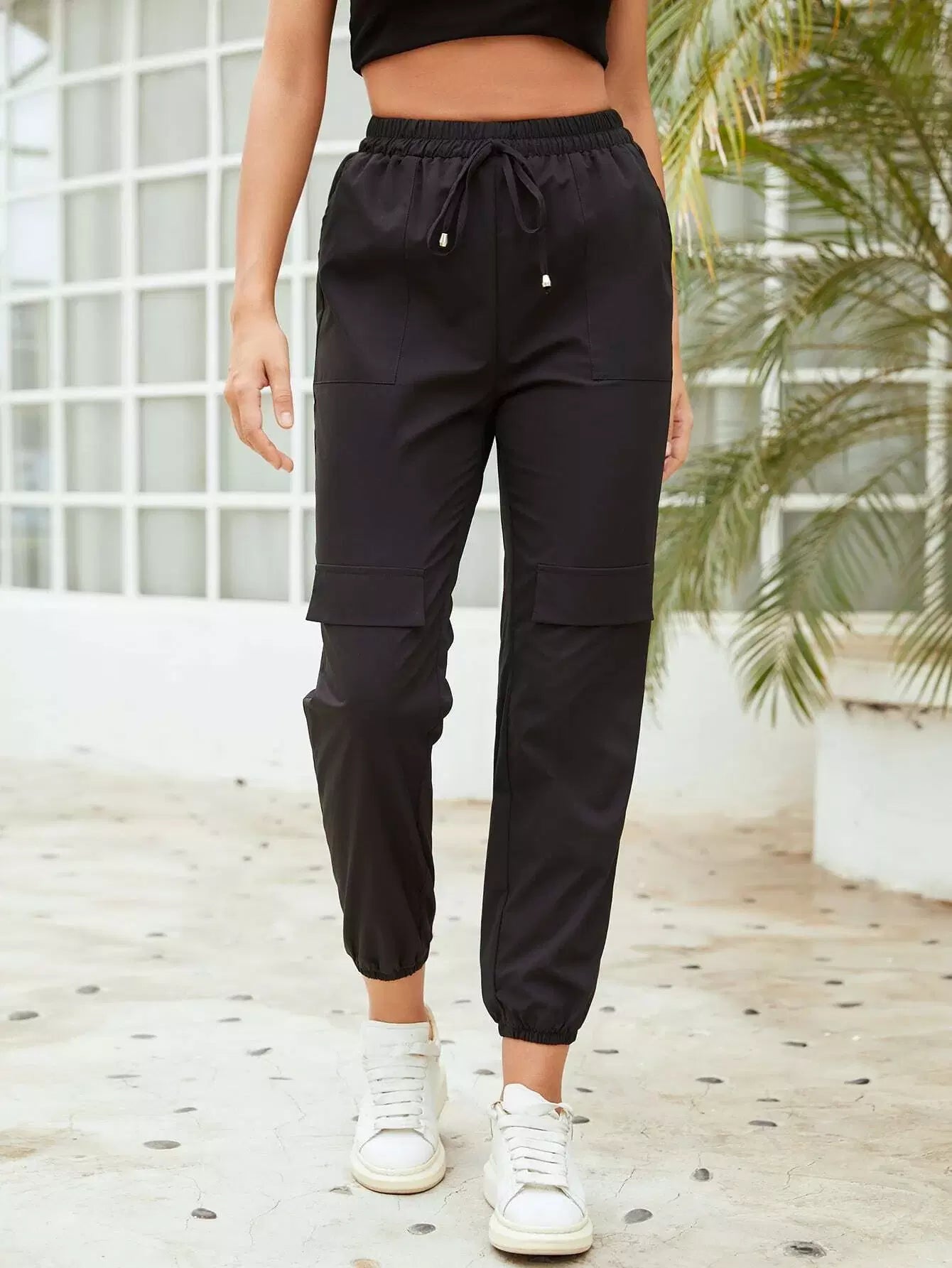 بنطلون الجزرة ذو الخصر العالي مع عقدة صلبة