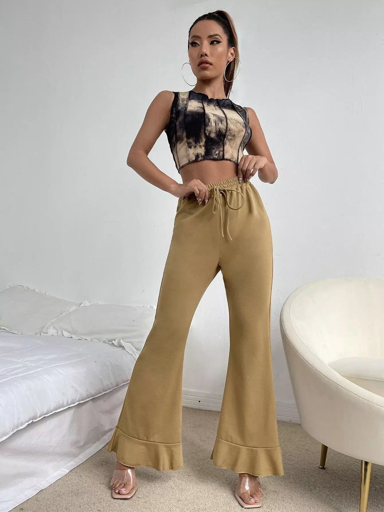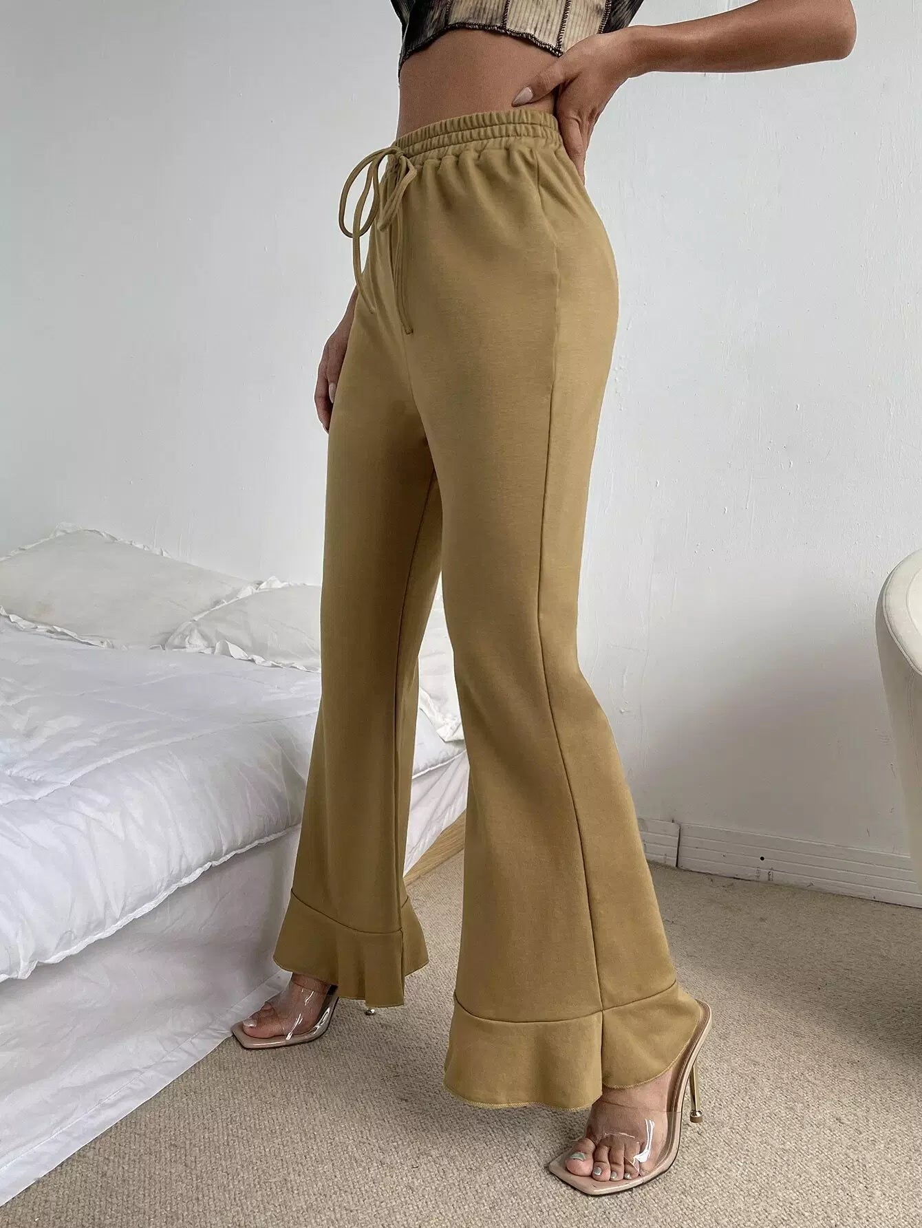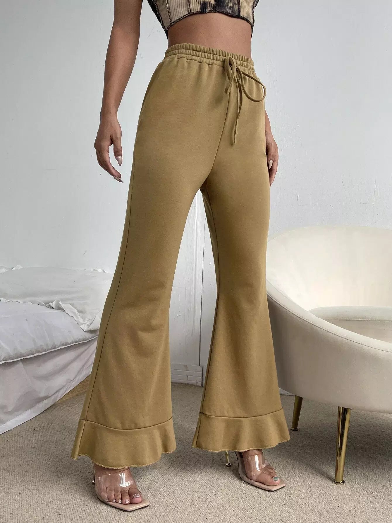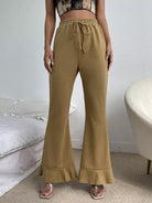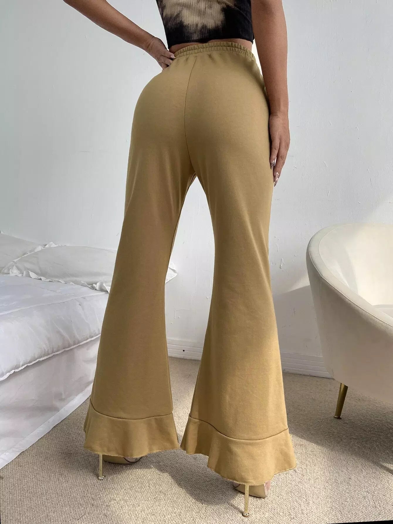 بنطلون بحواف مكشكشة سادة بحواف مكشكشة واسعة الساقين