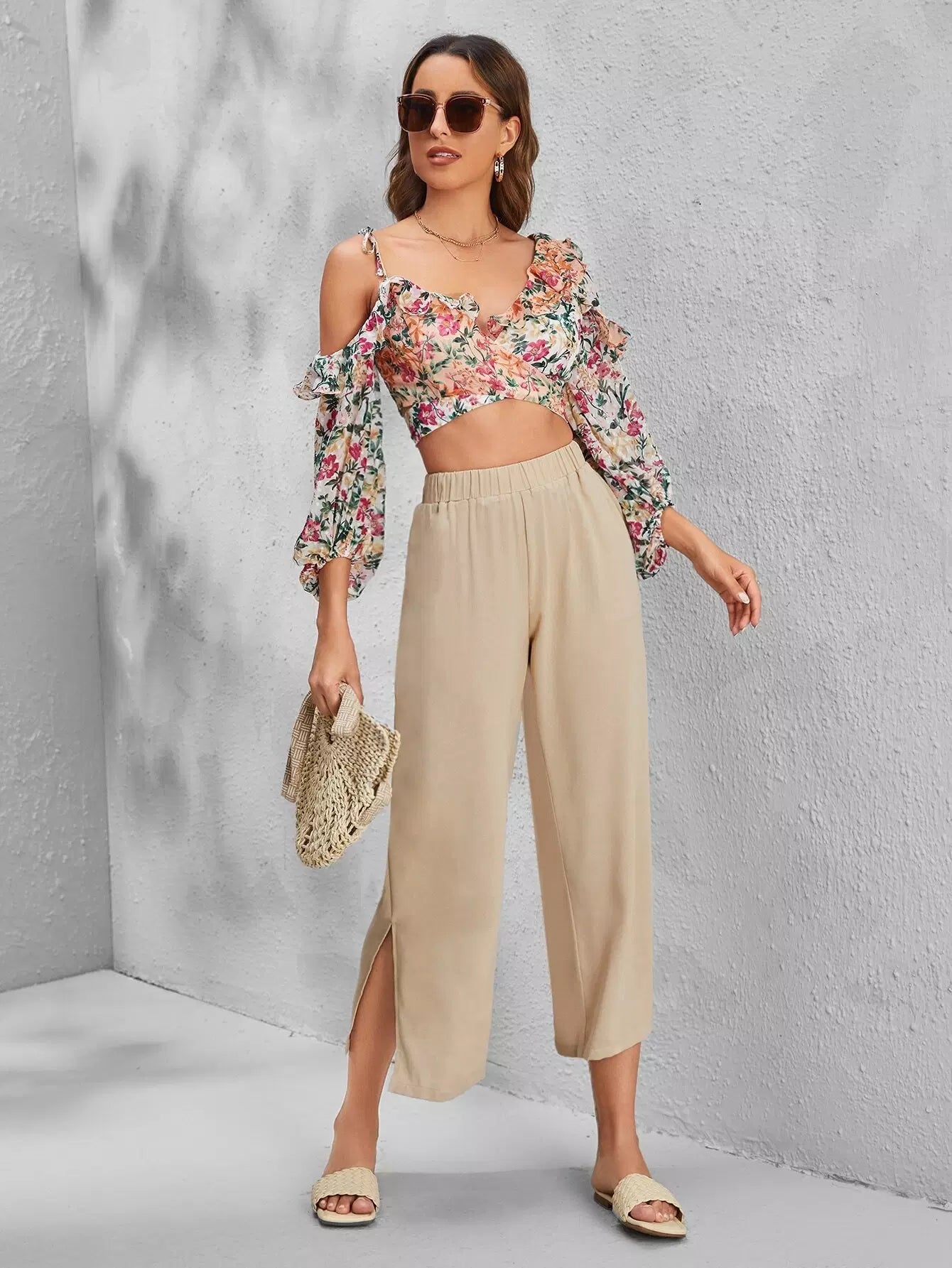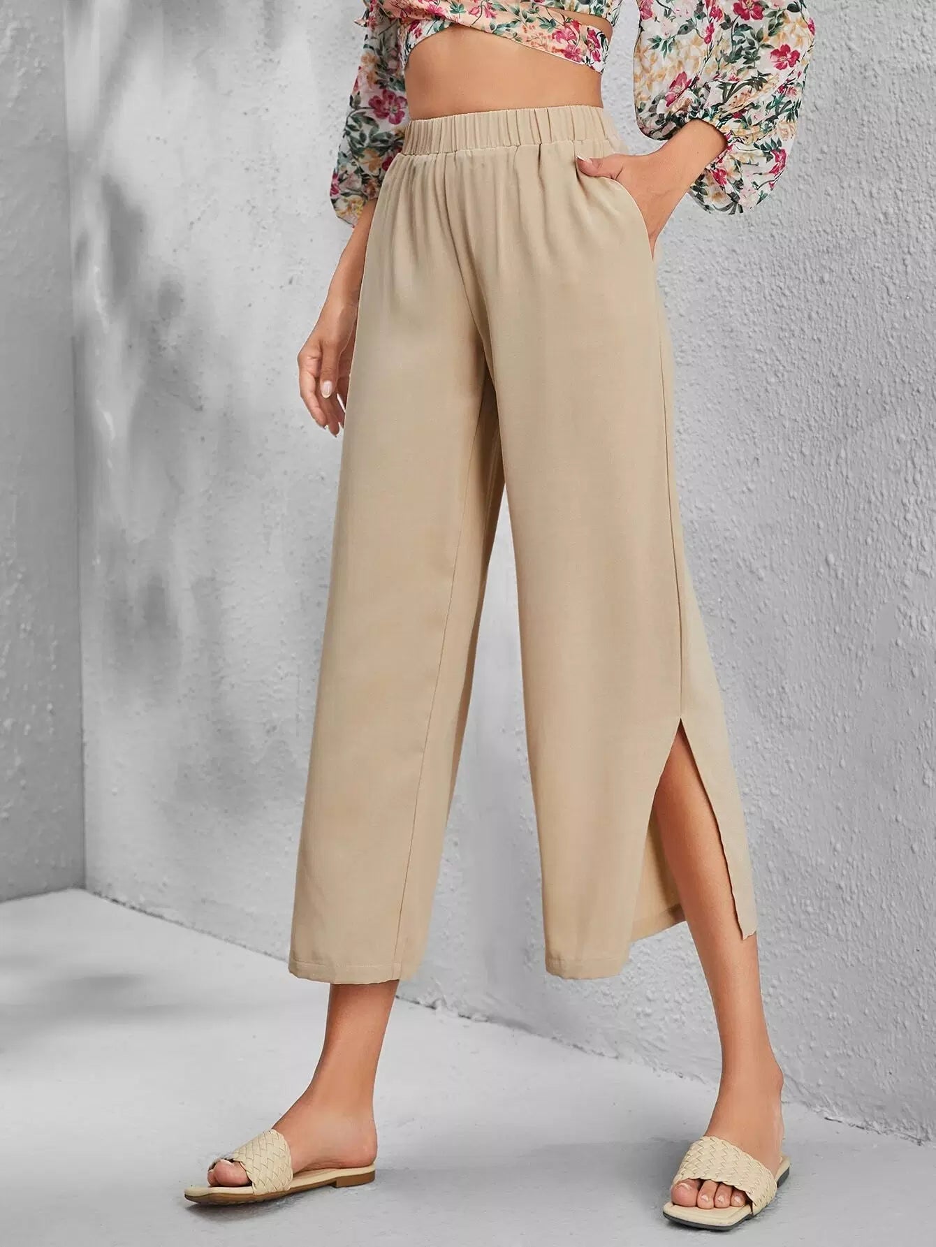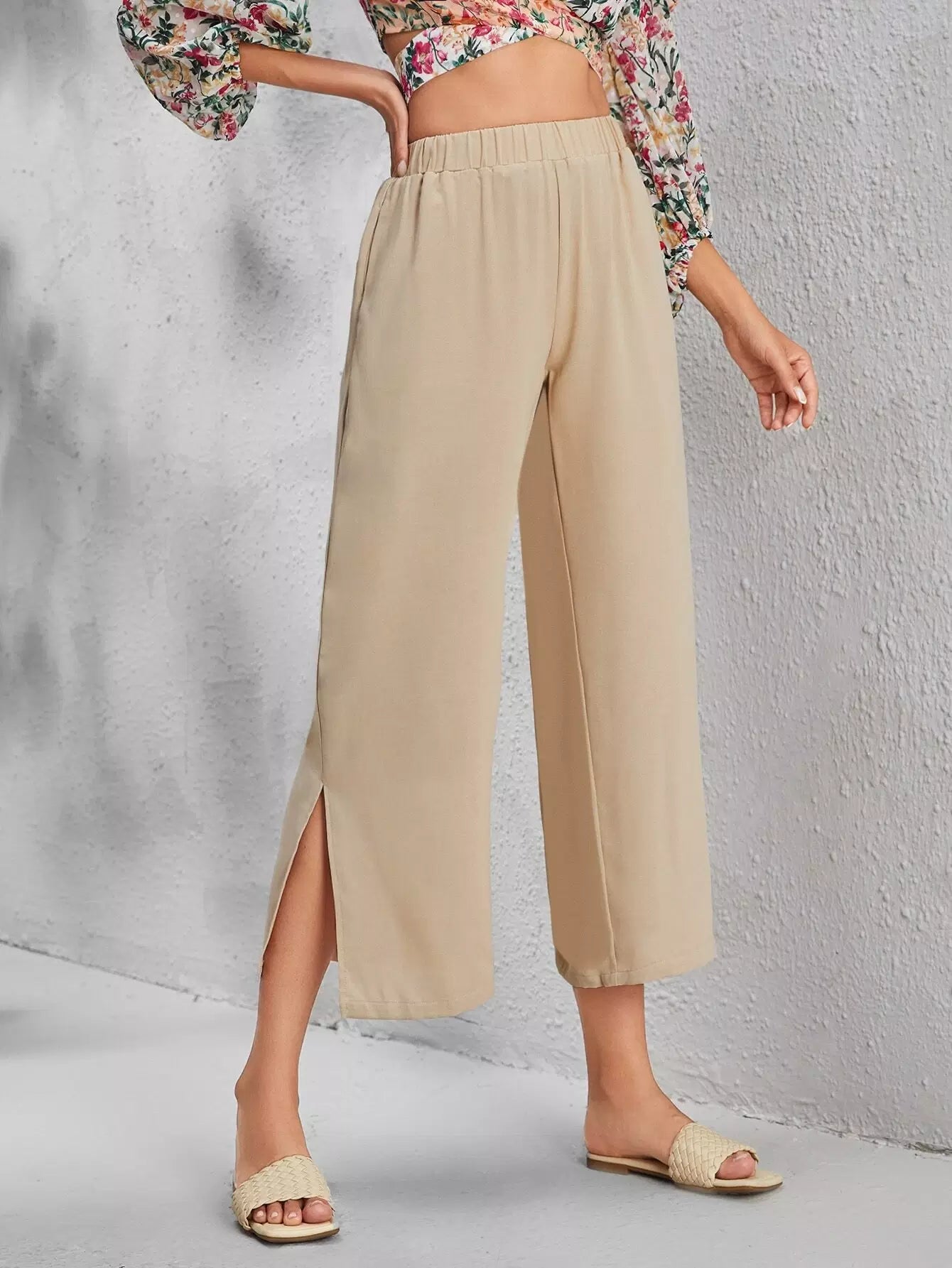 بنطال واسع الساق سادة