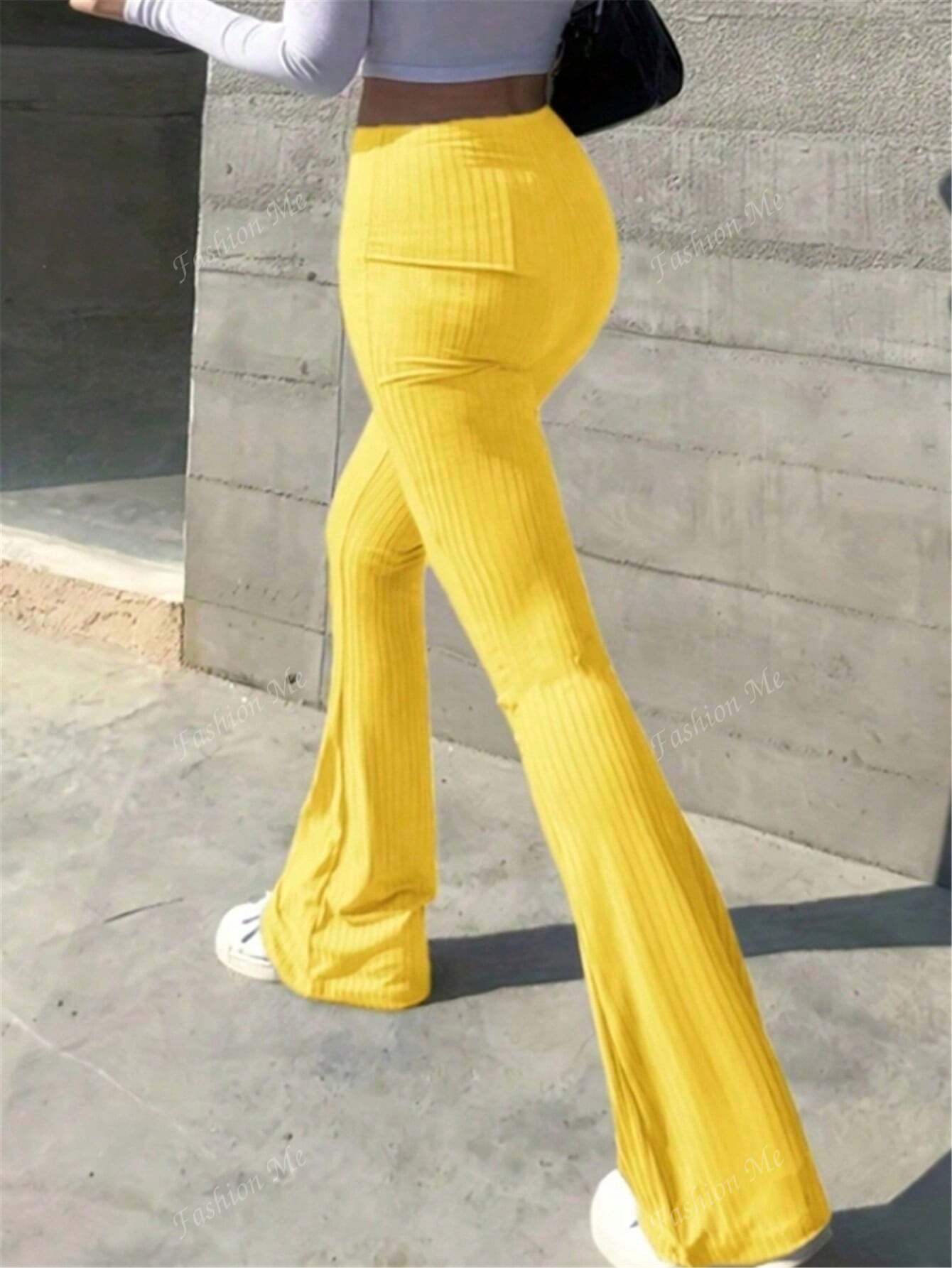 بنطال كاجوال مخطط عالي الخصر بقصة ضيقة وواسعة