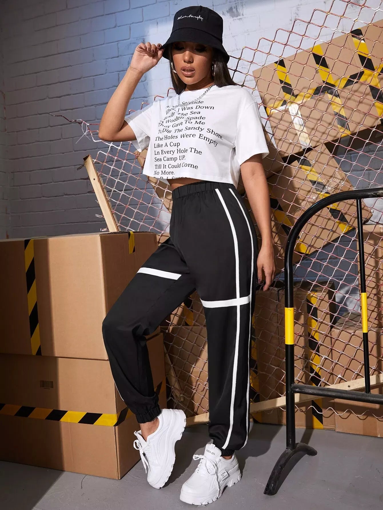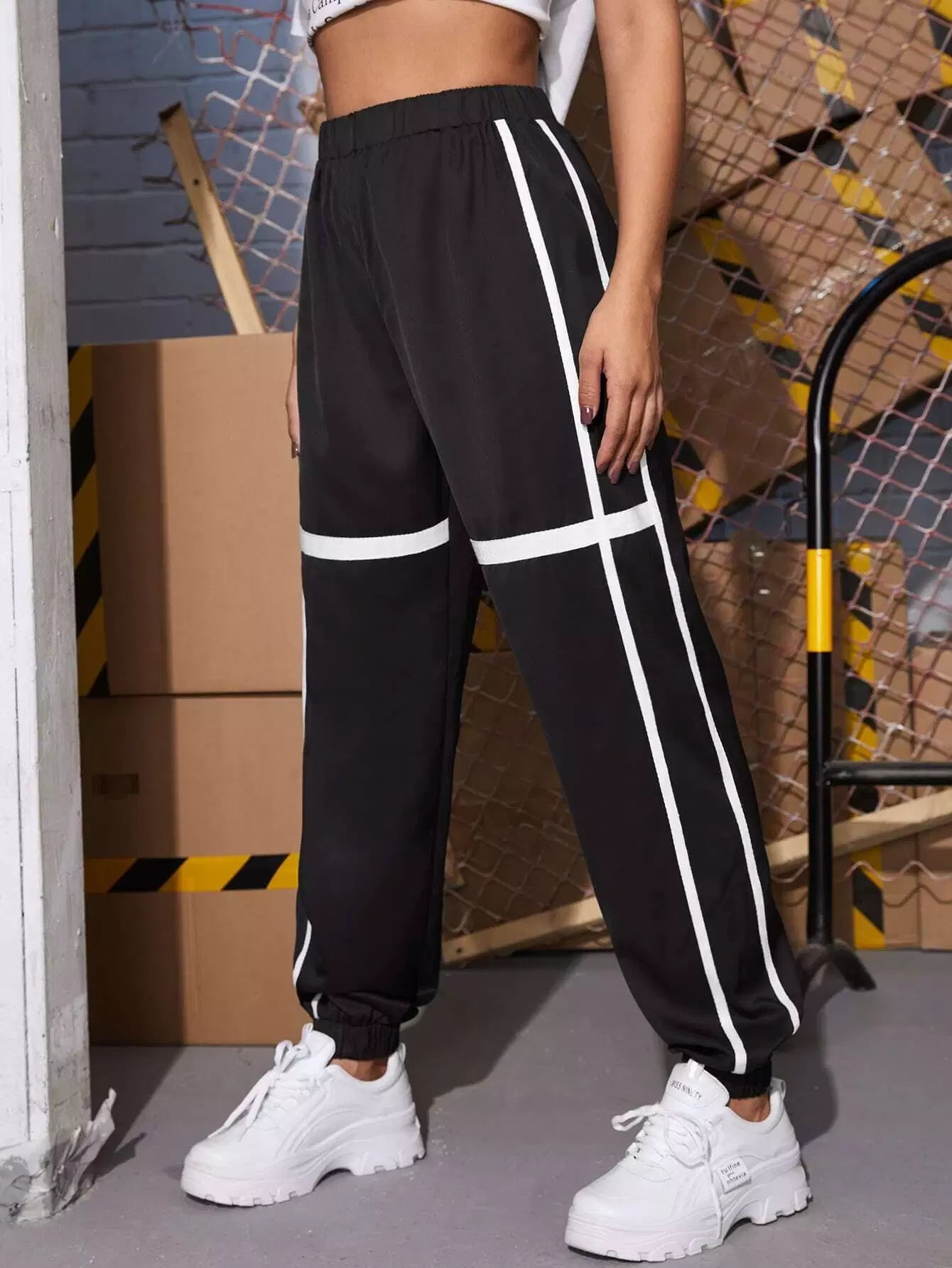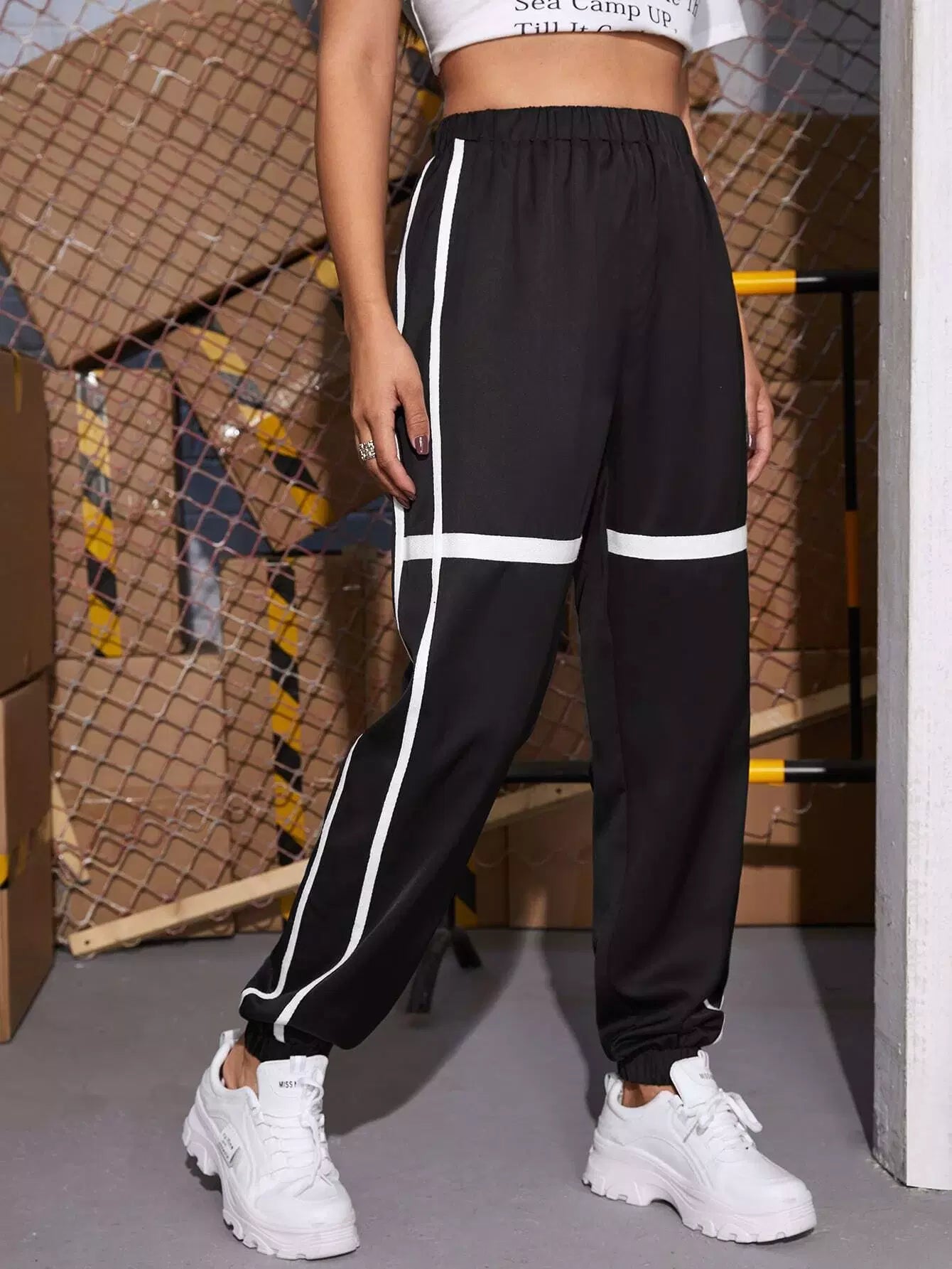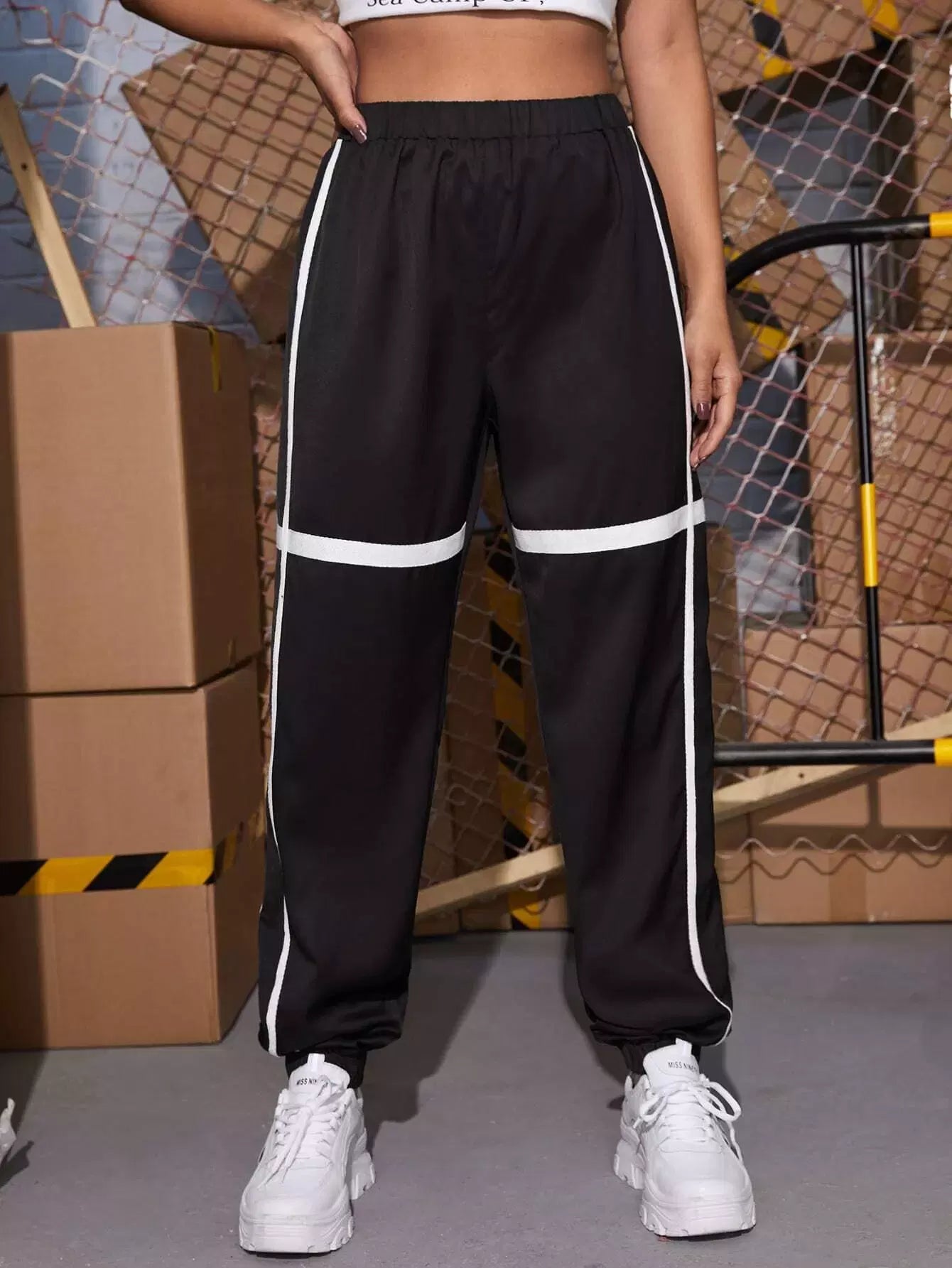 بنطلون رياضي بخصر مطاطي بشريط لاصق