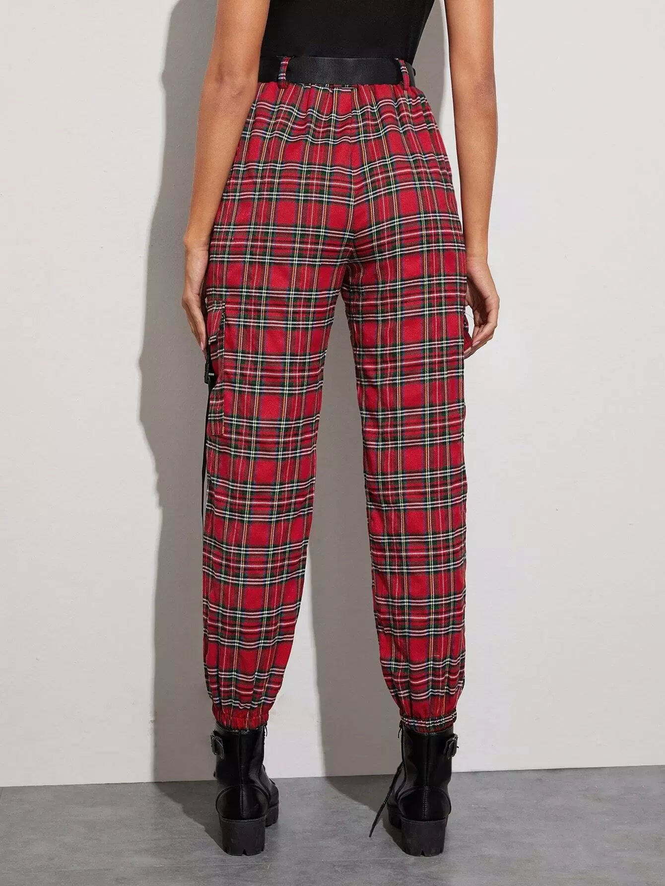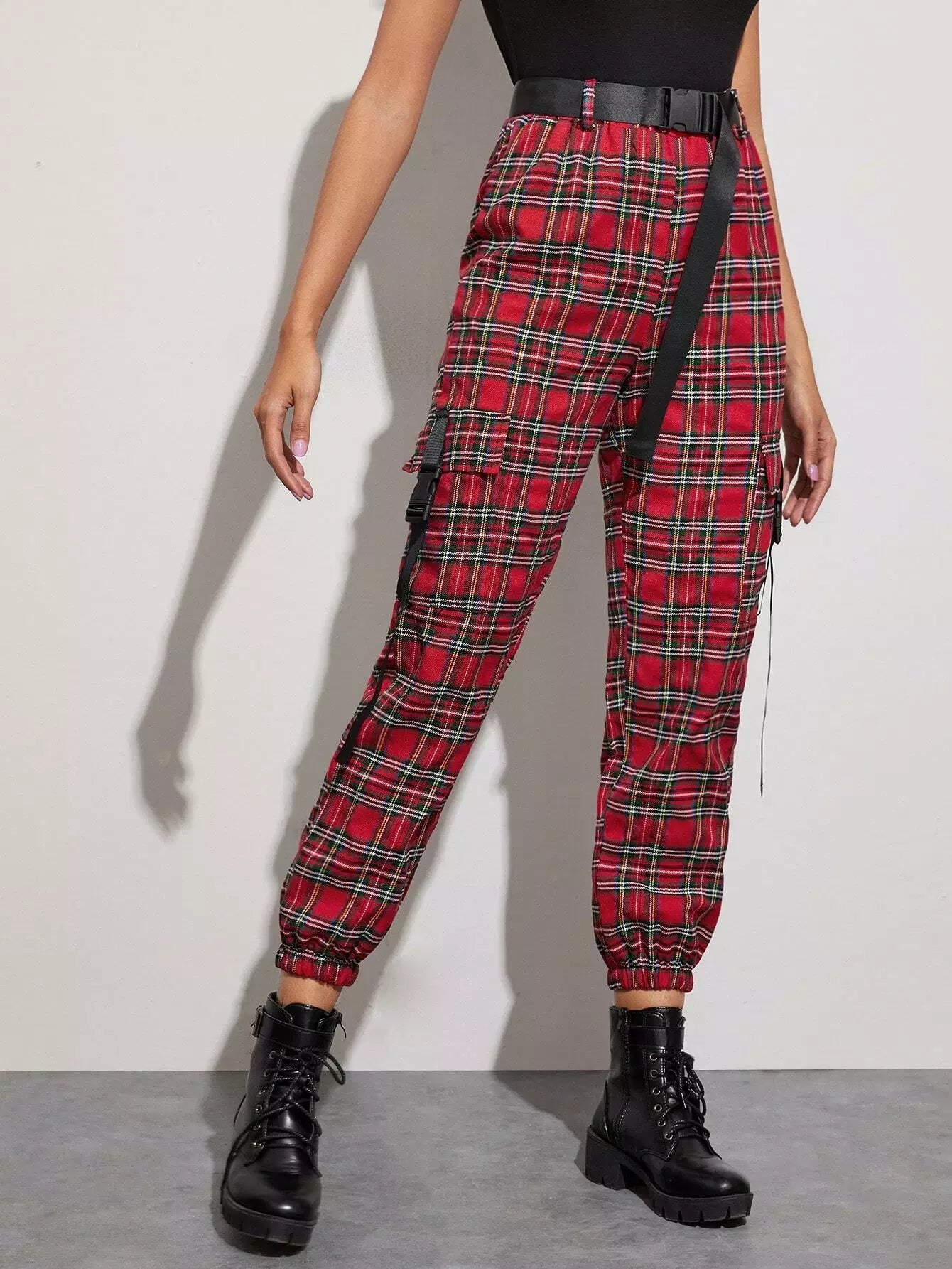 بنطال كارغو بإبزيم وطبعة الترتان بدون حزام