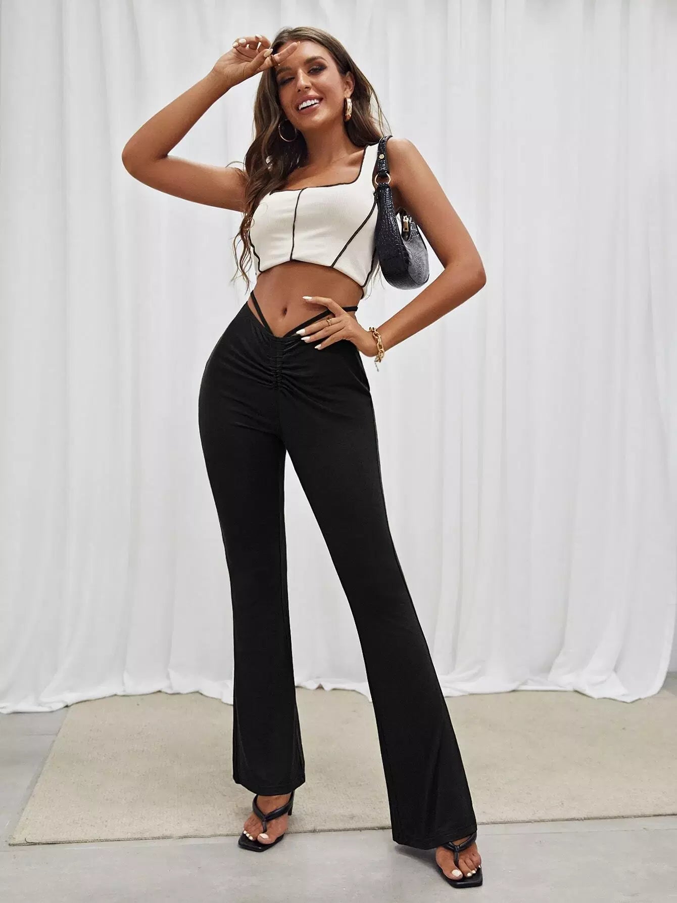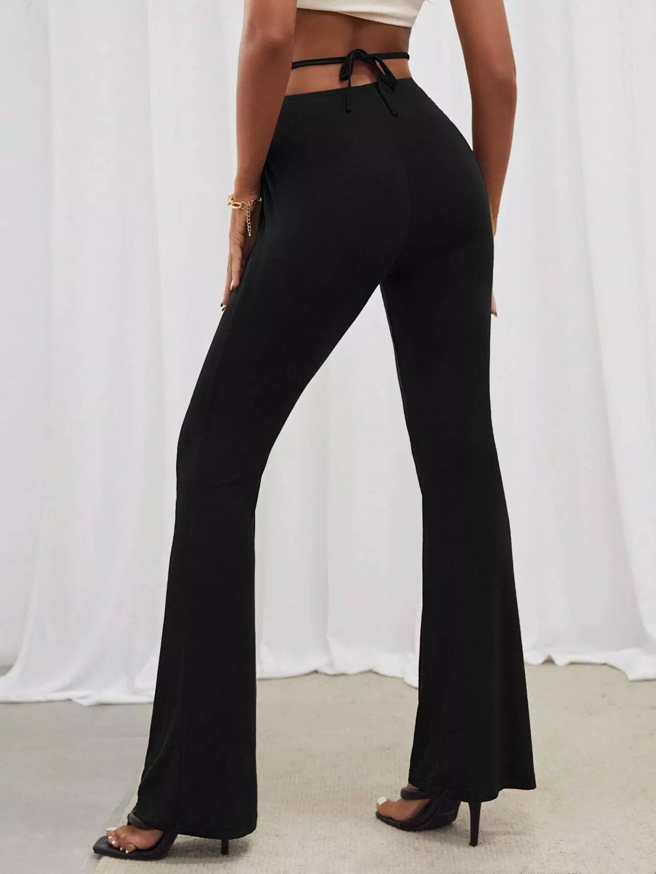 بنطلون بساق واسعة ذات تفاصيل مكشكشة بربطة عنق من الخلف
