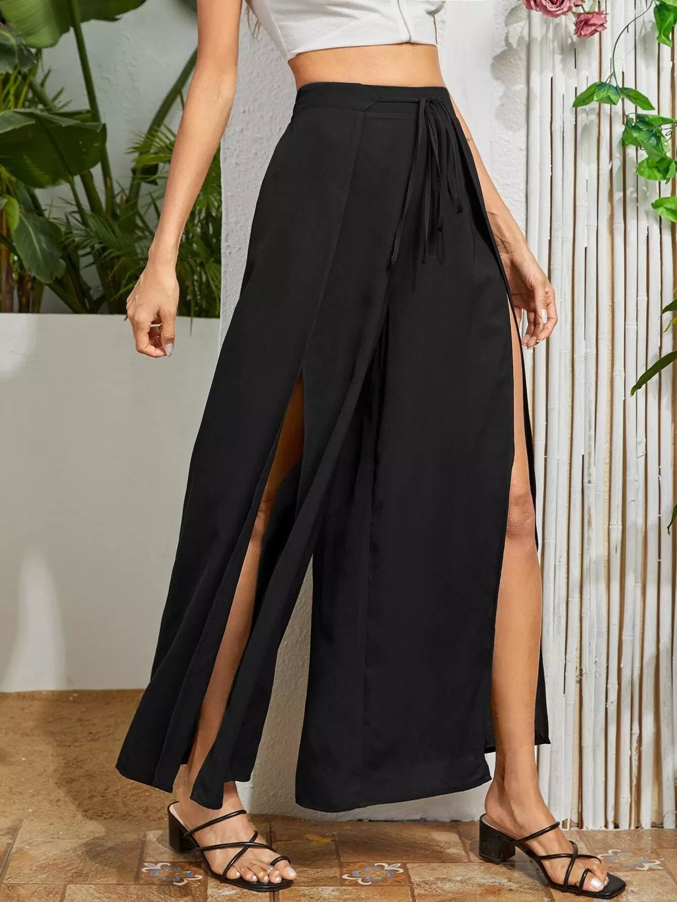 بنطلون بحاشية ملفوفة من الأمام بربطة عنق ملفوفة بساق عريضة