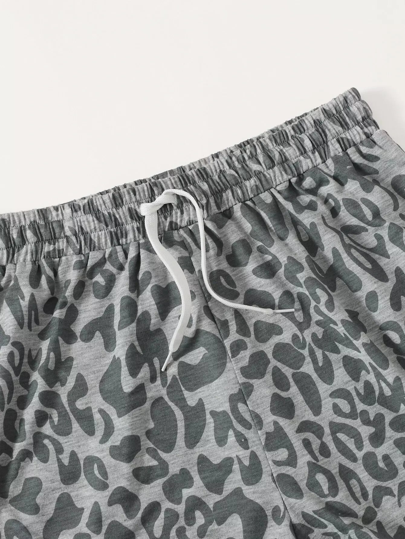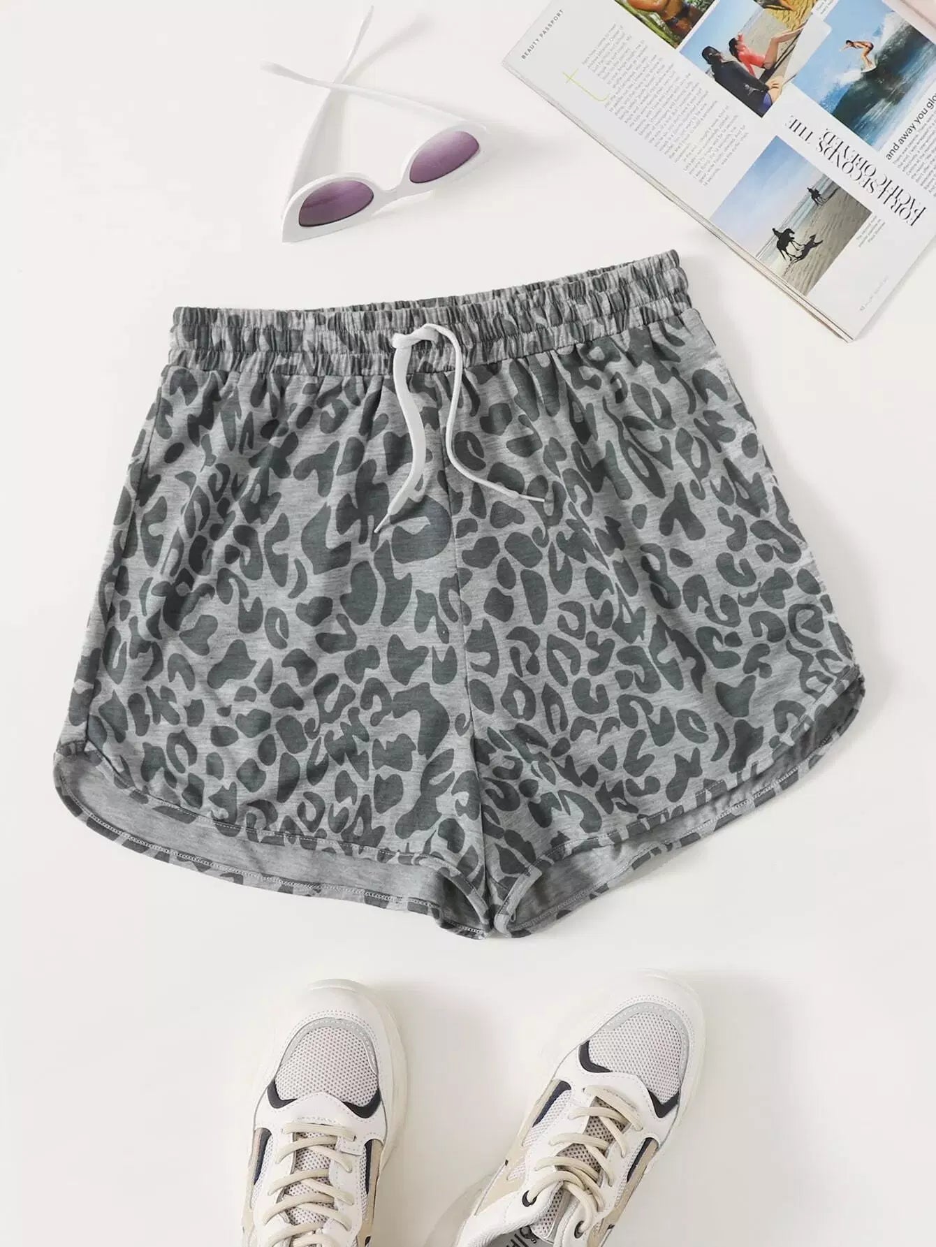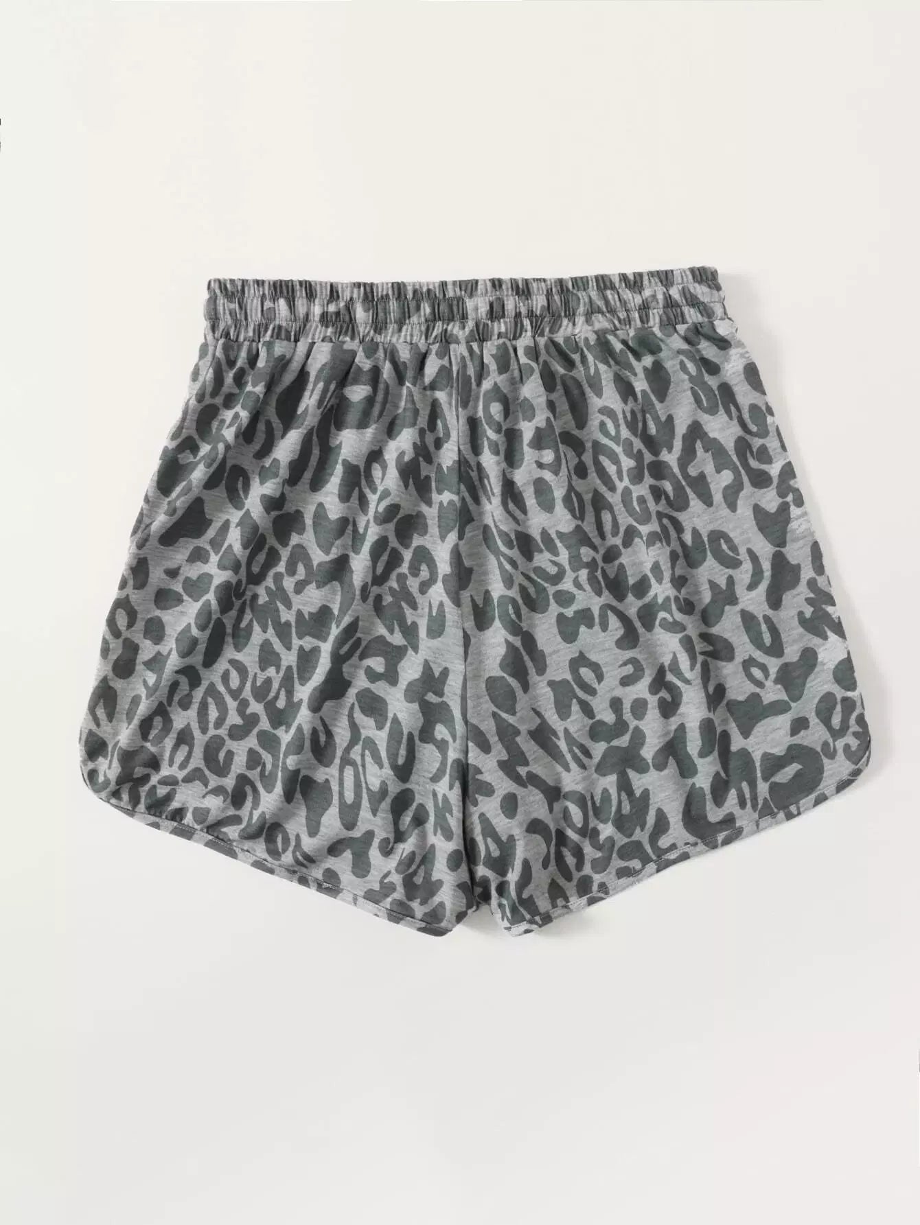 شورت رياضي بطبعة على كامل الخصر برباط مفتوح