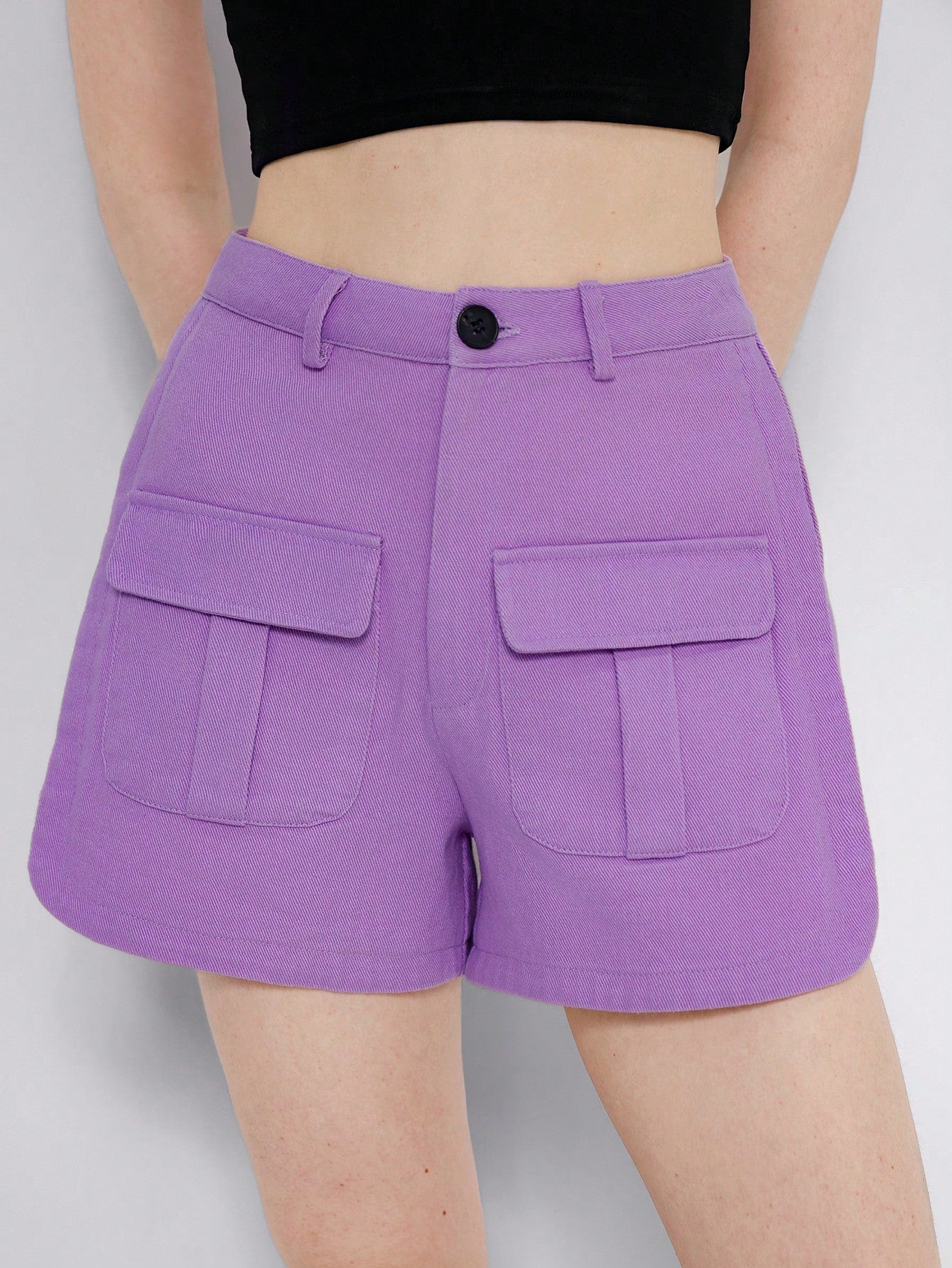 Aveloria Affinna Lavender Purple Denim Effect Washed Casual Y2K Street Style Young Design Front Pockets