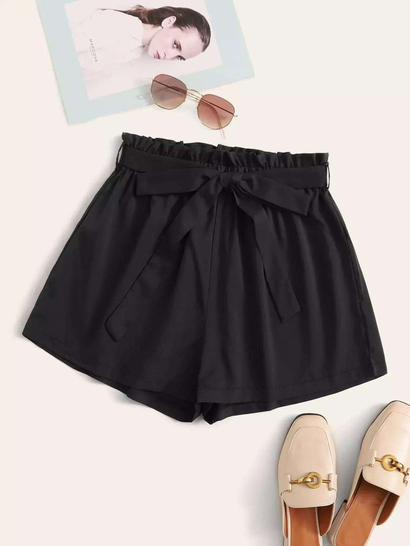 شورت بخصر عالي الارتفاع بدون حزام