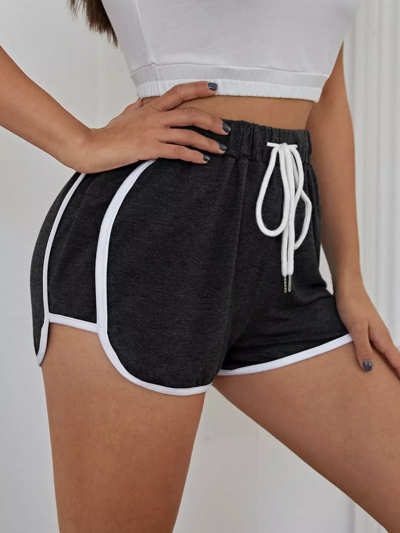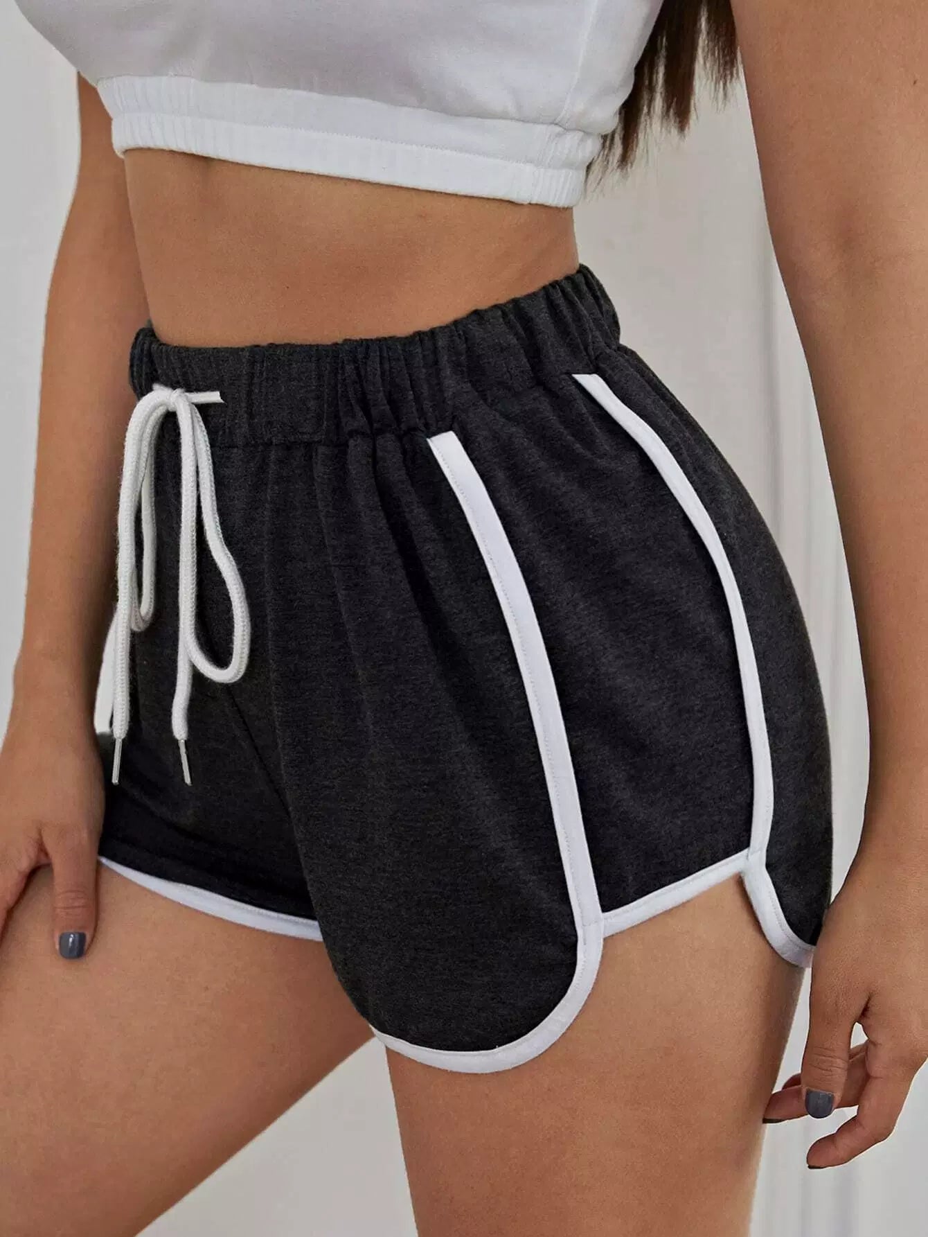 شورت رياضي بخصر مربوط برباط على الخصر بلون مغاير