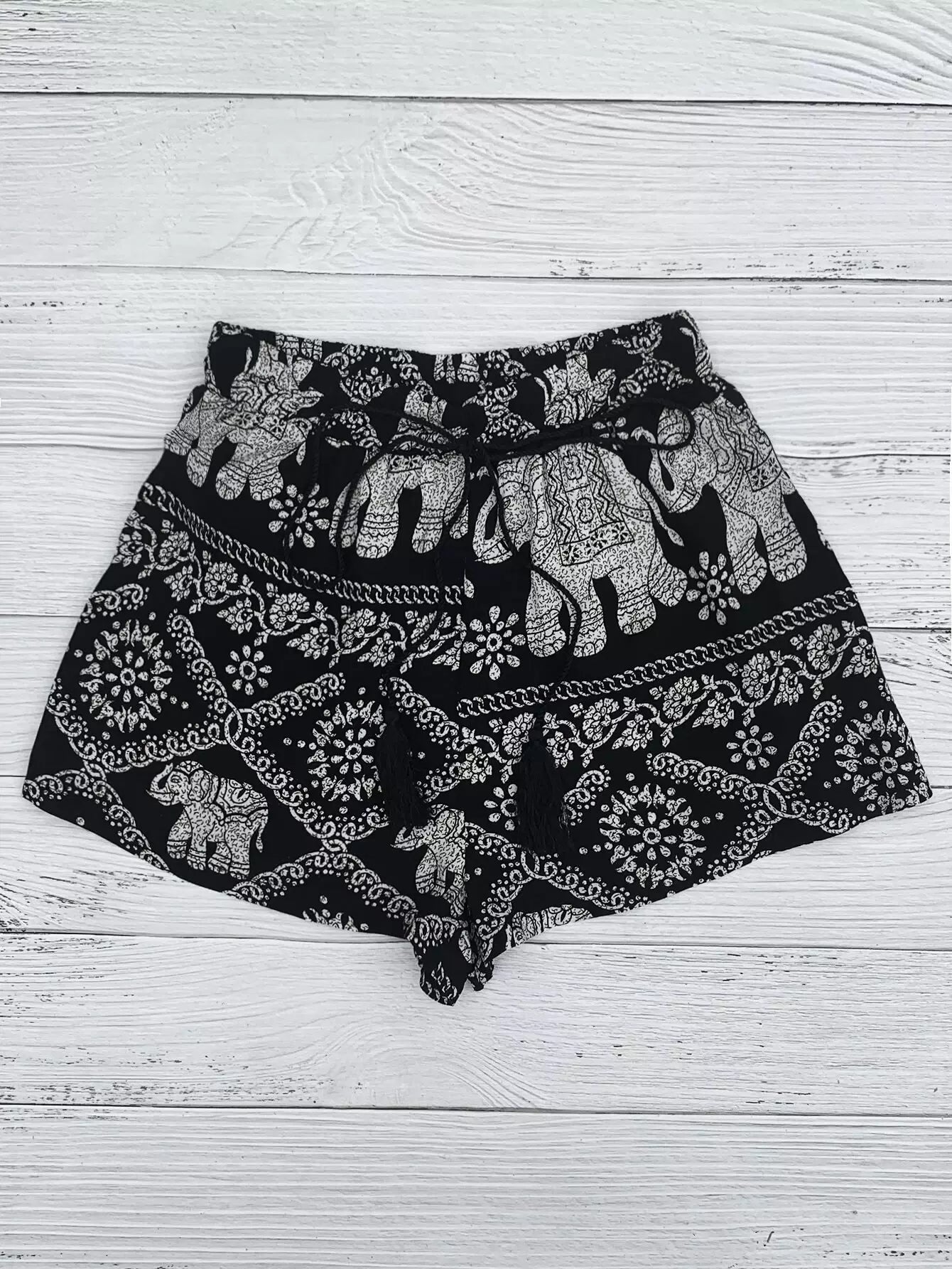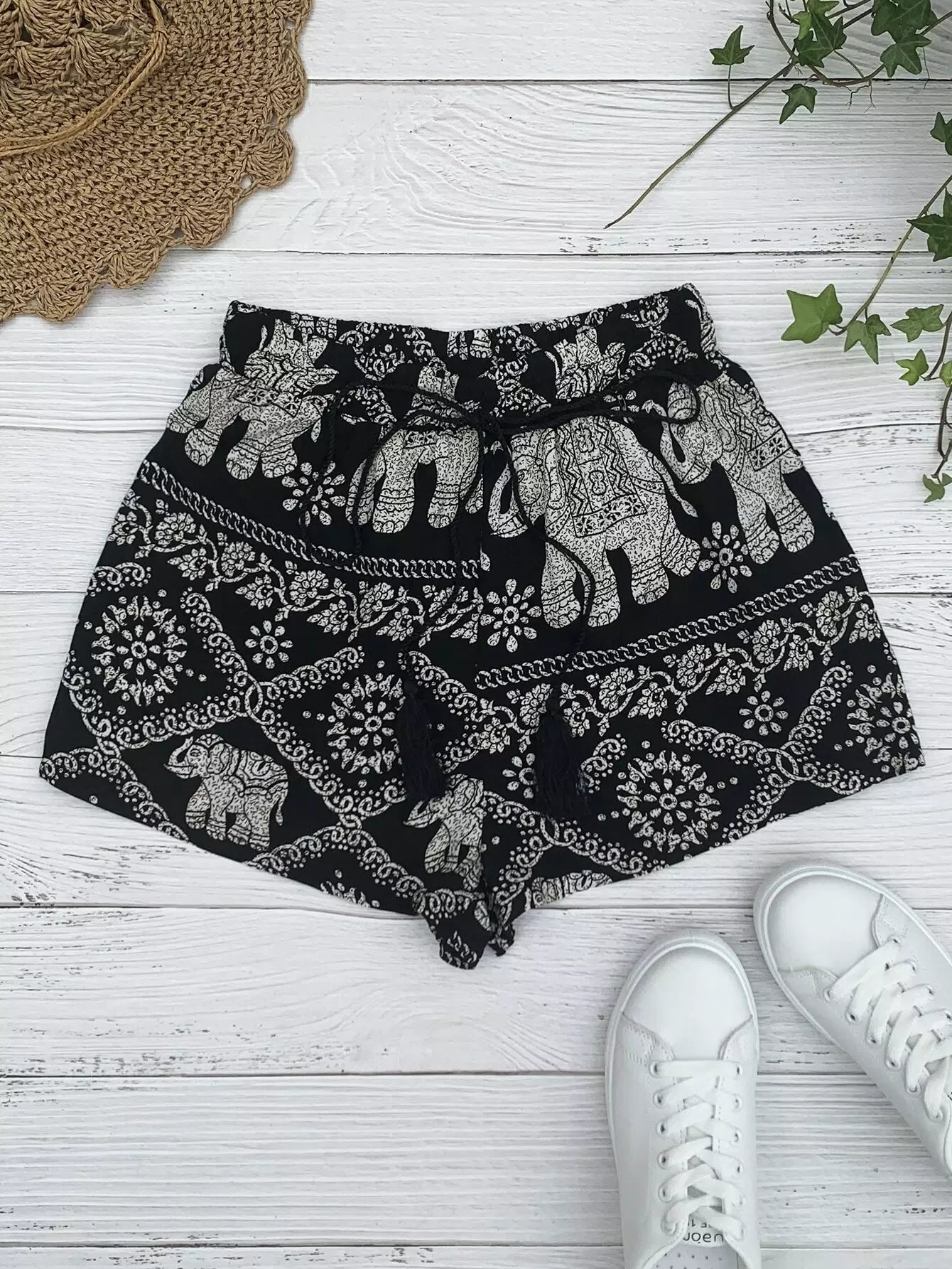 شورت بطبعة فيل مزين بعقدة على شكل عقدة على شكل عقدة