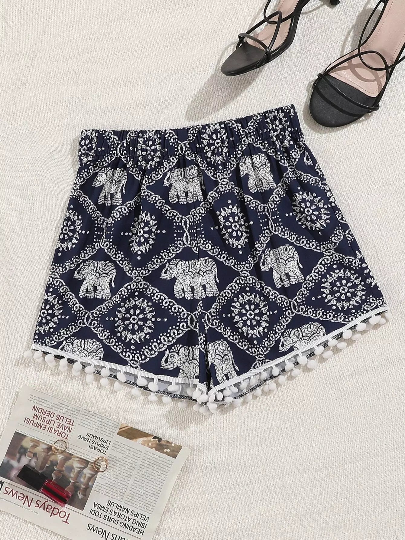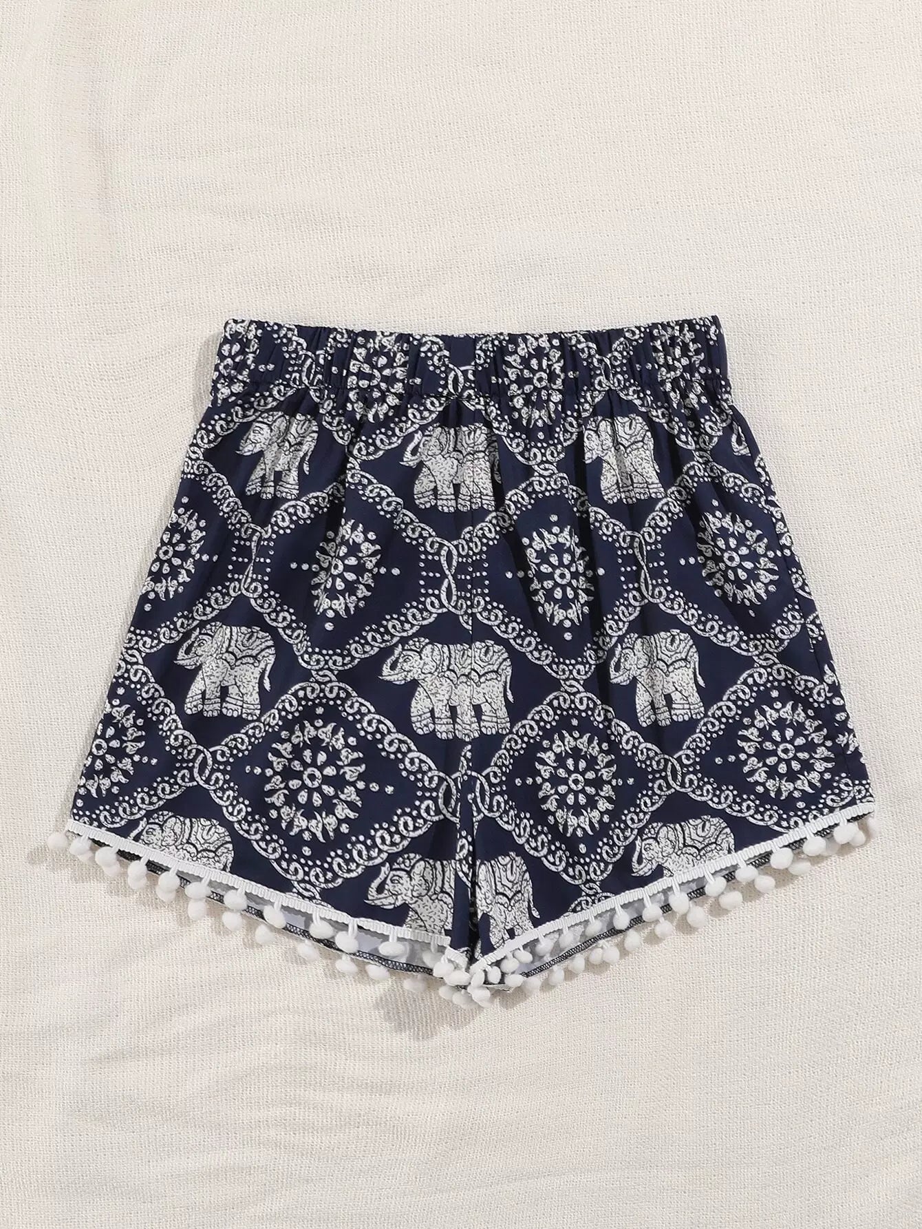 شورت بنقشة فيلة بطبعة فيلة مزين ببوم بوم بوم