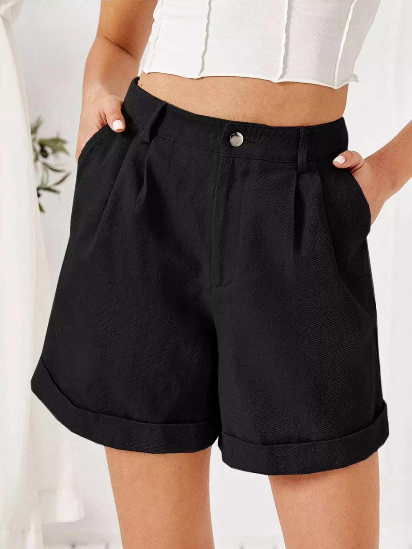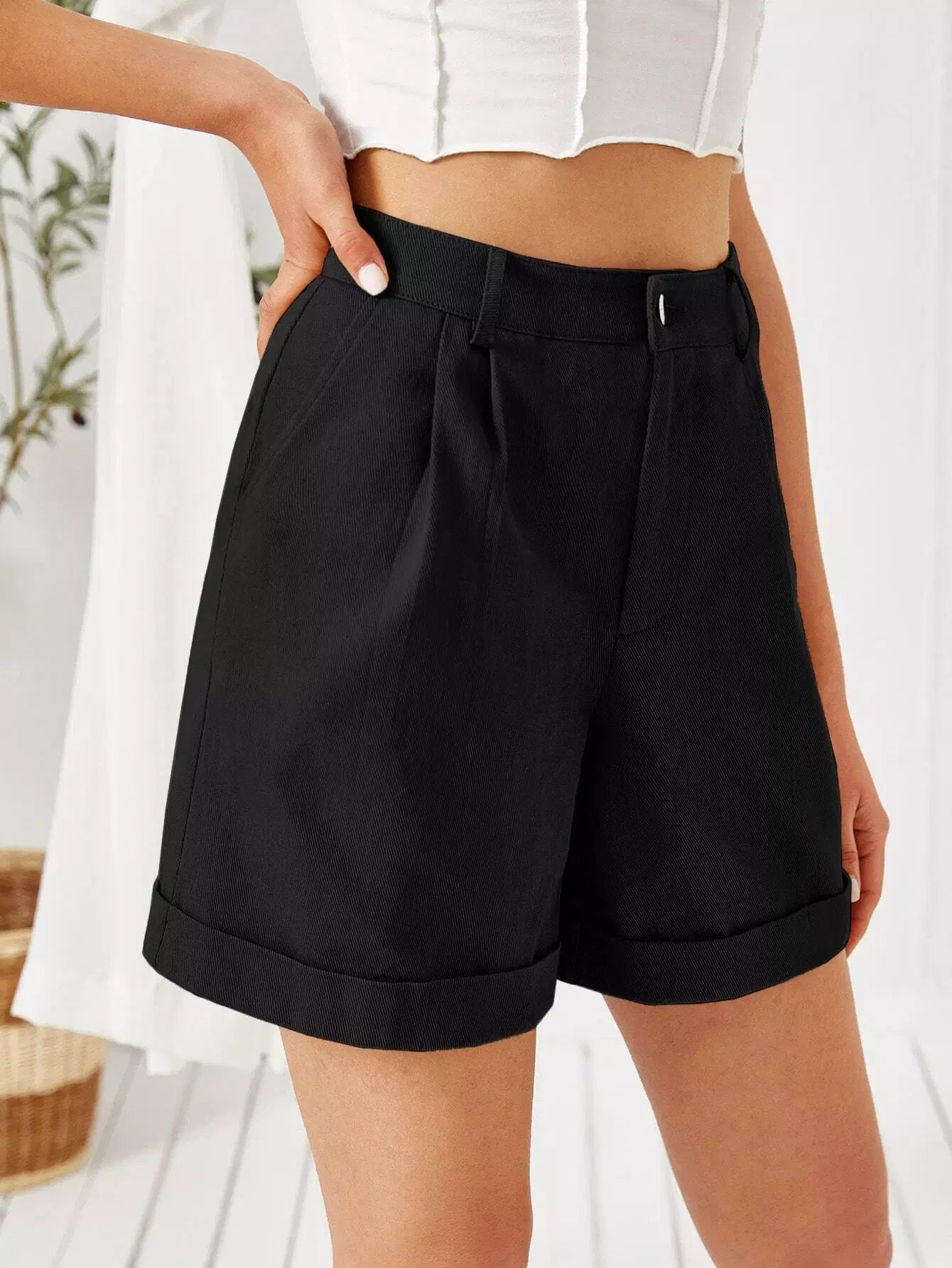 شورت قصير مطوي ذو ثنيات مطوي بأساور مكفوفة