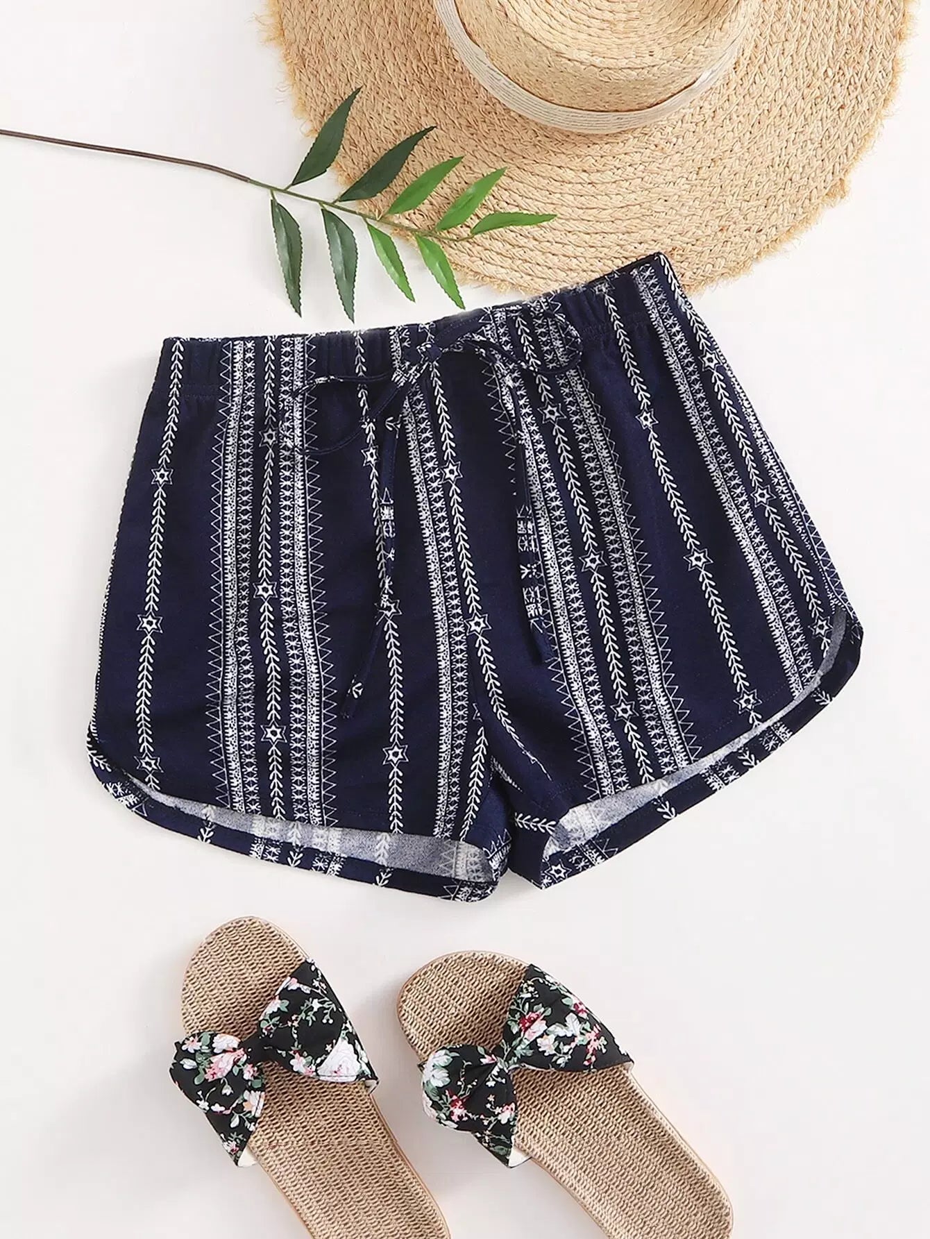 شورت رياضي بطبعة جيو بخصر معقود