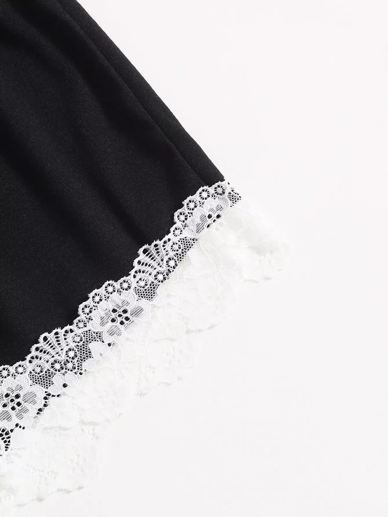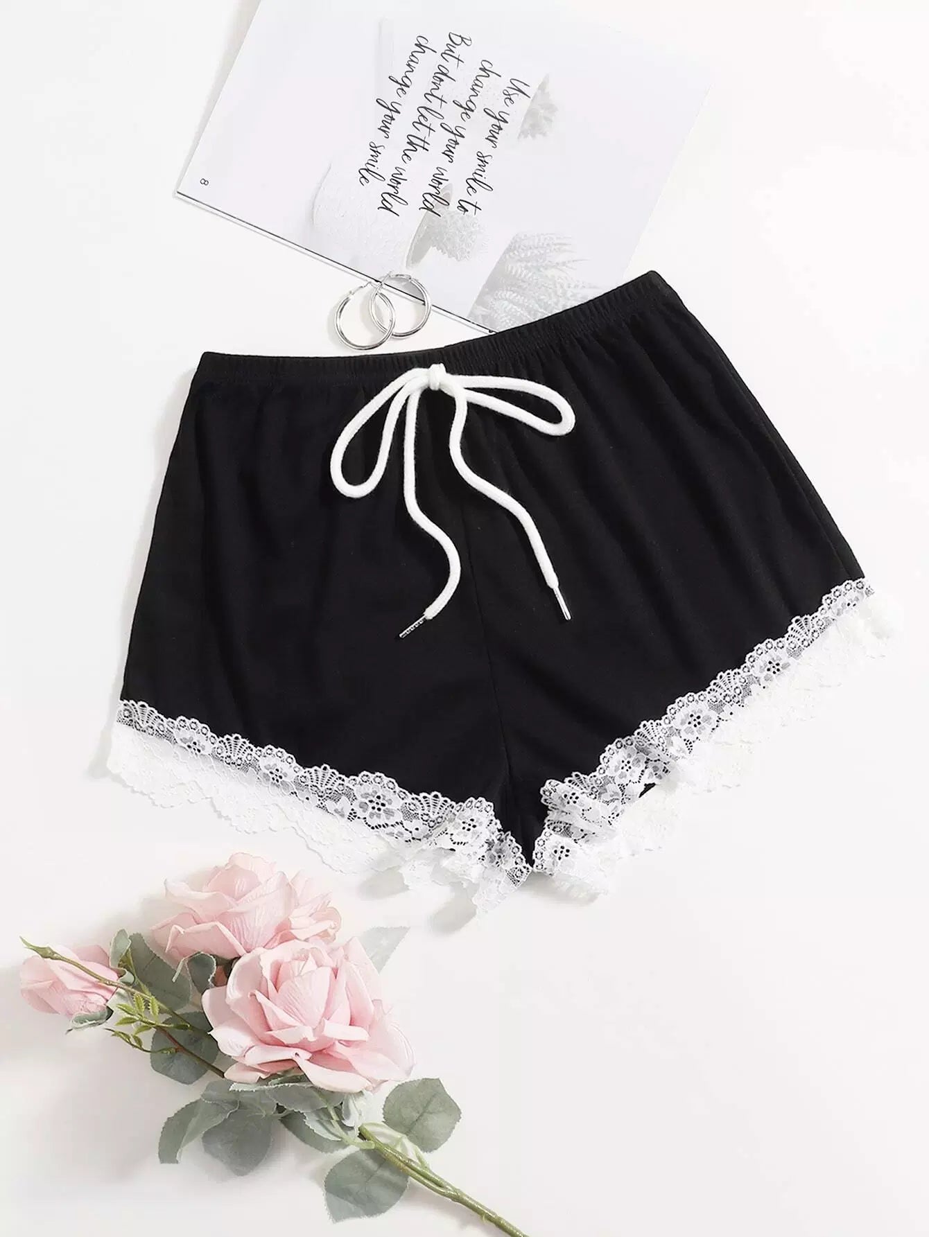 شورت بحاشية من الدانتيل بعقدة على الخصر