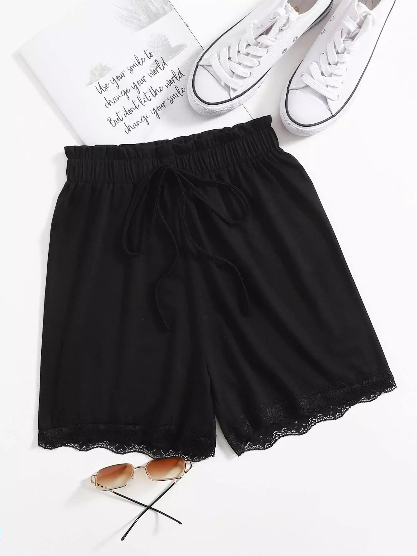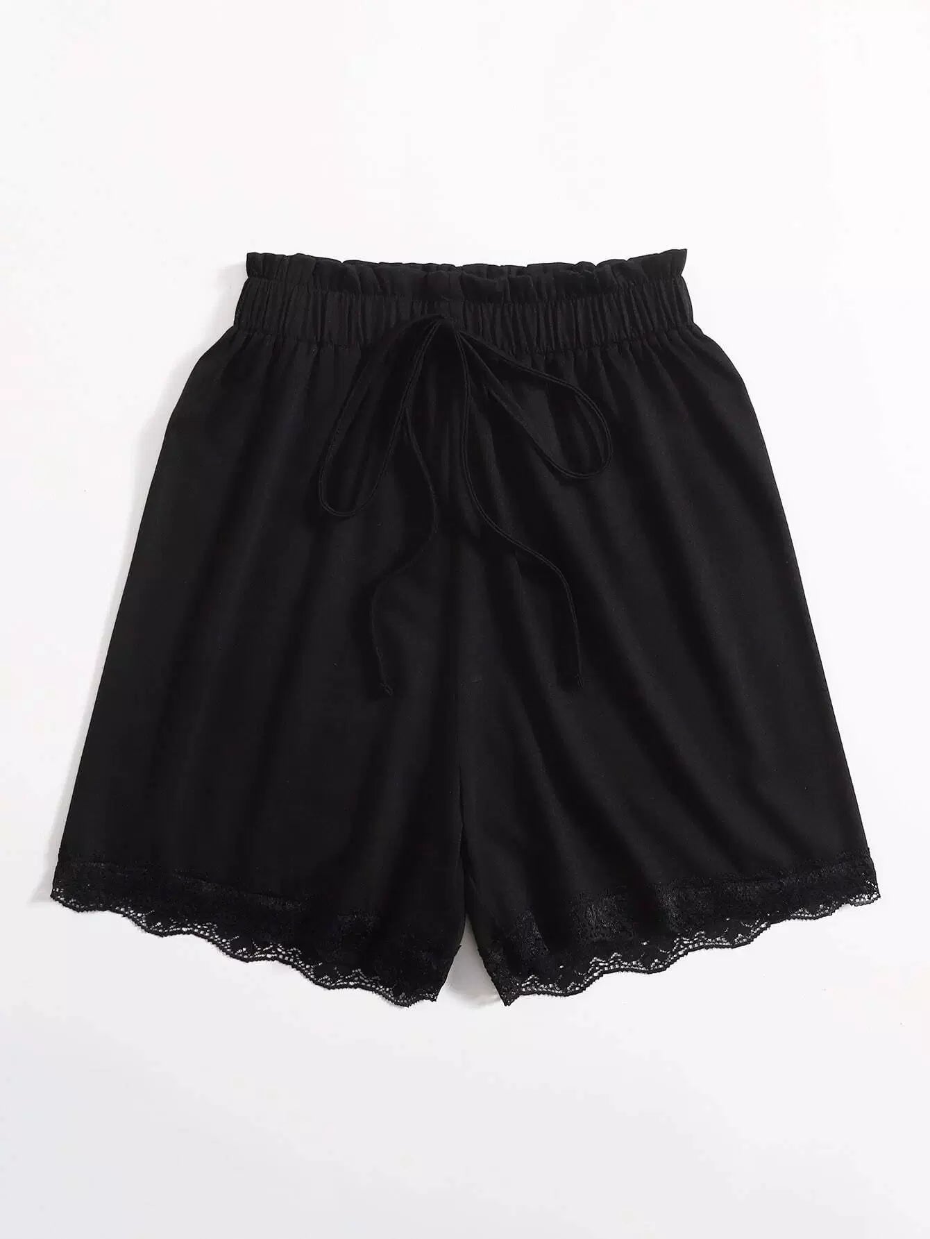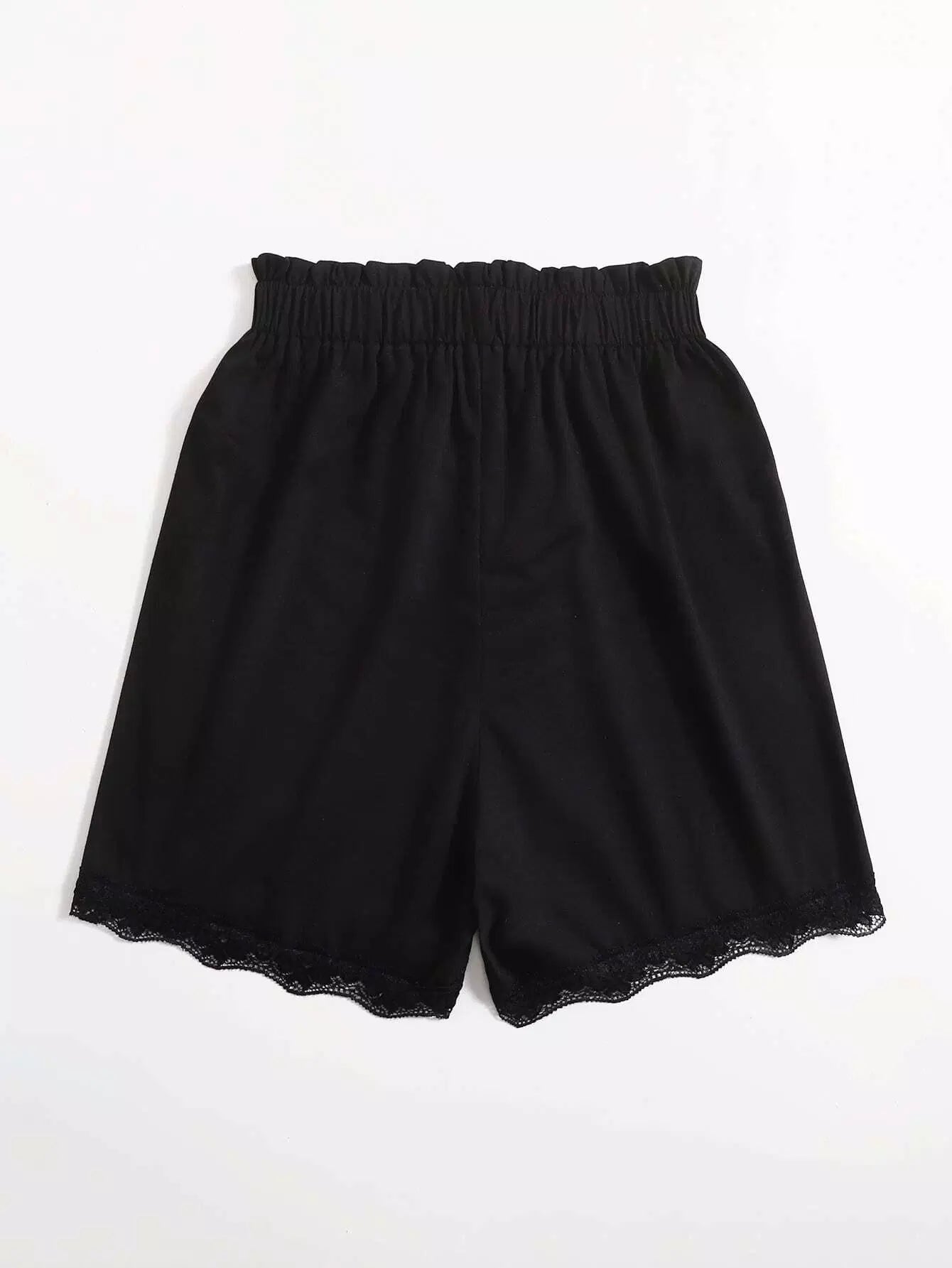 شورت قصير من الورق مع حواف من الدانتيل