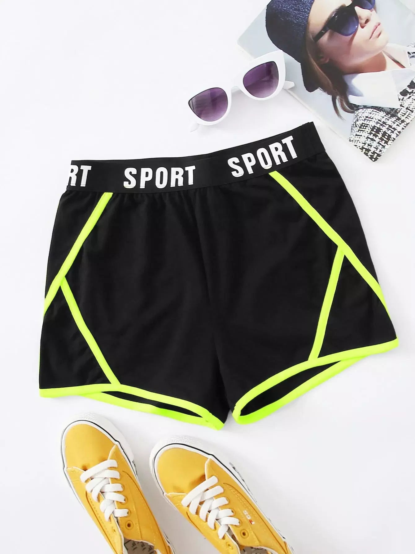 شورت رياضي ذو خصر بحروف متباينة التفاصيل