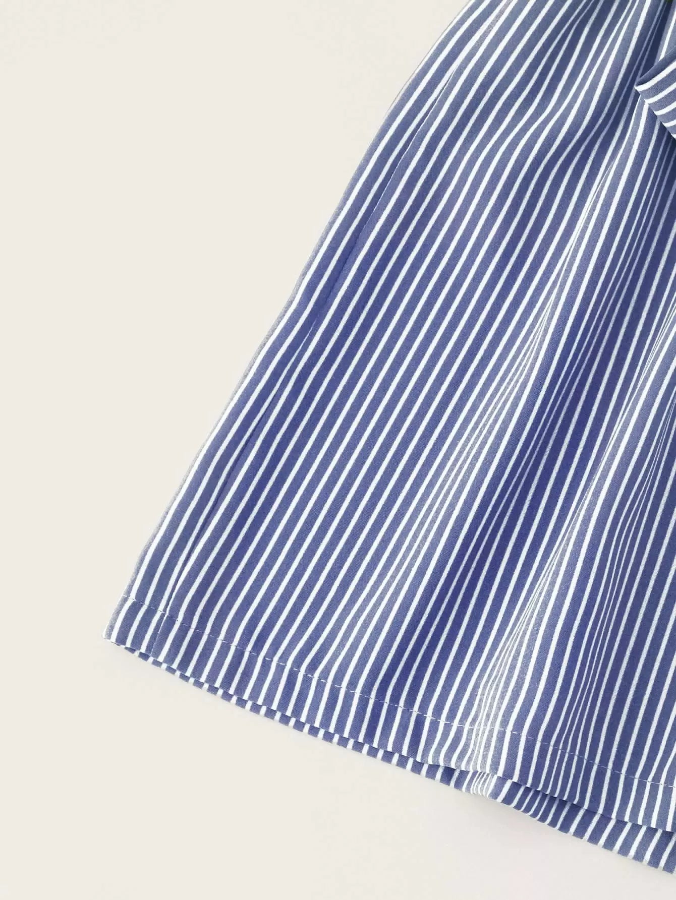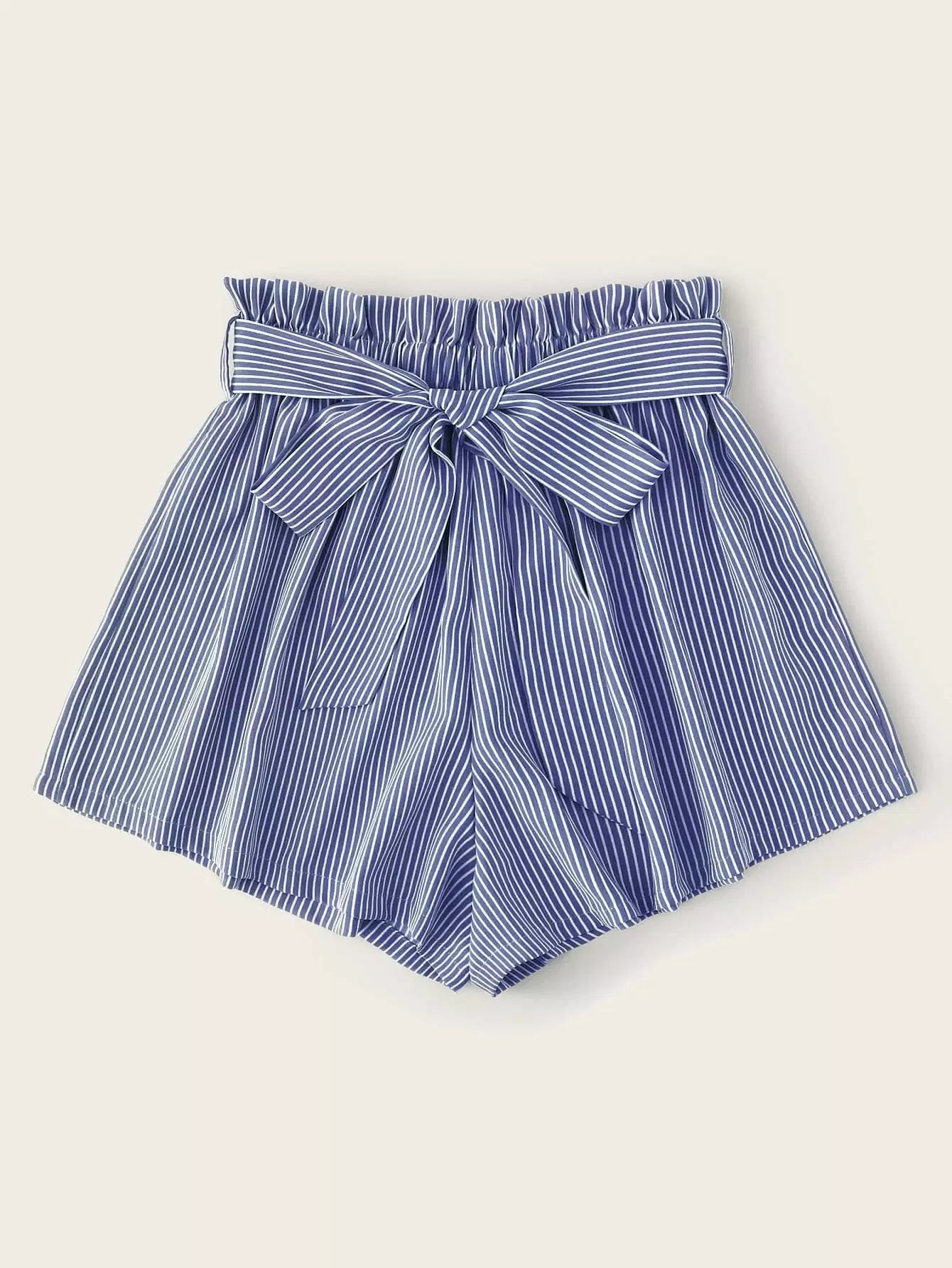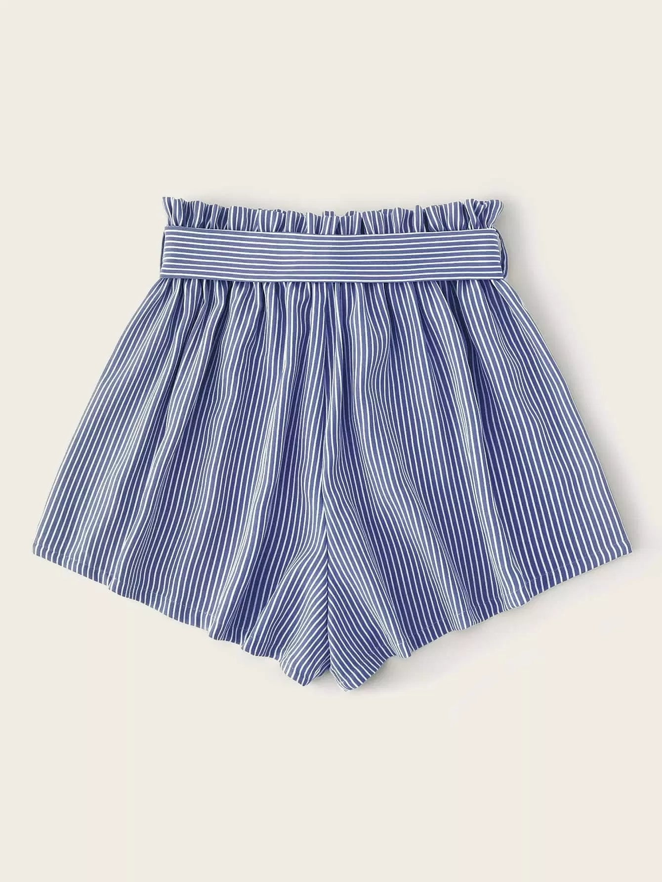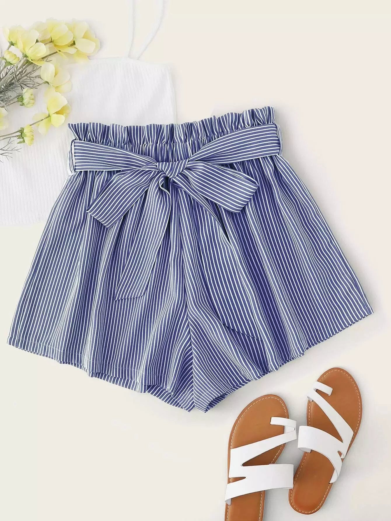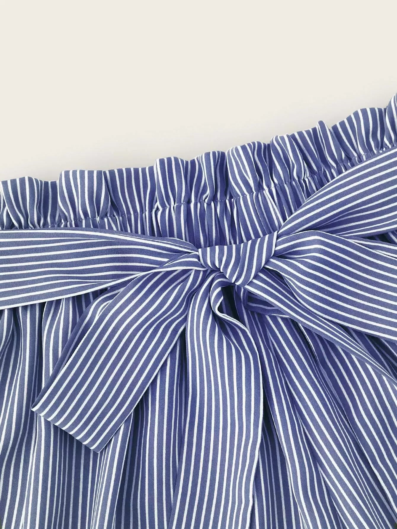 Paperbag الخصر السراويل مخططة الذاتي دون حزام