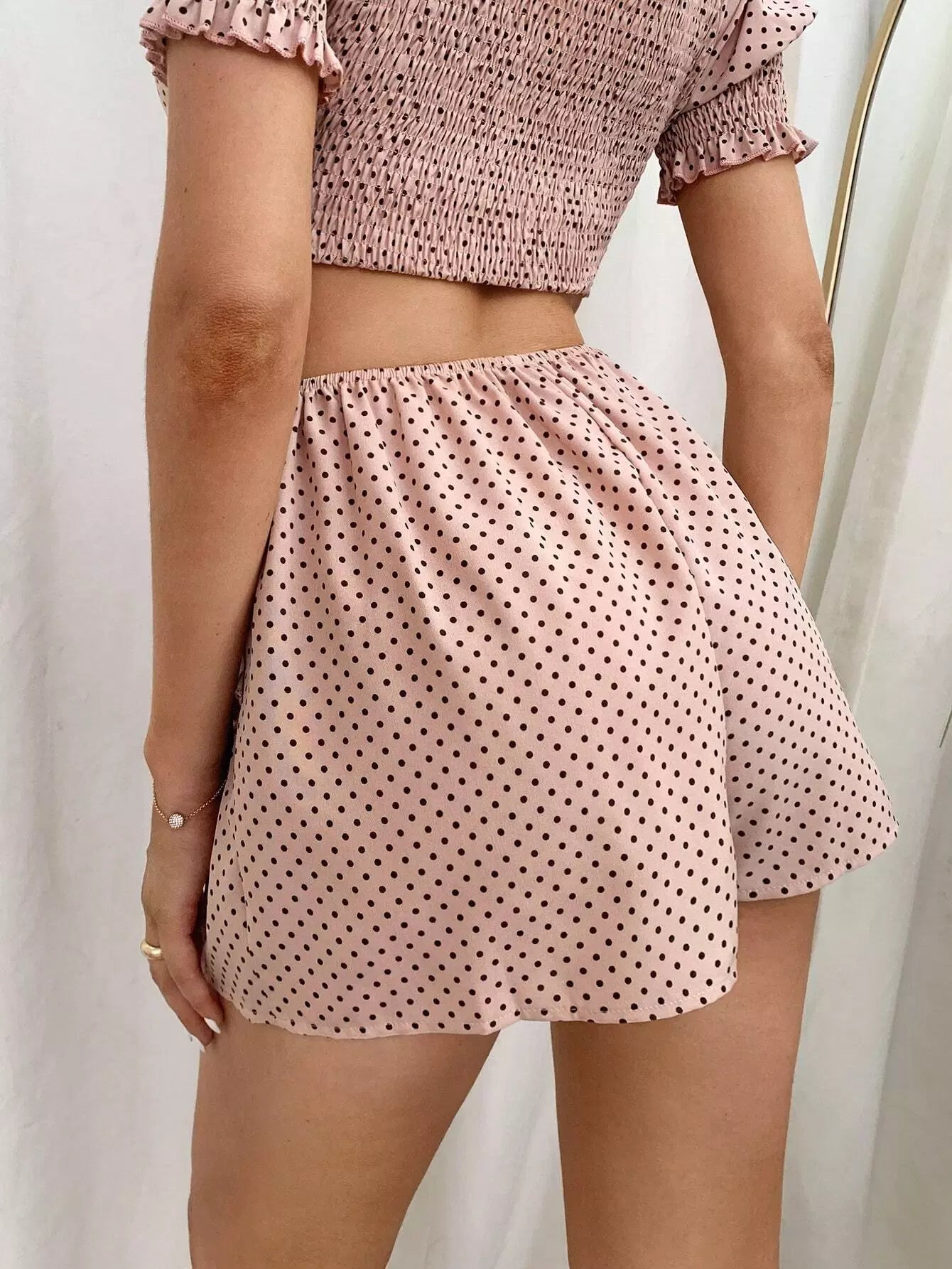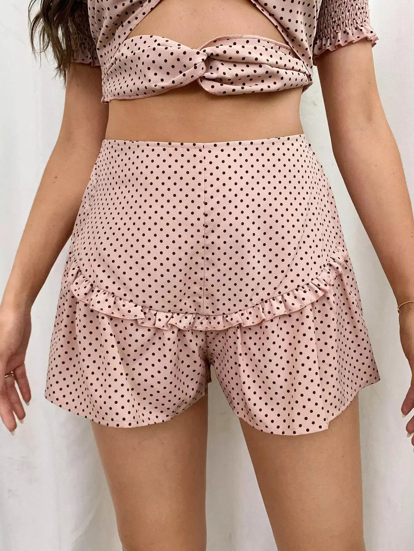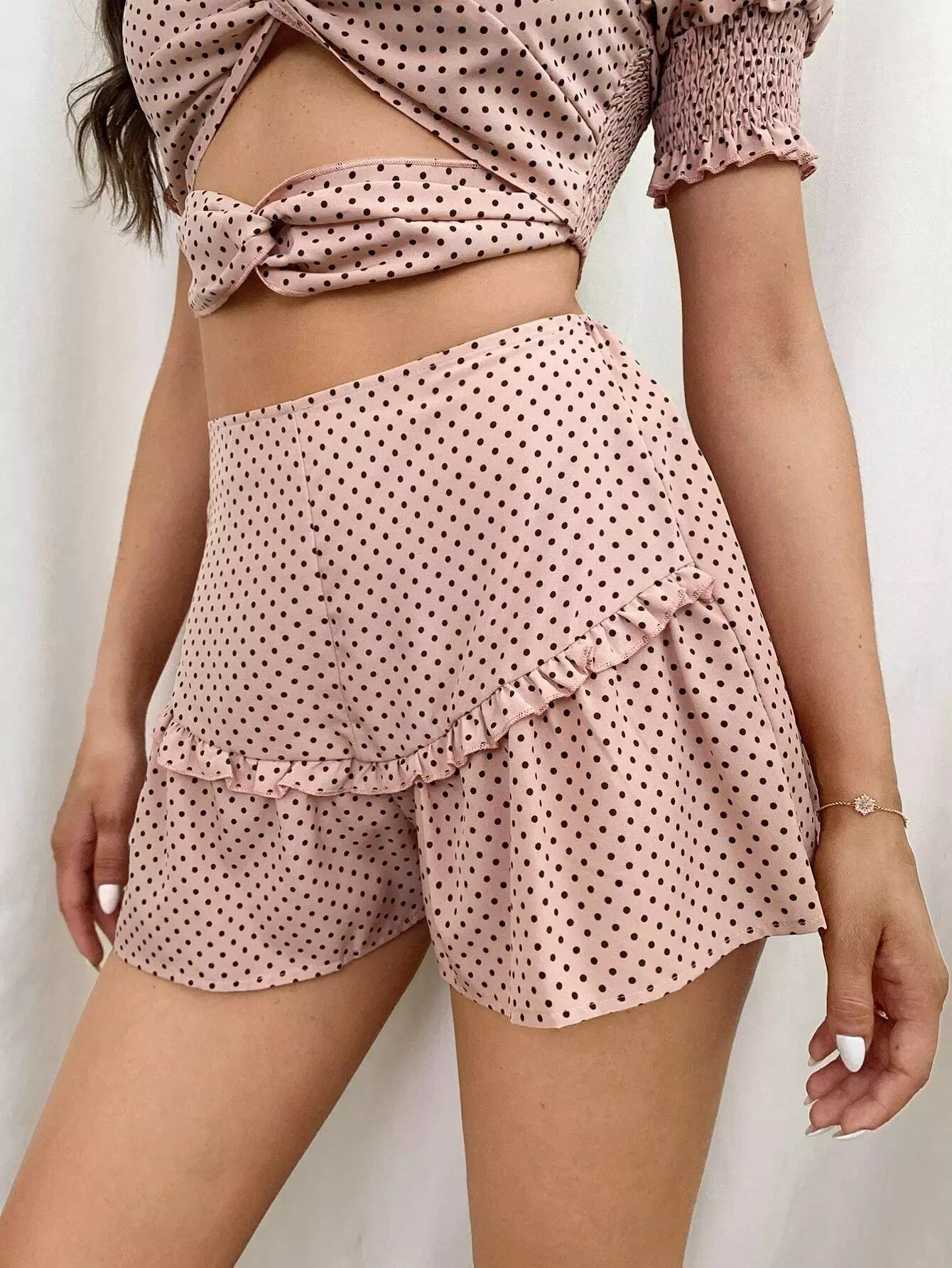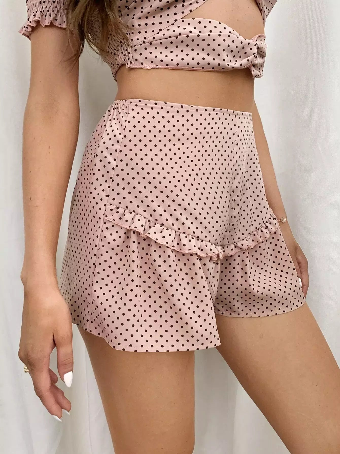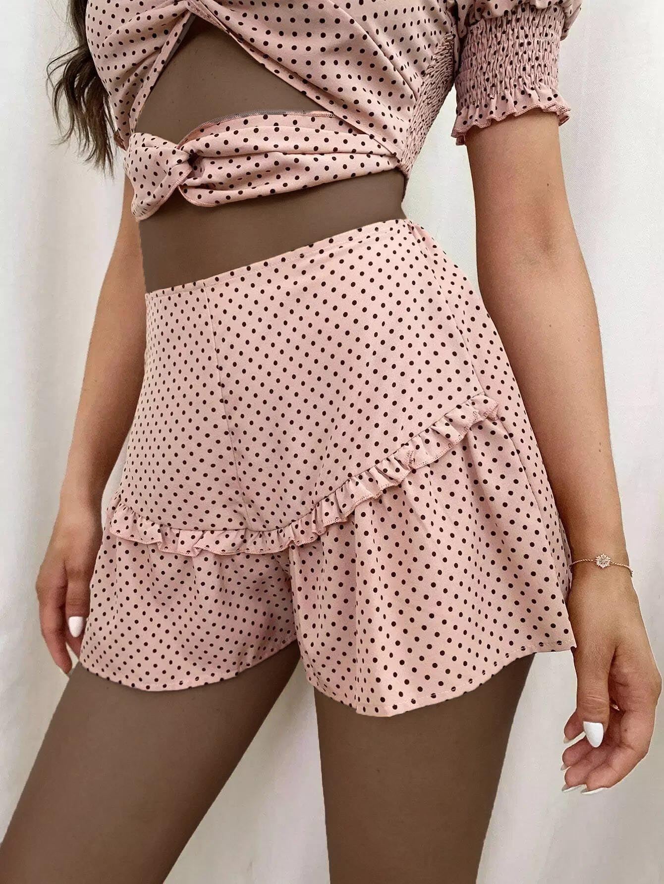 للنساء - شورت بأرجل واسعة مزين بكشاكش منقط