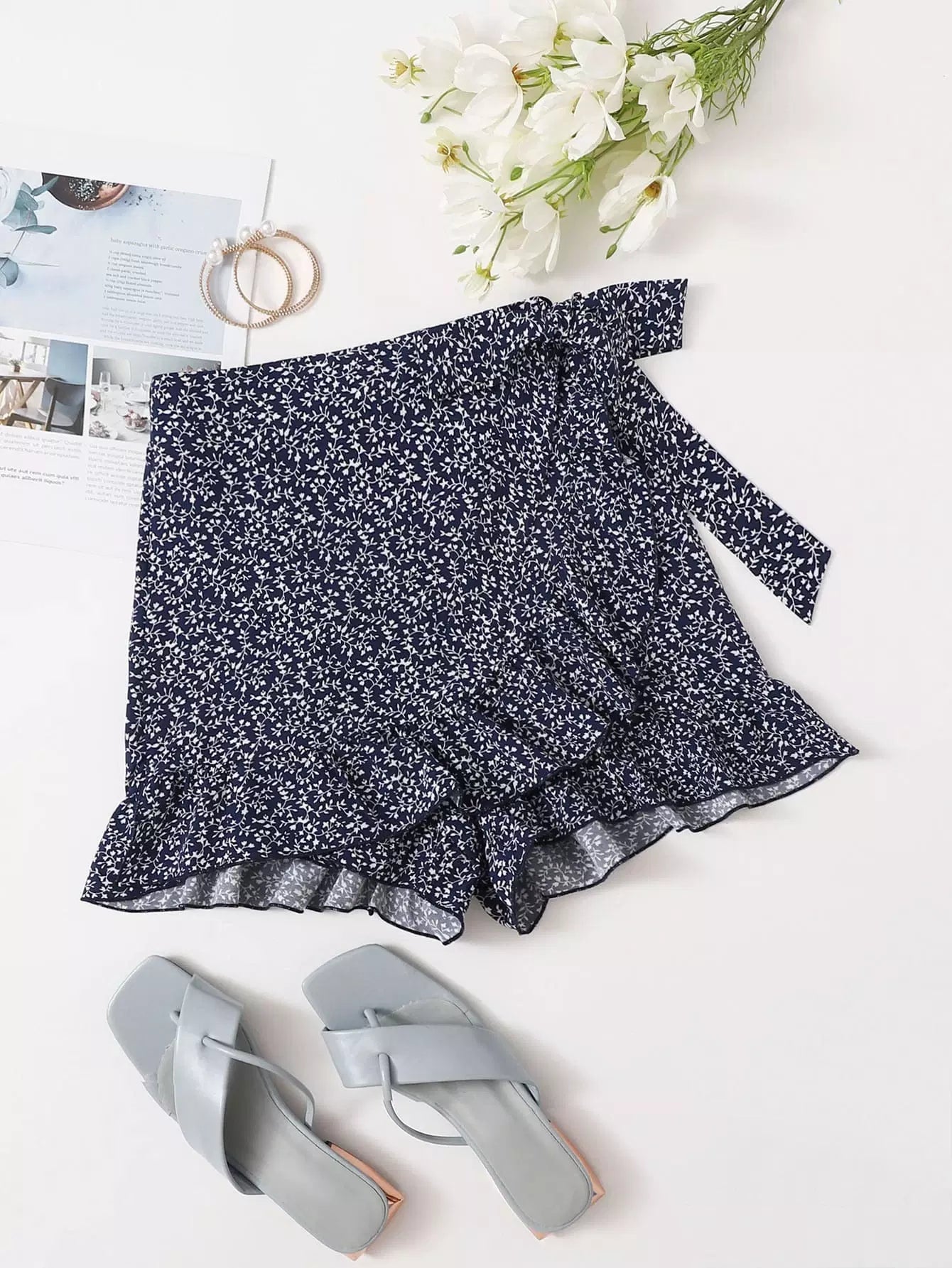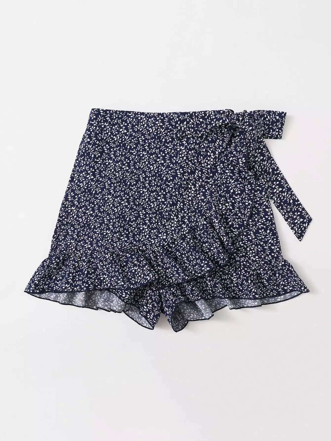 للنساء - تنورة جانبية ملتفة ذات حواف مكشكشة
