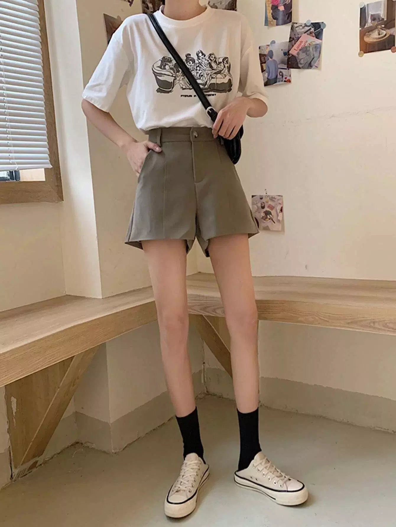 شورت سادة عريض الساقين سادة